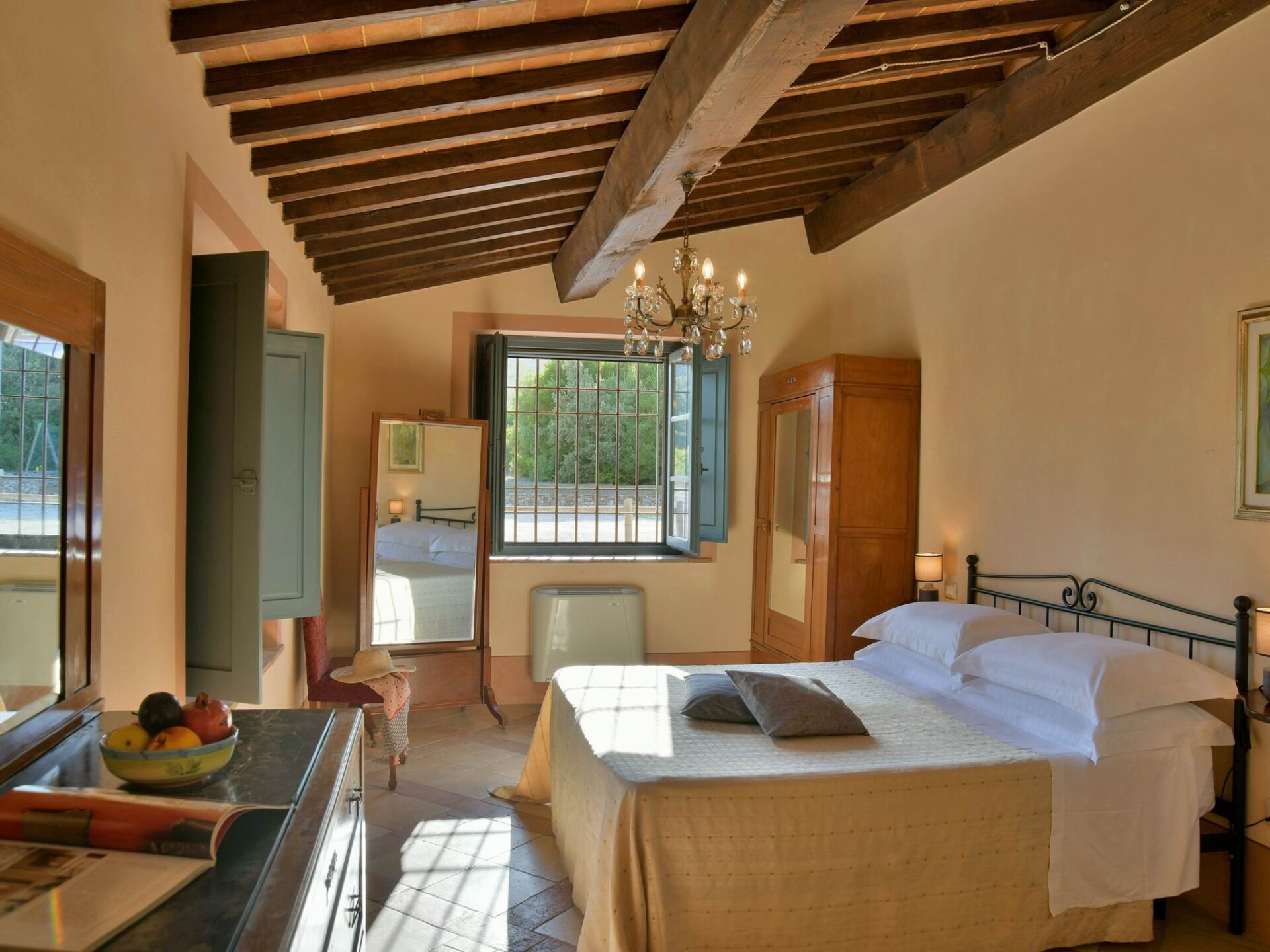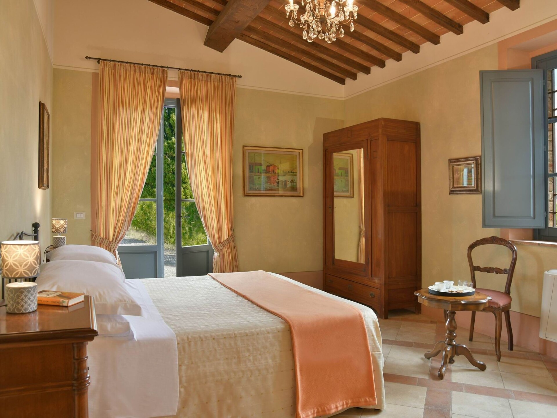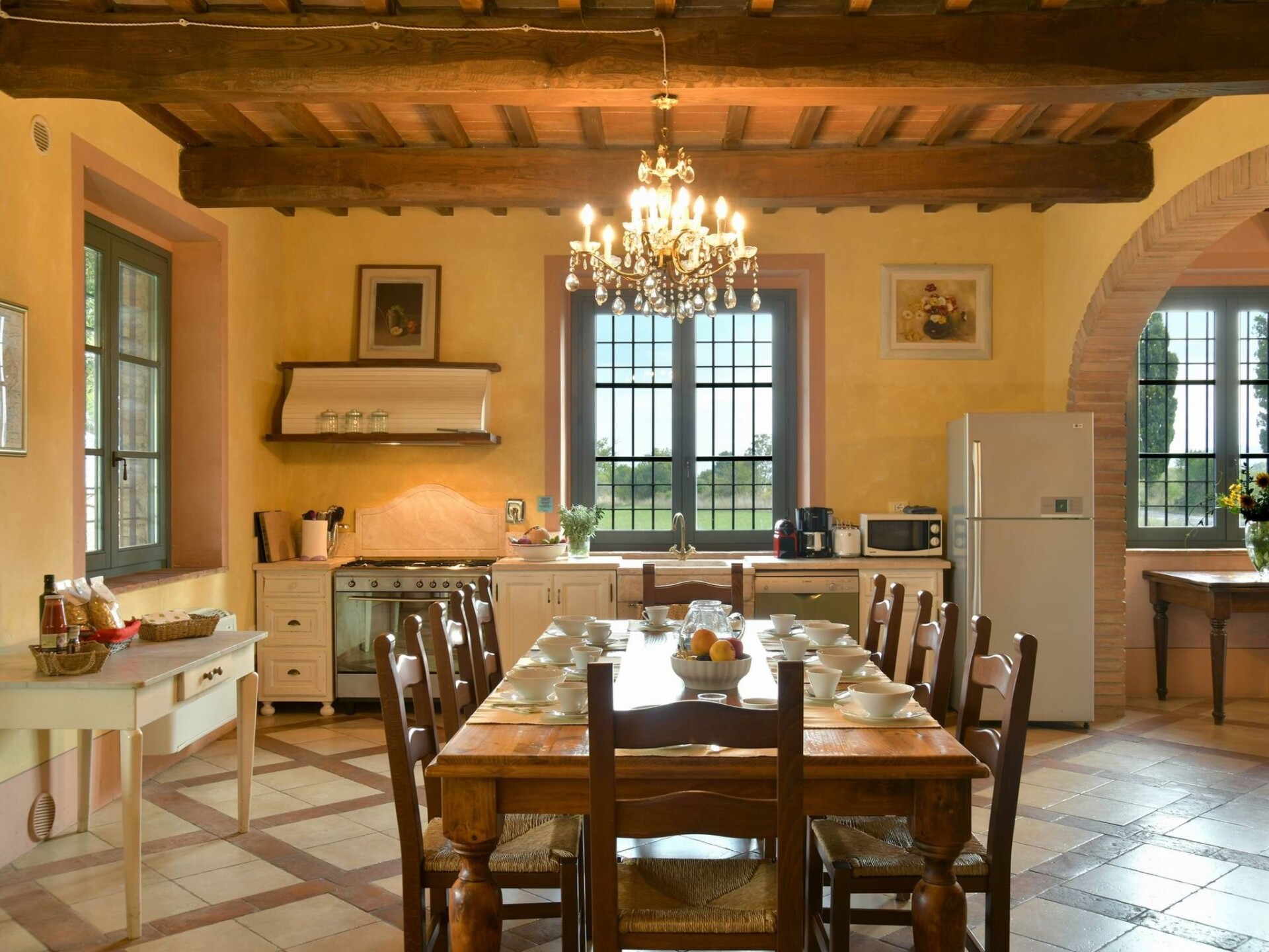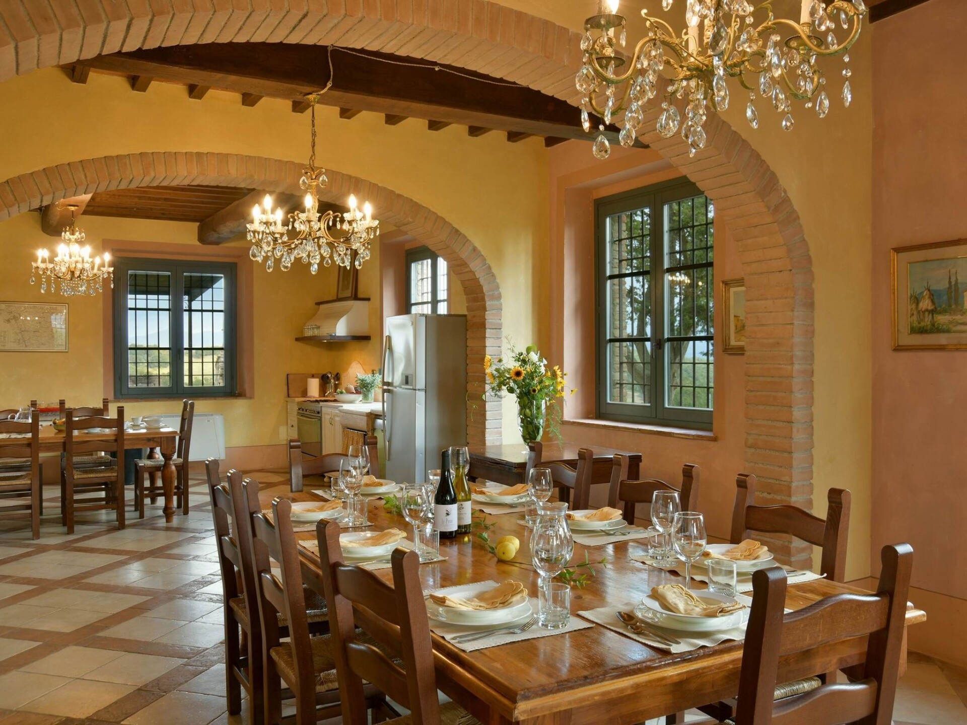 Maximaal 2 huisdieren/honden toegestaan. This Tuscan farmhouse with swimming pool, air conditioning and Wi-Fi has been carefully restored, paying particular attention to preserving its traditional features, and can accommodate up to 22 people.The villa, located in an area of absolute tranquillity and silence, ideal for a relaxing holiday, has a large garden with a covered porch and barbecue, ideal for al fresco dining, as well as a children's playground and table tennis table.The jewel of the garden is the infinity pool (fenced, 12x6 m, up to 150 cm deep, heated on request, open from May to September).Situated in a very quiet area, the 500 m² villa is divided into two independent flats, one for 8 guests and the other for 14. There are 10 bedrooms with private bathrooms and a tower with two single beds.Both flats extend over two floors.Flat for 8 guests: ground floor with living/dining room with fireplace, fully equipped open kitchen (gas cooker, oven, refrigerator with freezer, microwave, American coffee maker, mocha coffee maker, toaster, blender, juicer, kettle, dishwasher) and 1 twin bedroom, 1 double bedroom, each with private bathroom with shower. First floor: 2 double rooms with canopy, each with bathroom with shower.Flat for 14 persons: Ground floor with large living room, fully equipped open kitchen (gas cooker, oven, fridge with freezer, microwave, American coffee maker, moka, toaster, blender, juicer, kettle, dishwasher), fireplace, dining area and 1 twin bedroom, 1 double bedroom, each with private bathroom with shower. On the first floor are 4 double bedrooms with canopies, each with private bathroom with shower. Access to the tower, where there are two single beds and a bathroom with shower.Amenities: Wi-Fi, satellite TV, washing machine, hairdryer, mosquito nets, heating, air conditioning in all rooms, safe, 1 cot and 1 high chair, courtesy set in each bathroom, fire extinguisher, first aid kit for emergencies, large private car park, pets allowed.It is located in the heart of the Etruscan Coast, between Volterra (30 km) and beautiful beaches (Marina di Bibbona), 20 km away. At the same distance you can also reach Bolgheri, famous for its prestigious wines such as Sassicaia, Ornellaia, Masseto, etc.Thanks to its position, the villa enjoys a magnificent view of the surrounding countryside. Its strategic position also makes it easy to reach the nearby wellness and spa centres of the Montescudaio area, as well as to make excursions to beautiful art cities such as Pisa, Lucca, Siena, Florence or the splendid Etruscan ruins of places like Populonia.Distances: nearest shops in Casale Marittimo or Guardistallo 10 km away. Nearest restaurant and food shop 7 km. Sea 20 km; Volterra 30 km; San Gimignano 60 km; Pisa airport 73 km; Siena 85 km; Lucca 96 km; Florence 120 km. IT049001B49575MM9A