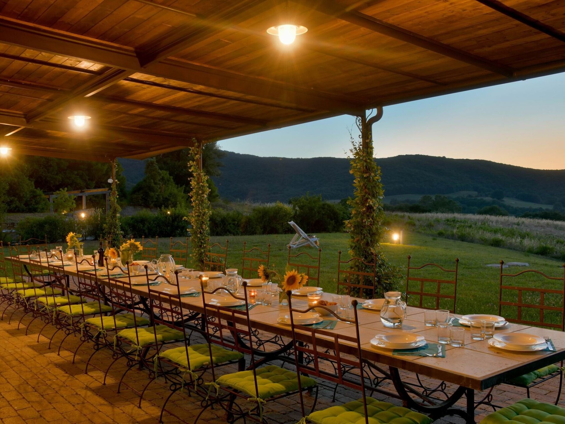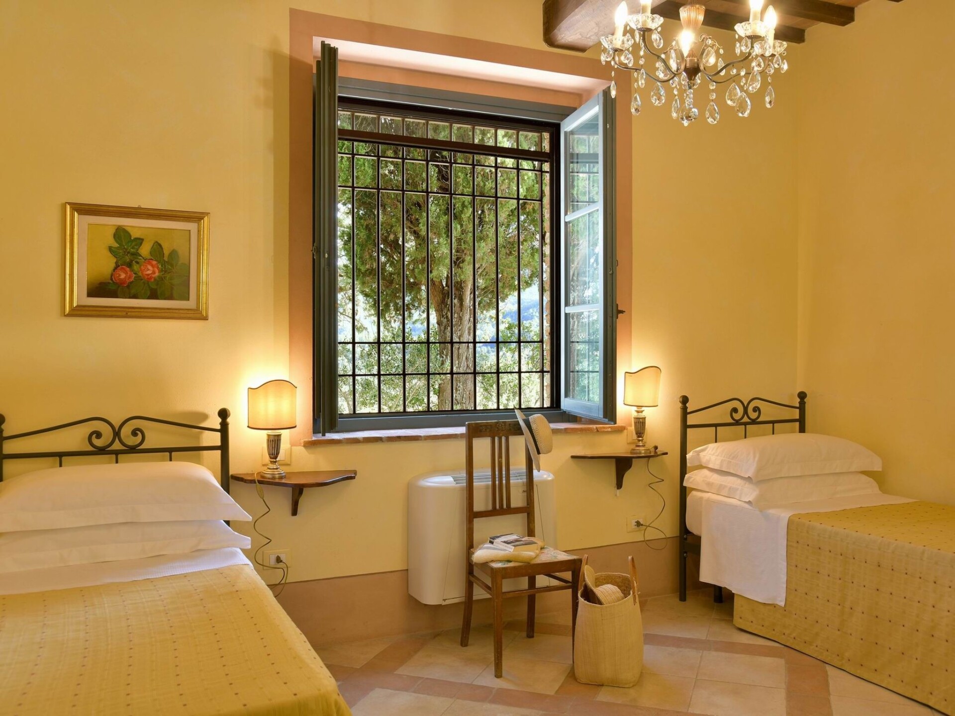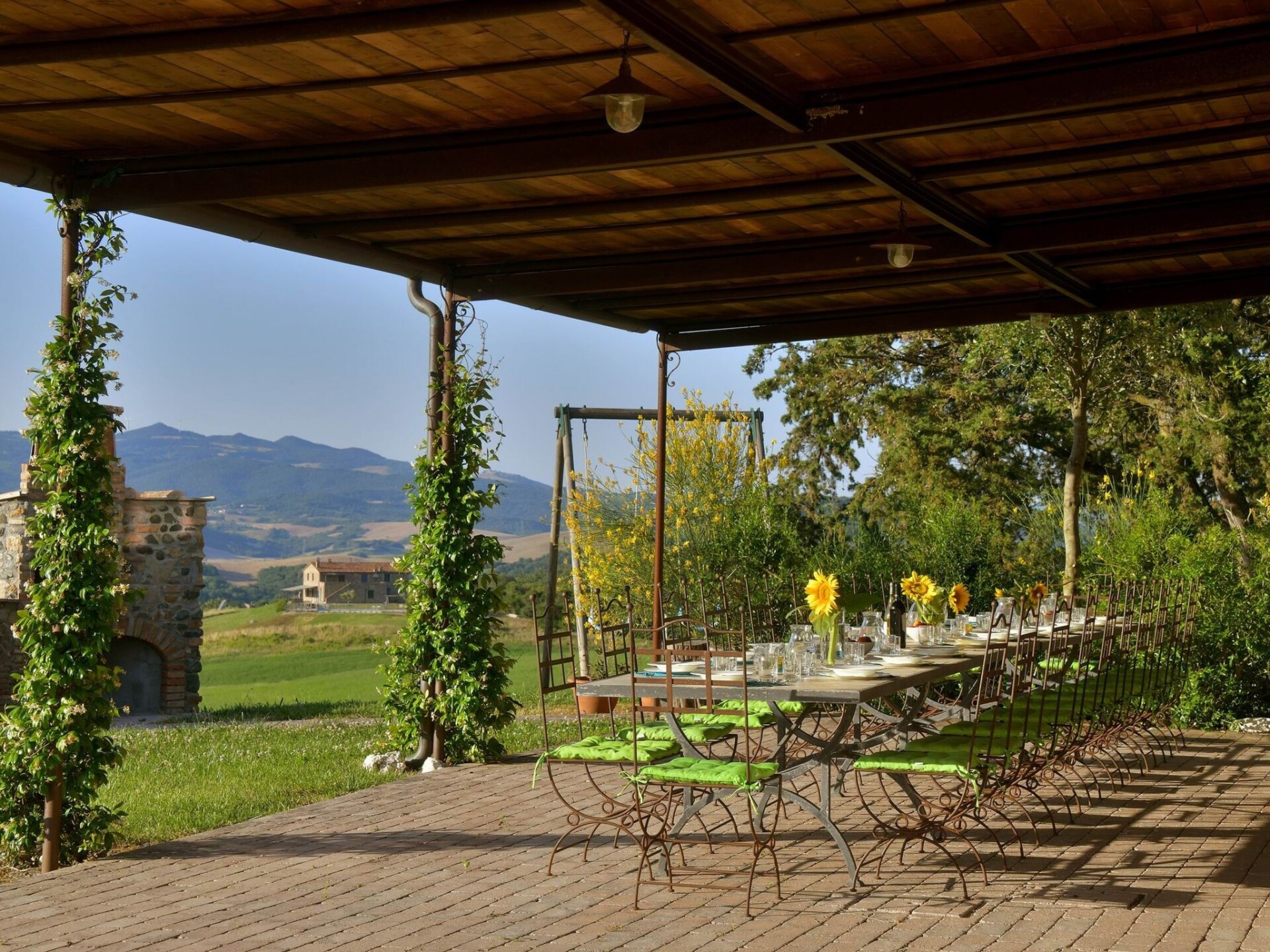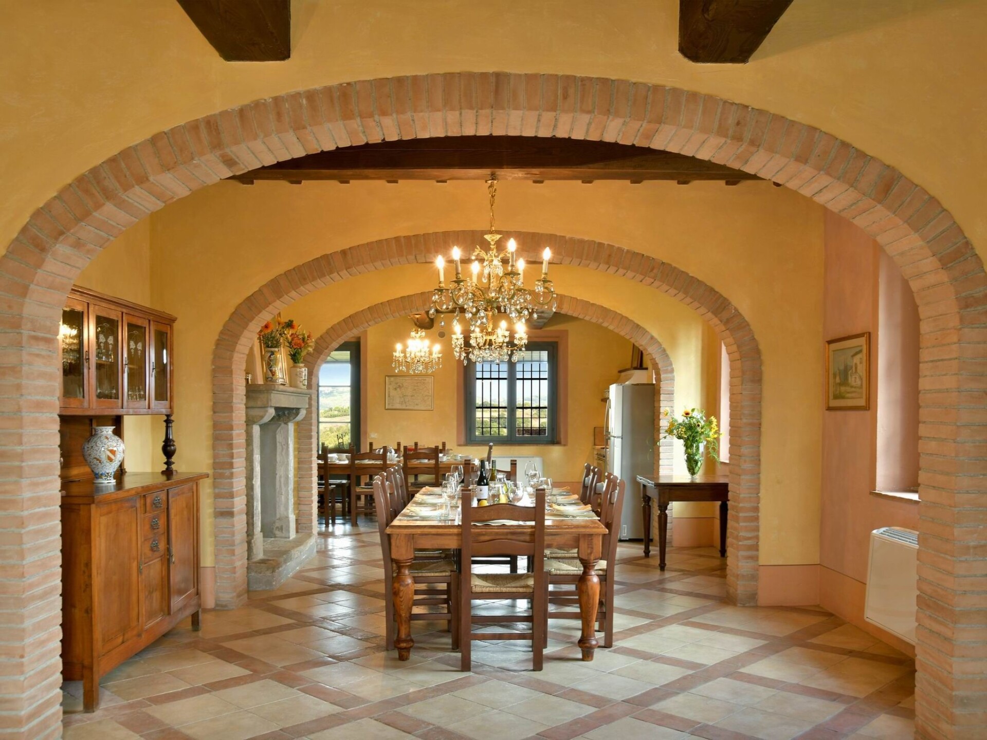 Maximaal 2 huisdieren/honden toegestaan. This Tuscan farmhouse with swimming pool, air conditioning and Wi-Fi has been carefully restored, paying particular attention to preserving its traditional features, and can accommodate up to 22 people.The villa, located in an area of absolute tranquillity and silence, ideal for a relaxing holiday, has a large garden with a covered porch and barbecue, ideal for al fresco dining, as well as a children's playground and table tennis table.The jewel of the garden is the infinity pool (fenced, 12x6 m, up to 150 cm deep, heated on request, open from May to September).Situated in a very quiet area, the 500 m² villa is divided into two independent flats, one for 8 guests and the other for 14. There are 10 bedrooms with private bathrooms and a tower with two single beds.Both flats extend over two floors.Flat for 8 guests: ground floor with living/dining room with fireplace, fully equipped open kitchen (gas cooker, oven, refrigerator with freezer, microwave, American coffee maker, mocha coffee maker, toaster, blender, juicer, kettle, dishwasher) and 1 twin bedroom, 1 double bedroom, each with private bathroom with shower. First floor: 2 double rooms with canopy, each with bathroom with shower.Flat for 14 persons: Ground floor with large living room, fully equipped open kitchen (gas cooker, oven, fridge with freezer, microwave, American coffee maker, moka, toaster, blender, juicer, kettle, dishwasher), fireplace, dining area and 1 twin bedroom, 1 double bedroom, each with private bathroom with shower. On the first floor are 4 double bedrooms with canopies, each with private bathroom with shower. Access to the tower, where there are two single beds and a bathroom with shower.Amenities: Wi-Fi, satellite TV, washing machine, hairdryer, mosquito nets, heating, air conditioning in all rooms, safe, 1 cot and 1 high chair, courtesy set in each bathroom, fire extinguisher, first aid kit for emergencies, large private car park, pets allowed.It is located in the heart of the Etruscan Coast, between Volterra (30 km) and beautiful beaches (Marina di Bibbona), 20 km away. At the same distance you can also reach Bolgheri, famous for its prestigious wines such as Sassicaia, Ornellaia, Masseto, etc.Thanks to its position, the villa enjoys a magnificent view of the surrounding countryside. Its strategic position also makes it easy to reach the nearby wellness and spa centres of the Montescudaio area, as well as to make excursions to beautiful art cities such as Pisa, Lucca, Siena, Florence or the splendid Etruscan ruins of places like Populonia.Distances: nearest shops in Casale Marittimo or Guardistallo 10 km away. Nearest restaurant and food shop 7 km. Sea 20 km; Volterra 30 km; San Gimignano 60 km; Pisa airport 73 km; Siena 85 km; Lucca 96 km; Florence 120 km. IT049001B49575MM9A