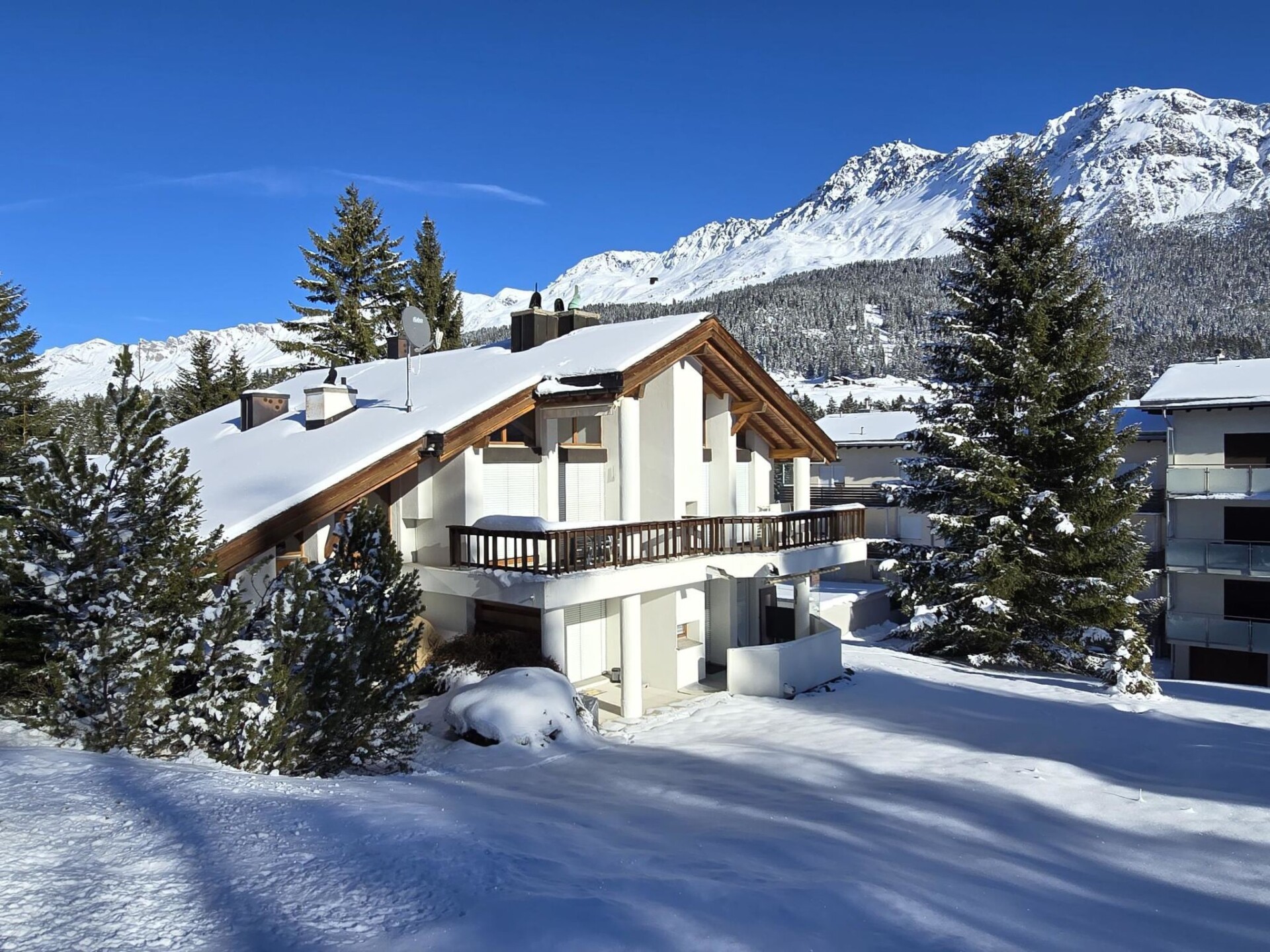 65 m2. Meer informatie beschikbaar bij de aanbieder: Sunny and quiet 2.5-room holiday apartment in the Fadail area of Lenzerheide, ideal for up to 3 guests (2 adults + 1 child). It offers a cozy living area and a south-facing outdoor seating area. Top location for winter sports: ski in/ski out at the Fadail ski lift/Children’s Area Aurara, and close to the Tgantieni chairlift. With good snow conditions, you can ski almost all the way to the house. Heidsee Lake with its lido and watersports facilities is about 700 m away, and tennis courts are located approximately 200 m from the property. The village center is a 7-minute walk away, offering shops, a post office, a sports bus stop, and various sports facilities. Lenzerheide offers an almost unlimited range of leisure activities: hiking, golfing, fishing, windsurfing, skiing, cross-country skiing, and many more activities ensure variety throughout the year. The apartment features a cozy living area with an open kitchen and dining corner, as well as a south-facing outdoor seating area equipped with garden furniture. The gallery includes a single bed, and the separate bedroom offers a comfortable double bed (160 x 200 cm). The bathroom is equipped with a bathtub and WC. A ski storage room are available for use. A covered outdoor parking space with an entry height of 2.15 m is also included. - Bed linen includes towels - the parking space is included.