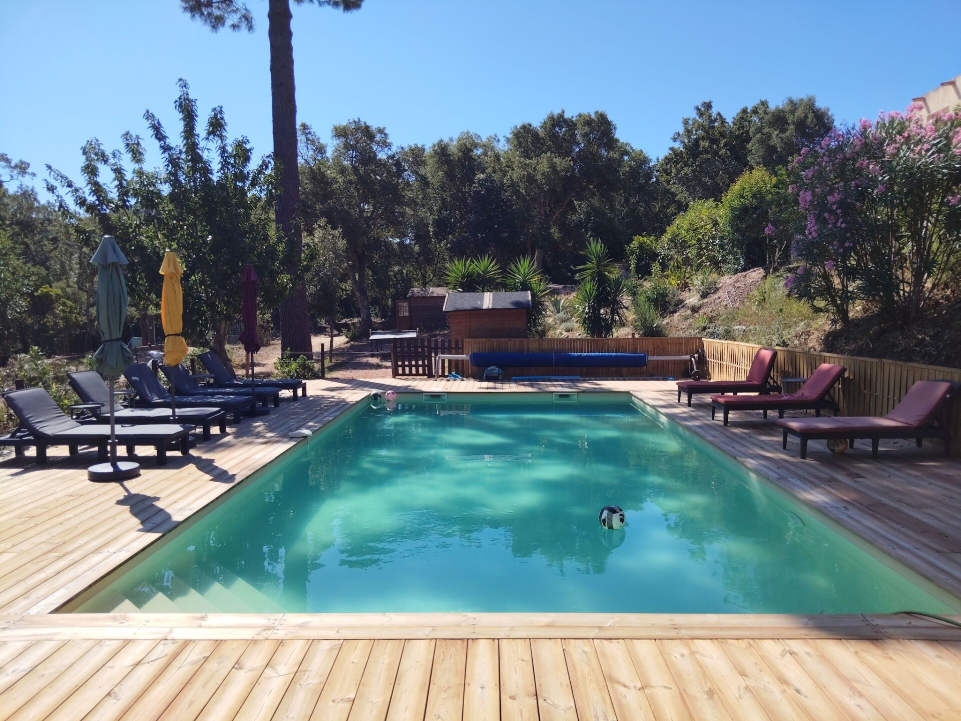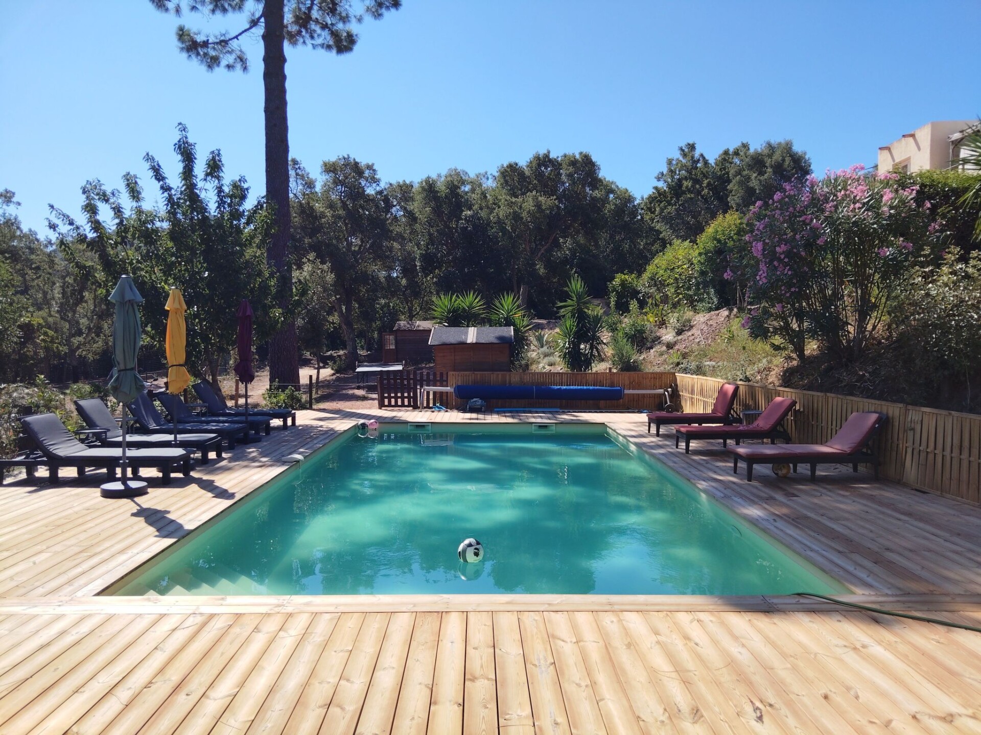 Two comfortable 75 m² ground-floor flats in the heart of the maquis on a 4000 m² property, in an exceptional setting with uninterrupted views of the mountains.Ideal for families with children or friends, ideal for relaxing.Terrace: sofa, 2 armchairs, table, 6 chairsOpen-plan kitchen; electric oven, microwave, induction hob,fridge-freezer, dishwasher, washing machine.Living/dining room: sofa bed, coffee table, two armchairs, 80 cm flat-screen TV, table, chairs and sideboard.Master bedroom with en-suite bathroom and separate WC.Second bedroom with en-suite bathroom and WCThe 5 x 10 m heated swimming pool is shared.Linen and cleaning includedClose to the magnificent beaches of southern Corsica, the Rivière du Cavu and its natural pools 5 minutes away.Ideally located for visiting Corsica, in the heart of the regional nature park, the starting point for the famous GR20 hiking trail. The magnificent Pinarello beach is 10 minutes away, and the legendary Palombaggia and Santa Giulia beaches are less than 30 minutes away.....The Cavu river with its natural pools is 5 minutes away.In the tourist towns of Porto-Vecchio, Bonifacio and Solenzara, you'll be able to meet the local craftsmen and farmers who produce quality regional produce at the day and night markets. The Alta Rocca massif, the Bavella peaks, the Ospédale forest and the Cavu and Solenzara rivers will reveal all their charms in all seasons: A paradise of sporting activities, dream beaches, unspoilt nature, a land of discovery, events all year round, not-to-be-missed sites, culinary tours, unusual discoveries, traditional music festivals, secular celebrations or religious commemorations, cultural events, village fairs, Corsica guarantees you an enrichment of sensations for an unforgettable holiday. Between coastal paths, sea walks and water sports, the island will delight you with its many facets, and the Corsicans will enchant you with their hospitality, traditions and culture.Basic facilitiesAir conditioningCleaning productsBasic kitchen equipmentDedicated workspaceCrockery and cutleryHair dryerHeatingKitchenSwimming poolTelevisionWashing machineWifiBody soapHot waterBed linenStorage space for clothesClotheslineExtra pillows and blanketsClothes hangersIronMosquito netBooks and reading materialEthernet connectionBaby bathBabysitter recommendationsChildren's crockeryBaby bedHigh chairPlug coversUmbrella bedFire extinguisherCooking hobsBarbecue utensilsBlenderCoffee makerDining tableDishwasherFreezerElectric kettleMicrowave ovenOvenFridgeCookerToasterWine glassesPrivate entranceBackyardBarbecueHammockOutdoor dining areaOutdoor furnitureFree on-site parkingAccommodation on one levelLong-term stays authorised. FRA2023COR