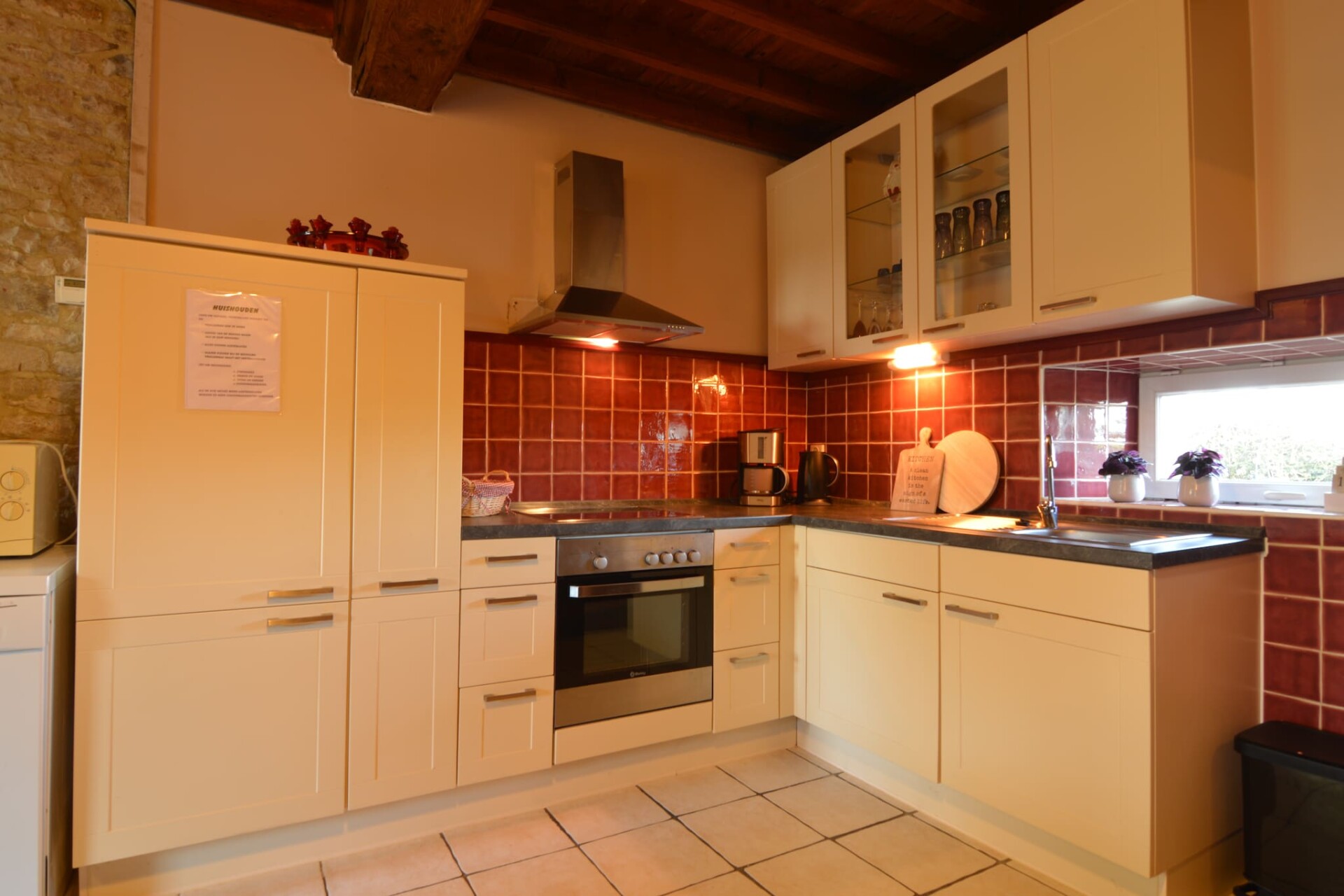 Buiten op uw privé terras geniet u tot laat van de zon en op minder zonnige dagen biedt de eetkamer met houtkachel een heerlijke knusse ruimte. Kinderen kunnen naar hartenlust spelen; zowel buiten in de tuin met trampoline en speeltoestel, als in de speelruimte in het vakantiehuis. Maar misschien vinden ze meehelpen op de veehouderij nog wel leuker!