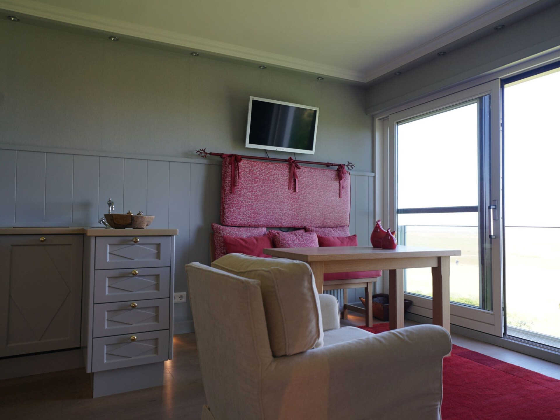 Welcome to the Feskerdam holiday flat, the ideal retreat for couples looking for a break in the beautiful surroundings of Morsum on the North Sea island of Sylt. A cosy atmosphere awaits you here in an easily accessible top-floor flat that is specially designed to offer you peace and comfort. Whether you want to relax after a day of exploring or simply enjoy time with your four-legged friend, here you will find the perfect setting for an unforgettable holiday.Inside, the flat not only offers a separate bedroom for peaceful nights, but also a range of amenities to make your stay as comfortable as possible. From the ability to keep your favourite clothes fresh with the washing machine provided for your sole use, to the choice of coffee machines - whether filter coffee in the morning or a quick pad coffee in between - your comfort is taken care of. A kettle completes the offer and makes the flat a true home away from home.The communal garden offers a welcome change from the indoor area. Although barbecues are not permitted here, this outdoor area invites you to spend relaxing hours outdoors. It is the perfect place to browse through a good book or simply enjoy the fresh air of the North Sea. The flat and garden offer both you and your pet the opportunity to relax and unwind.Morsum and its surroundings are a paradise for nature lovers and active holidaymakers. The nearby Schleswig-Holstein countryside beckons with idyllic hiking routes and cycle paths that start right on your doorstep. The Morsum Golf Club is only a short distance away, while the charming seaside resort of Westerland with its many leisure activities is within easy reach. Culinary delights are provided by various restaurants nearby, which offer regional specialities and are just a short drive from the flat.In the Feskerdam holiday flat you will experience the ideal combination of peace, nature and comfort. Whether you want to explore the picturesque landscape, relax on the beach or simply enjoy the special atmosphere of Morsum - this cosy holiday flat offers the perfect starting point. Make your stay a special experience and let yourself be enchanted by the beauty of Sylt.