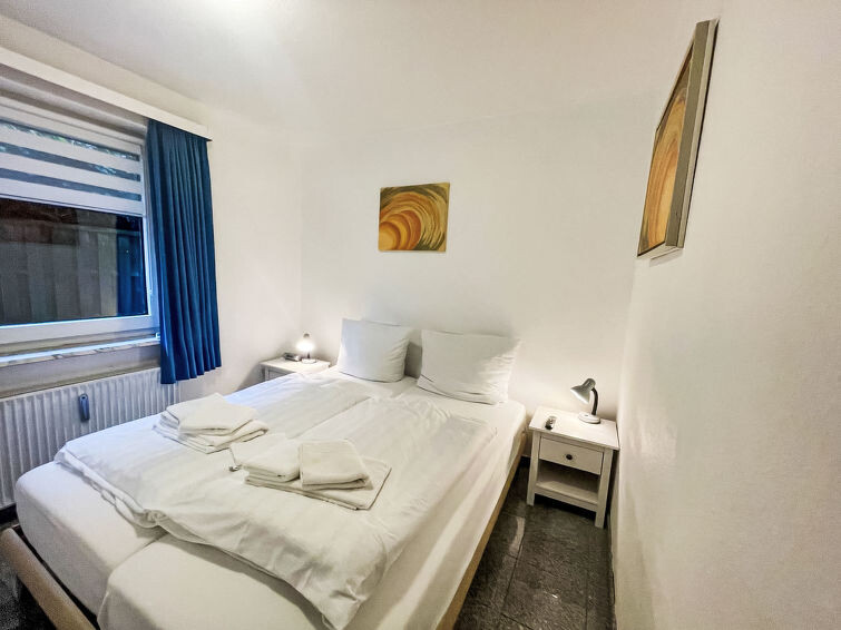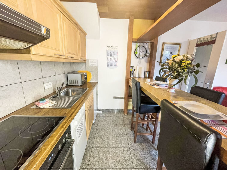 "Fewo 2 in ruhigem Haus", appartement 2-kamers 38 m2, op de begane grond. Comfortabel ingericht: woon-/eetkamer met Sat-TV (Flatscreen TV), radio, CD-speler en DVD. 1 kamer met 1 2-pers bed en Sat-TV (Flatscreen TV). Kookhoek (oven, afwasmachine, 4 keramische glas kookplaten, broodrooster, waterkoker, magnetron, elektrische koffiemachine) met bar, eettafel. Douche/WC. Verwarming. Ter beschikking: kinderbed, haardroger. Internet (WiFi, gratis). Parkeerplaats (1 Auto) bij het huis. Niet rokers woning. Maximaal 1 huisdier/hond toegestaan. Rookmelders.