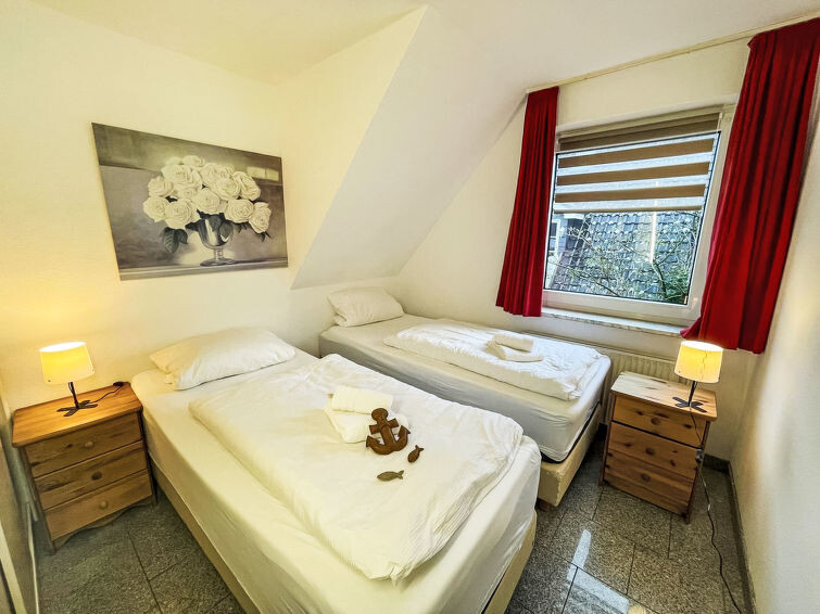 Appartementencomplex. 4 appartementen in de woning. 1 km van het centrum van Westerland, in een woonwijk, 1.5 km van zee, 1.5 km van het strand. Voor medegebruik: terrein, tuin met gazon. Patio, terras, tuinmeubelen. Winkel 1 km, supermarkt 50 m, restaurant 1 km, bushalte "Culemeyer Straße" 50 m, treinstation "Westerland" 800 m. Golfterrein (18 holes) 2.7 km, kinderspeelplaats 1 km.
