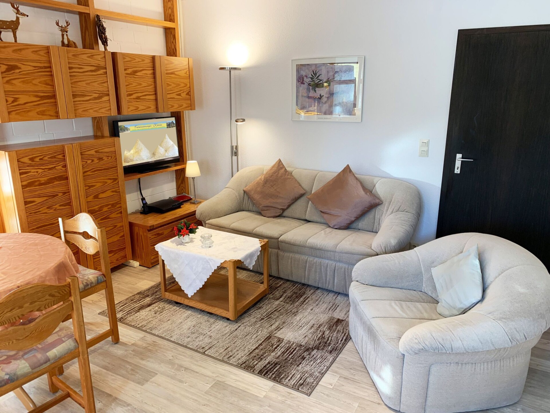 Maximaal 2 huisdieren/honden toegestaan. The apartment is on the ground floor of an apartment building near the centre in the green climatic spa town Hahnenklee in the Oberharz. Just a few steps lead up to the entrance.The interior is well-equipped and furnished. The apartment measures around 34m² and comprises a large living and dining room with an open built-in kitchen and a bedroom separated off by a sliding door, as well as a separate shower room/WC and a little hallway. There is a sunny loggia/conservatory. The kitchen is equipped with a sink, fridge and freezer, oven and 4-zone ceramic hob, filter coffee machine, kettle and egg boiler, toaster, microwave and plenty of crockery, glasses, cutlery and cookware. A flatscreen TV, DVD player, radio and free high-speed Wi-Fi are available.There are plenty of parking spaces on the street in front of the house. You have a sunny loggia (roofed balcony)/conservatory, as well as access to the shared garden with a lawn. From there you can walk conveniently to the Kurpark, the ponds or the lake.The apartment is non-smoking, including on the balcony. Pets are welcome.You will enjoy a central top location right by the Kurpark. You can walk to the pedestrian zone of Hahnenklee with cafes, restaurants, shops, banks, a bakery, hairdresser and the ErlebnisBocksberg Hahnenklee.