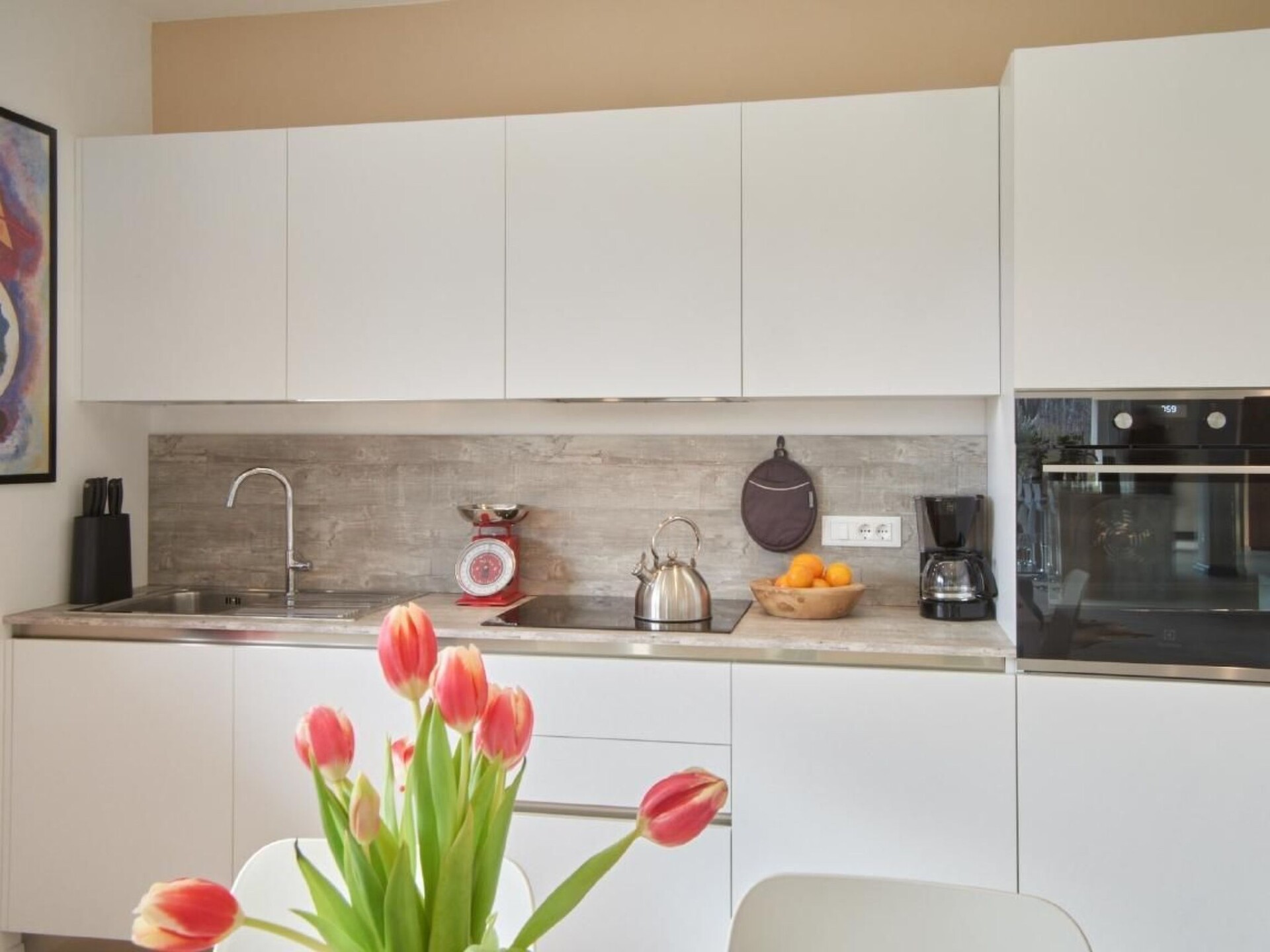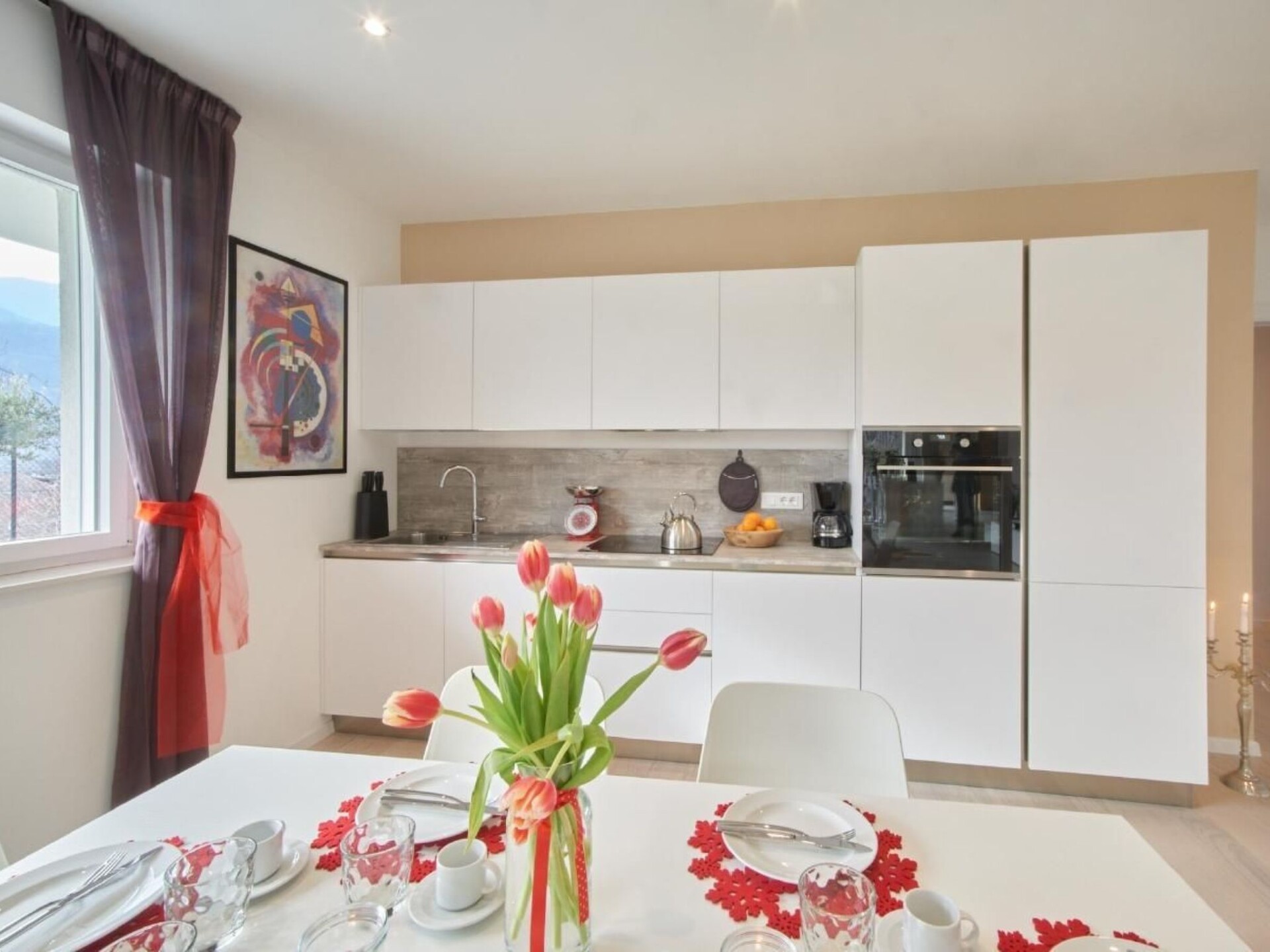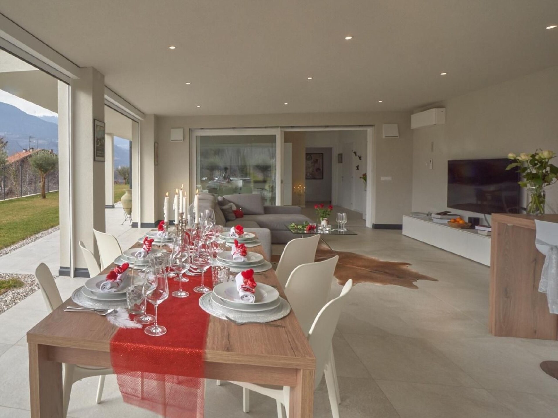 Maximaal 1 huisdier/hond toegestaan. " Residence Olivi " is located in the southern part of the Burggrafenamt, surrounded by green nature and can be reached via our private access road. In the southern part of the complex is the Aschlbach stream and to the north the property is protected by the mountain that leads to Merano 2000. The building consists of four residential units and is built according to the "Nature" climate house standard. The project with a modern language was planned in a traditional rural context while respecting nature. Due to the south-west exposure, the protection of the north winds, the entire building is surrounded by olive trees, which can only grow naturally in this part of the Burggrafenamt. The hillside, adjacent to the residence, is cultivated with a small olive grove of 40 olive trees. The Aschlbach stream, with the sound of water (white noise) flowing south of the residence, will have a relaxing effect on you and make your sleep easier. The two flat types "Garden & Wellness Oliveto" on the ground floor and "Penthouse & Wellness Oleario" on the upper floor both have a living room with kitchen, bathroom, main bathroom, two double bedrooms, large covered outdoor areas, which include an outdoor living room with kitchen / bar counter and wellness area with relaxation area. Each unit has two garages, a cellar and an outdoor parking space. "Garden & Wellness Oliveto" The flat extends over the entire ground floor, surrounded by a 440 m² garden, olive trees and cypresses. On the outside there is also a herbarium with basil, rosemary, chives, etc. to add extra flavour to your dishes. Your garden is maintained daily by our robot so that you always have an English lawn. The interior area ( 70m² ) consists of a living room with kitchen, two double bedrooms, bathroom and main bathroom. The covered outdoor area ( 170m² ) is divided into a living and wellness area. Outdoor area: The covered living area has an outdoor sofa, 65'' TV area, table 6 seats, outdoor kitchen, bar area. The wellness area consists of a Finnish sauna, a treadmill, an exercise bike, a whirlpool and a relaxation area.Private mini pool "Dolcevita" (unheated) only for the Apartment Garden, unique in South Tyrol from April/May to September/October, depending on weather conditions.CANCELLATION:A deposit must be paid in cash when the flat is handed over. This deposit will be refunded by bank transfer after the flat has been cleaned. Entire accommodation unit: - Climate house " Nature " - Underfloor heating - Automatic decentralised aeration and final ventilation - Bus system - Ceiling lighting with Led - Soundproof windows - Pictures and sculptures - Air conditioning with heating function - House key 2 copies, remote controls garage 2 copies, key cellar and power room Entrance area: - Wardrobe Teppic Living area - kitchen: - Dining table with six chairs - kitchen - Dishwasher - Taps - Refrigerator - Freezer - Extractor hood - Washing machineWeber electric barbecue - Guest book - games - books - Sonos sound system - tablet - 3 * Remote control air conditioning - 1* Remote control outdoor markings - Thermometer - 2 glass water jugs - 1 plastic water jug - Curtains, drapes - 6 cutting boards small - 6 large chopping boards - Laundry hanger - 4 large wooden saucers - 6 large saucers fabric - 1 cutting board professional - 2 Bread basket small and large - 3 salt bowls 2 round, 1 square - 2 rugs - 1 metal fruit basket - 1 champagne holder - 1 funnel - 20 pocket clips - 1 dustpan with broom - 1 iron 1 Bűgelbret - 16 flat plates Omnia 27 - 16 Dessert plates Omnia 22.5 - 16 deep plates Omnia 28 - 16 coffee cups Omnia - 16 saucers coffee Omnia - 16 Mocha cups Omnia - 16 saucers mocha Omnia - 8 Cereal bowl Rotondo 15 - 2 Handle pan Barazzoni 28 - 2 Barazzoni saucepan 24 - 12 Water glass Barazzoni San Remo - 6 Drinking glass Cortina 25cl - 6 Drinking glass Accademia 46cl - 1 ashtray - 2 WMF salad servers - 1 square grater - 1 peeler WMF - 2 salt/pepper mill Westmark - 2 ladle Brabantia - 2 slotted spoon Brabantia - 2 turners Brabantia - 1 spaghetti tongs Brabantia - 1 corkscrew - 1 Brabantia tin opener - 1 whisk - 2 cooking spoons - 2 wooden spoons with hole - 8 melamine egg cups - 6 Guzzini drinking glasses - 1 Mocca 6Tz Forever - 1 Pavoni coffee machine - 1 cream and sugar mixer - 1 stainless steel pasta strainer - 1 hand shovel + whisk - 1 salad spinner Emsa - 2 Gefu cutting board - 1 flute pot Eva - 2 knife block Brabantia - 1 lemon squeezer WMF - 1 Toaster Philips - 1 Melitta coffee machine - 1 egg boiler - 2 cake forks WMF - 4 cutlery WMF Miami - 12 wine glass Bordeaux goblet - 12 wine glass red wine - 12 champagne glass - 2 pot set WMF Provence Plus - 2 Slip rugs - 1 clothes pegs with basket - 1 carpet entrance door - 4 towel rails shower - 2 soap dispensers 1 teak shower tray - 1 cowhide rug - 1 ironing board - 1 clothes horse - Dried flowers 6 times - Bucket with mop - extension cord - Pepper - salt - rubbish bags Day WC: - WC - Wash basin - Washing machine - Wall cupboard - Vanity unit Washbasin - Toilet roll holder - Toilet roll - Toilet brush - Ceiling lighting - Mirror lighting - Towels - Soap Bathroom: - WC - Toilet roll holder - Toilet paper - Toilet brush - Bidee - Washbasin with vanity unit - Walk-in shower - Toilet fume cupboard - wall mirror - towel radiator - towels - Bath rug - 1 shower wall scrubber - Soap dispenser - Shower mat - Towel hook - Bathrobe - Large towel - Small towel - Soap - Hair dryerDouble room 1: - Double bed with separator - wardrobe - coat hanger - Bedside chest of drawers - Night lamp with reading lamp and USB connection - pictures - Smart TV 32" - Duvet covers with pillowcase - Duvets - Pillows - Sheets Double room 2: - 2 single beds - wardrobe - coat hanger - Bedside chest of drawers - Night lamp with reading lamp and USB connection - pictures - Smart TV 32" - Duvet covers with pillowcase - Duvets - Pillows - Sheets Outdoor area: - Divan with sleeping accommodation - Livi