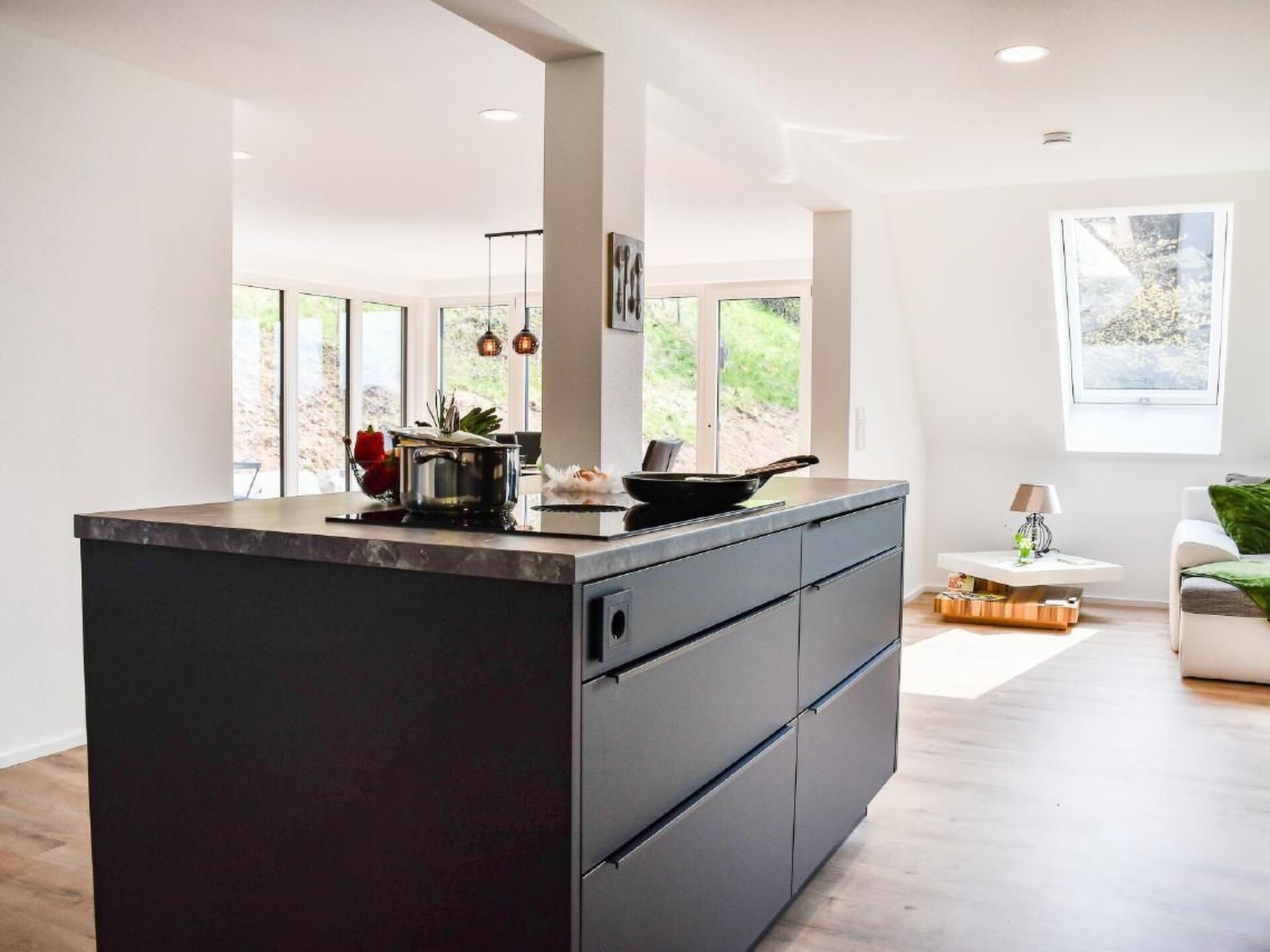 This non-smoking holiday apartment has an open, light-flooded bathroom on the top floor with an adjoining bedroom with a double bed. Upstairs there is another bedroom with a double bed. In the spacious living area, there is a spacious couch and a dining table as well as the modern, well-equipped kitchen-cum-living room. Another guest toilet is available. The 40sqm terrace offers a great, natural valley view. Pets on request.