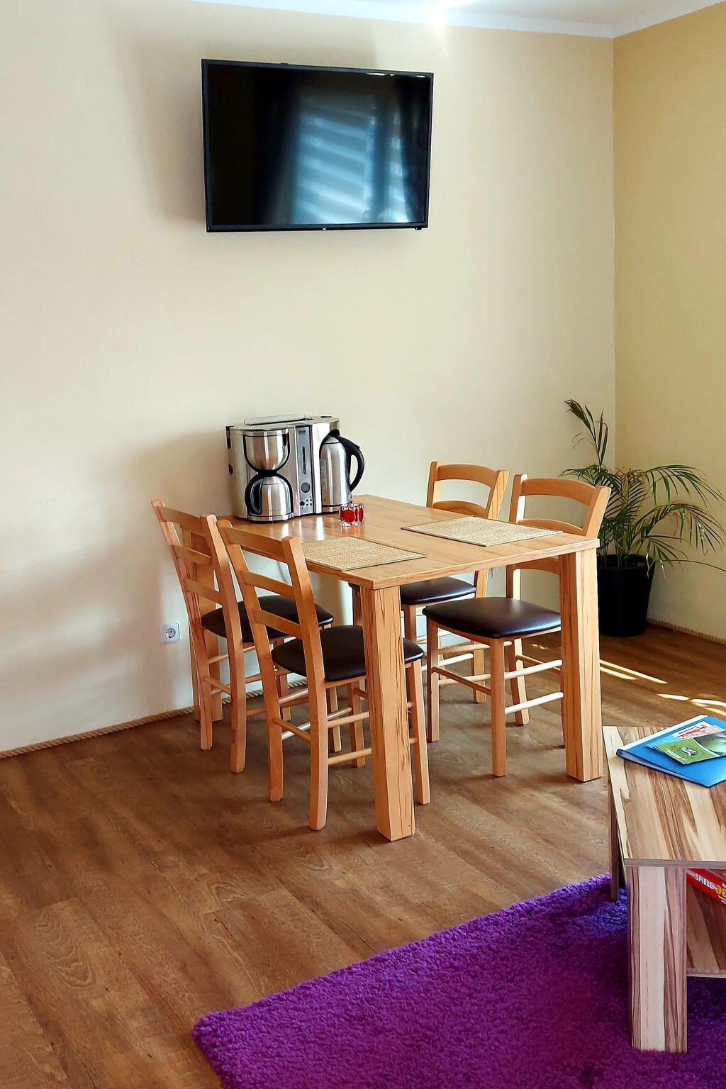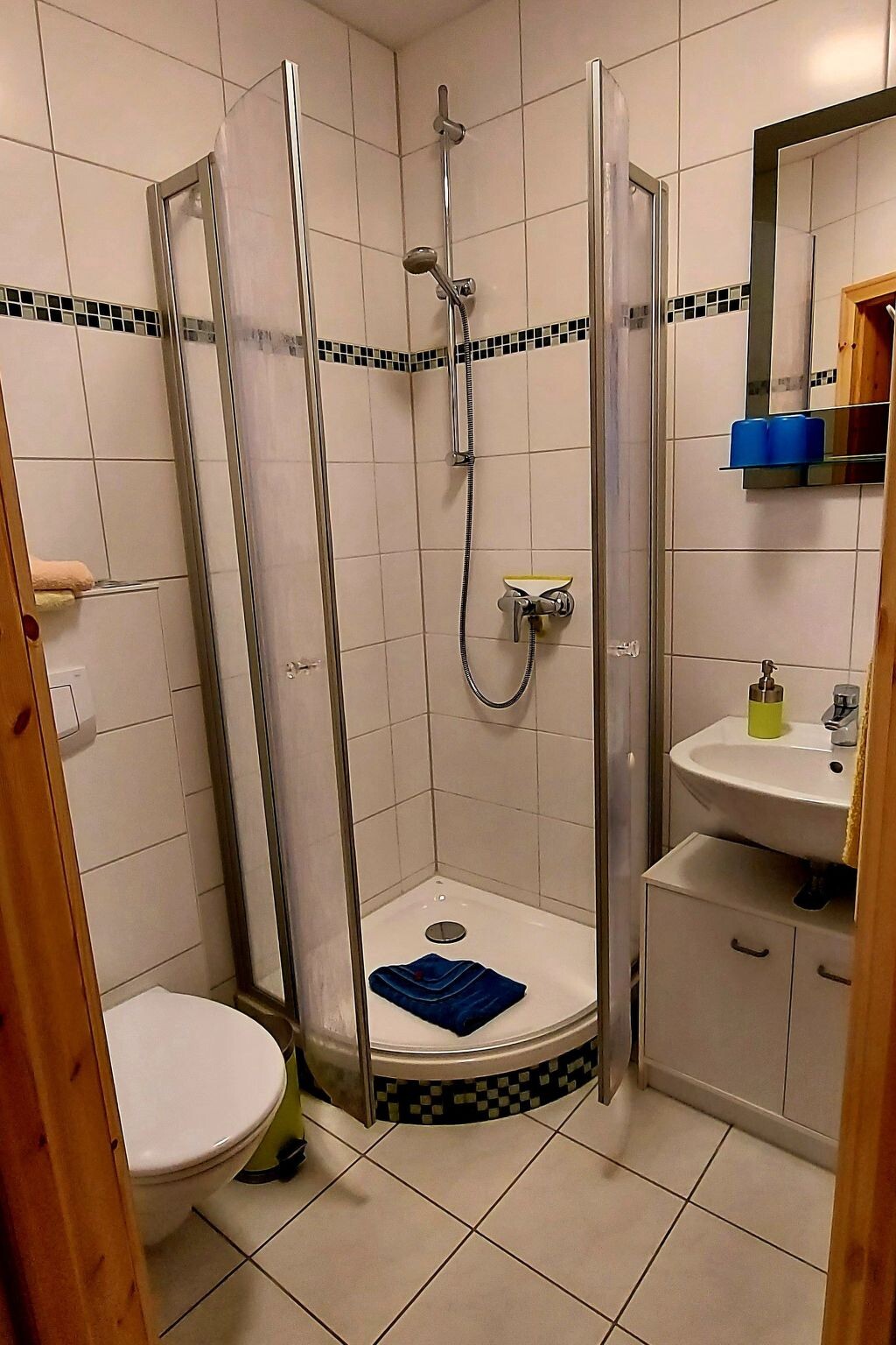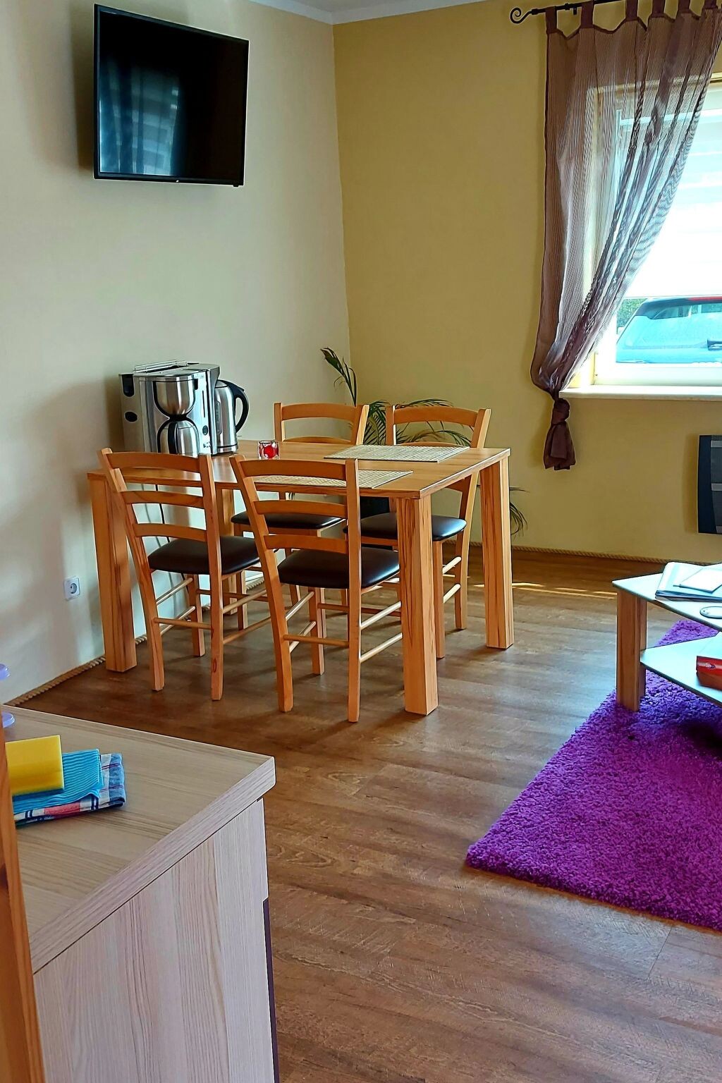 This holiday flat, newly refurbished and renovated in 2016, is quietly located in a side street with little traffic. The beach and the centre can be reached in a few minutes on foot or by bike.The terrace with patio furniture, parasol and barbecue invites you to linger in comfort. There is a car park at the house.The 50 m² flat is ideal for two people. It offers a spacious eat-in kitchen with a cooking/dining area and a living area with a comfortable couch and flat-screen TV. The dining table seats four comfortably and the kitchenette is equipped with a two-ring hob, coffee machine, fridge, microwave and kettle. The bedroom has a double bed, a wardrobe and a flat-screen TV so that you can watch a film from the comfort of your bed. The brightly tiled bathroom is right next door and is equipped with a shower and WC.Shopping facilities and restaurants are in the immediate vicinity. The distance to the beautiful white sandy beach is around 1000 metres. The Prerow harbour with various passenger ships, including the Mississippi paddle steamer, is around 700 metres away. You can hire bikes from numerous bike hire shops in the immediate vicinity and explore the wonderful landscape or the "Darßer Urwald" forest by bike. A carriage ride to the Darß lighthouse through the "Darß primeval forest" is both interesting and highly recommended. Prerow is an idyllically situated village directly on the Baltic Sea in the middle of the "Darß Primeval Forest" with its unique cycling and hiking trails. The Darß is part of the Fischland-Darß-Zingst peninsula chain. With the "Darßer Urwald" and its surroundings, large parts of this unique landscape are part of the "Vorpommersche Boddenlandschaft" National Park.Right next door you will find my organic and regional market "Gaude Kost". Here you can buy your bread rolls and breakfast eggs, for example, as well as many other regional products such as sausage and cheese.
