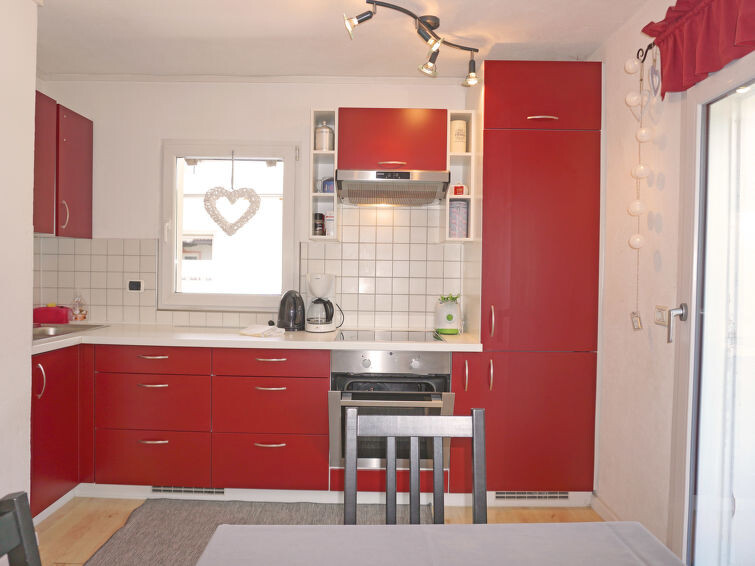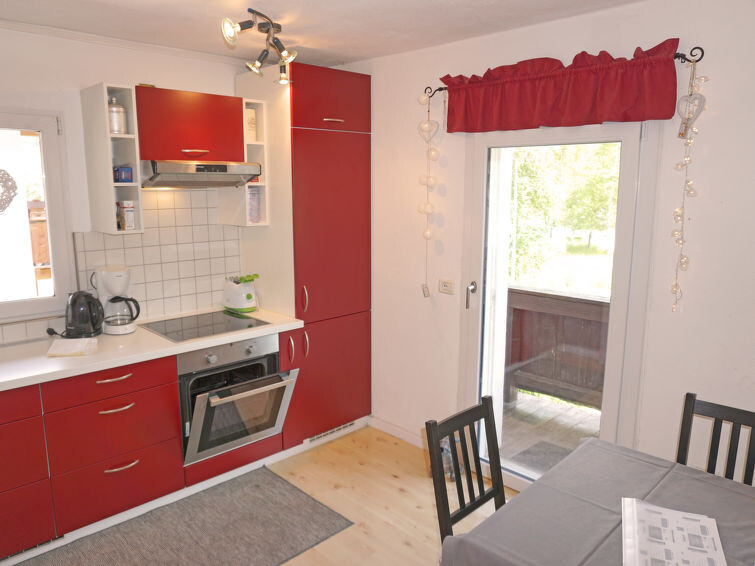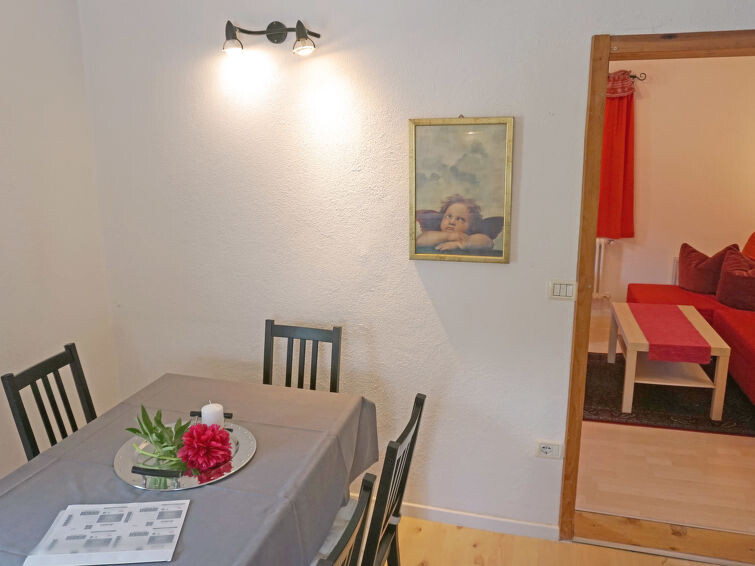 "Föhrenheim", appartement 2-kamers 58 m2 op de 1e verdieping. Doelmatig ingericht: woon-/slaapkamer met 1 2-pers divanbed en Sat-TV. Uitgang naar het balkon. 1 2-pers. kamer met douche/WC. Uitgang naar het balkon. Woonkeuken (oven, 4 keramische glas kookplaten, broodrooster, waterkoker, elektrische koffiemachine) met eethoek. Uitgang naar het balkon. Douche/WC. Houten vloeren. Balkon. Balkonmeubilair. Ter beschikking: Internet (Internet (WiFi), extra). Parkeerplaats (1 Auto). Niet rokers woning. 2 huisdieren/honden toegestaan.