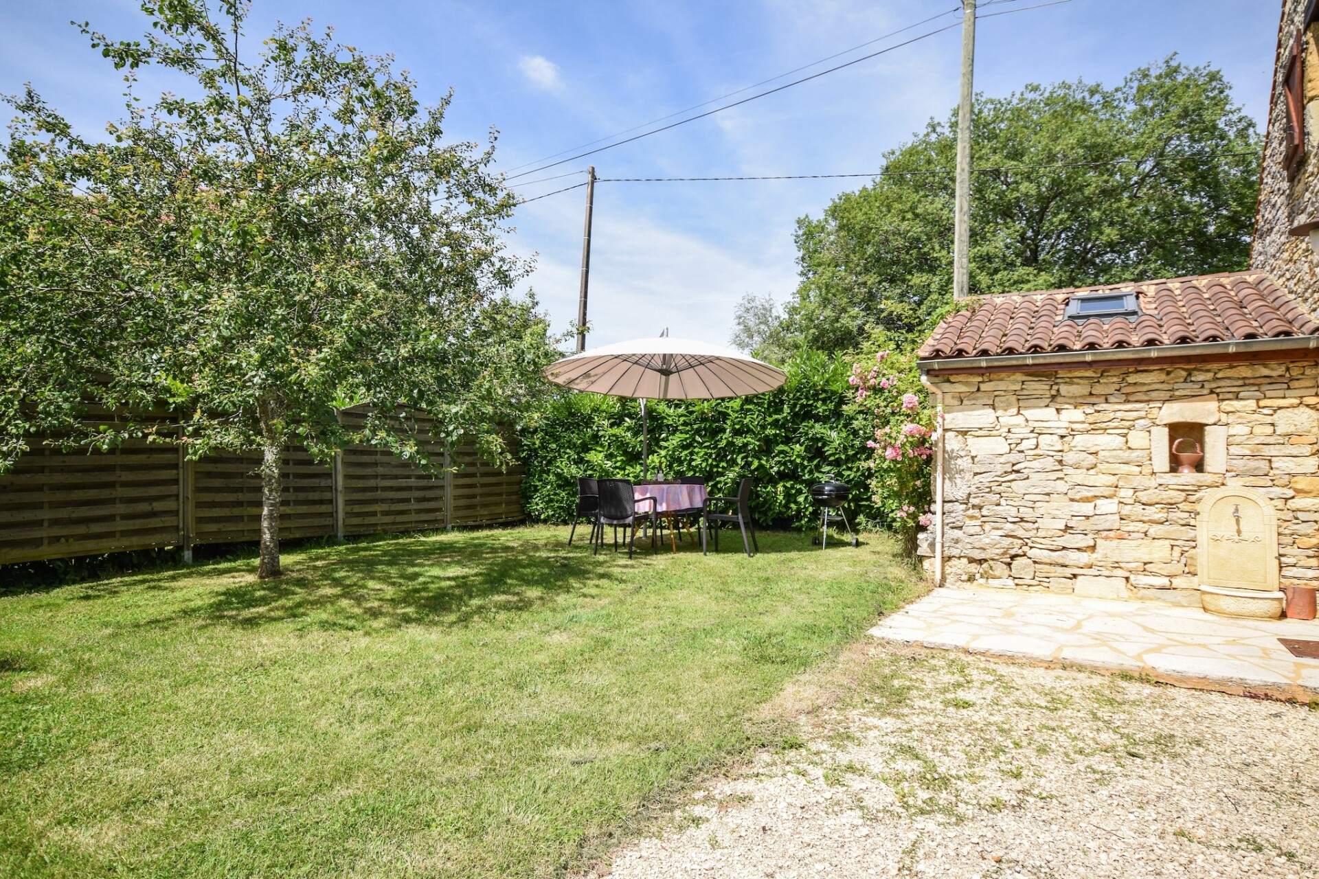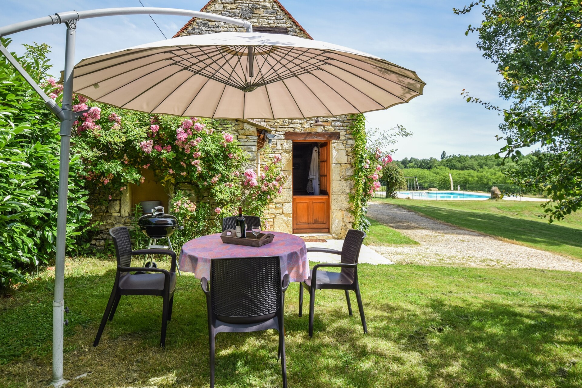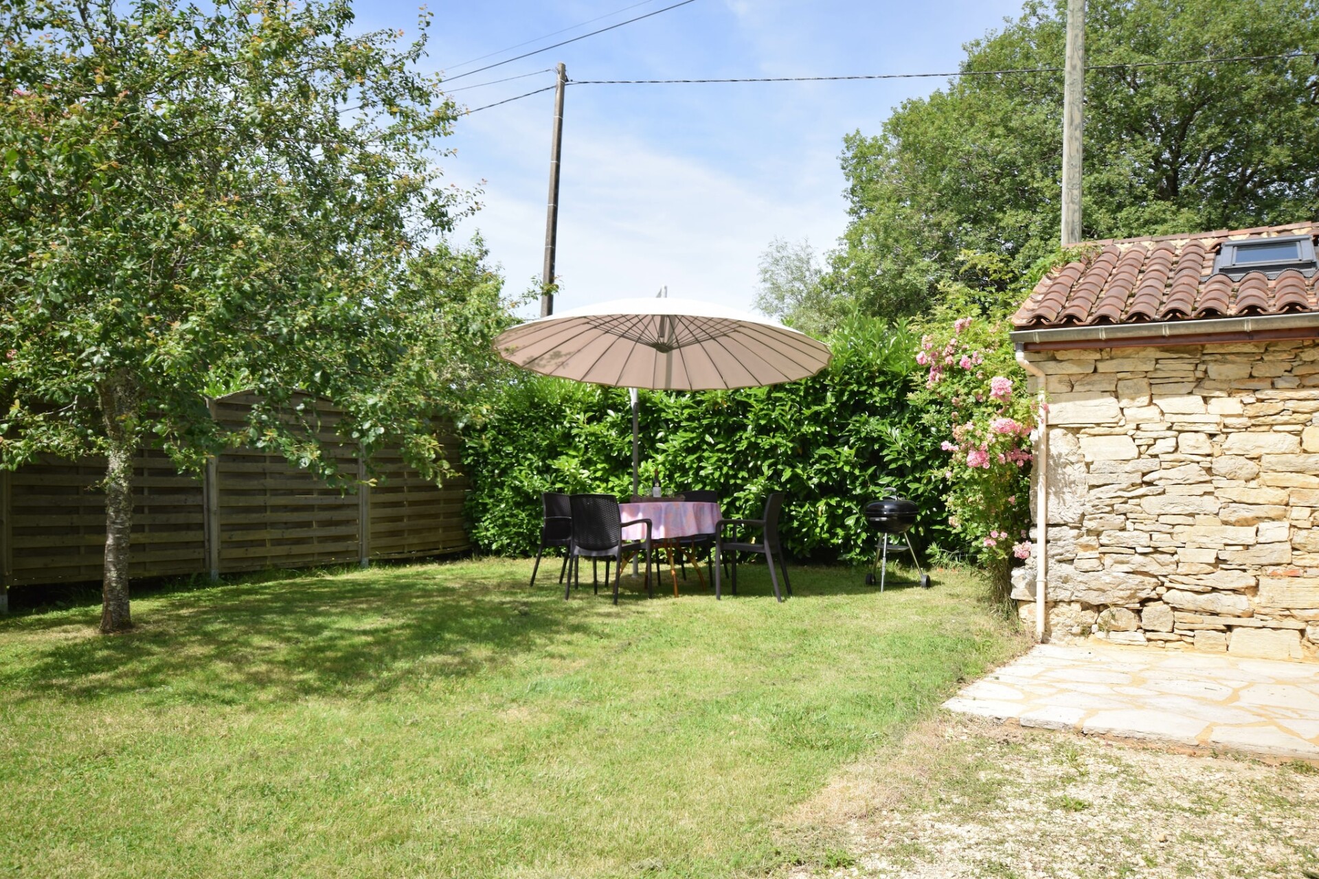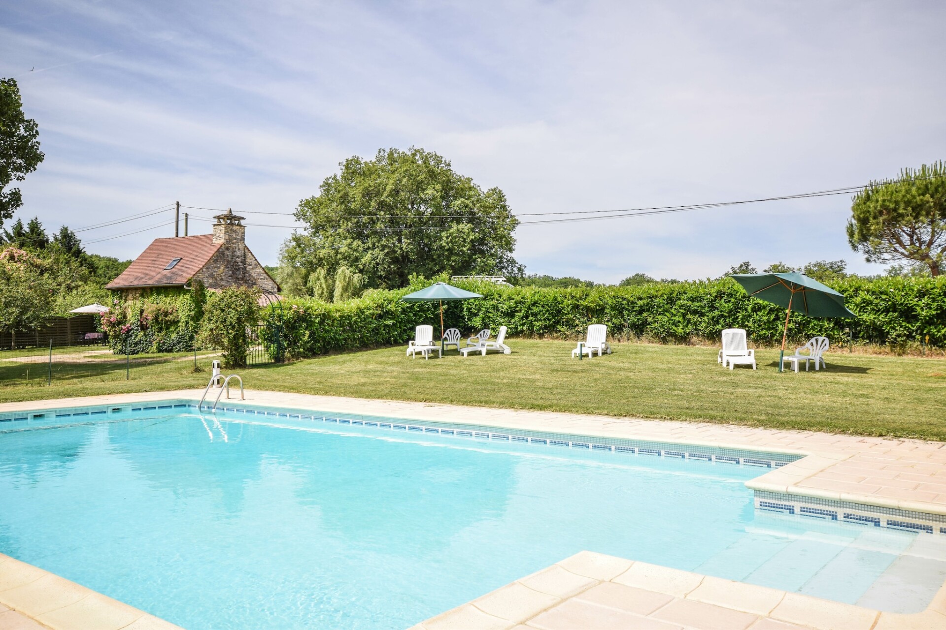 De Franse eigenaar woont een stukje verderop, gunt u alle privacy, maar is er indien u hulp of vragen heeft. Achter de schuur ligt nog een vakantiehuis (uit het zicht) en het grote gemeenschappelijke zwembad met ruime terrassen en meer dan voldoende tuinmeubelen, ligt ruim achter het huisje. Verderop, uit het zicht, liggen nog een klein huisje wat sporadisch verhuurt word, en die huurders maken dus ook af en toe gebruik van het zwembad, maar daar zult u geen last van ondervinden.