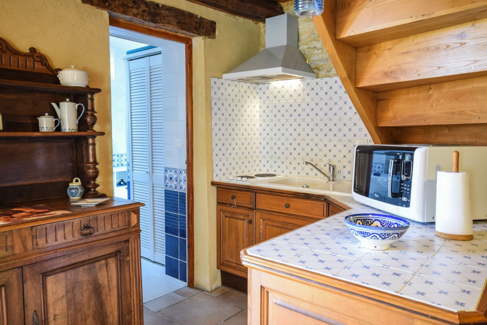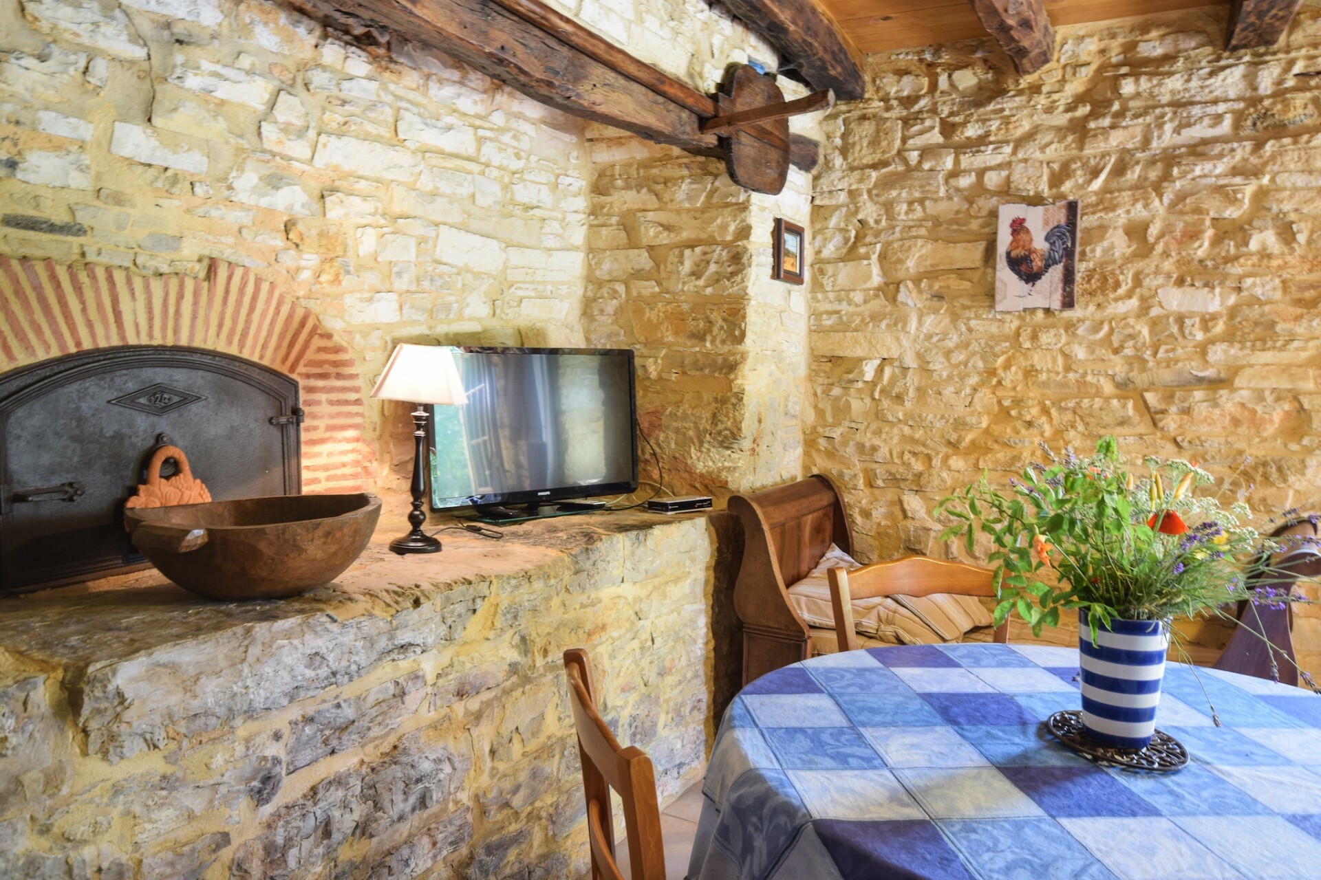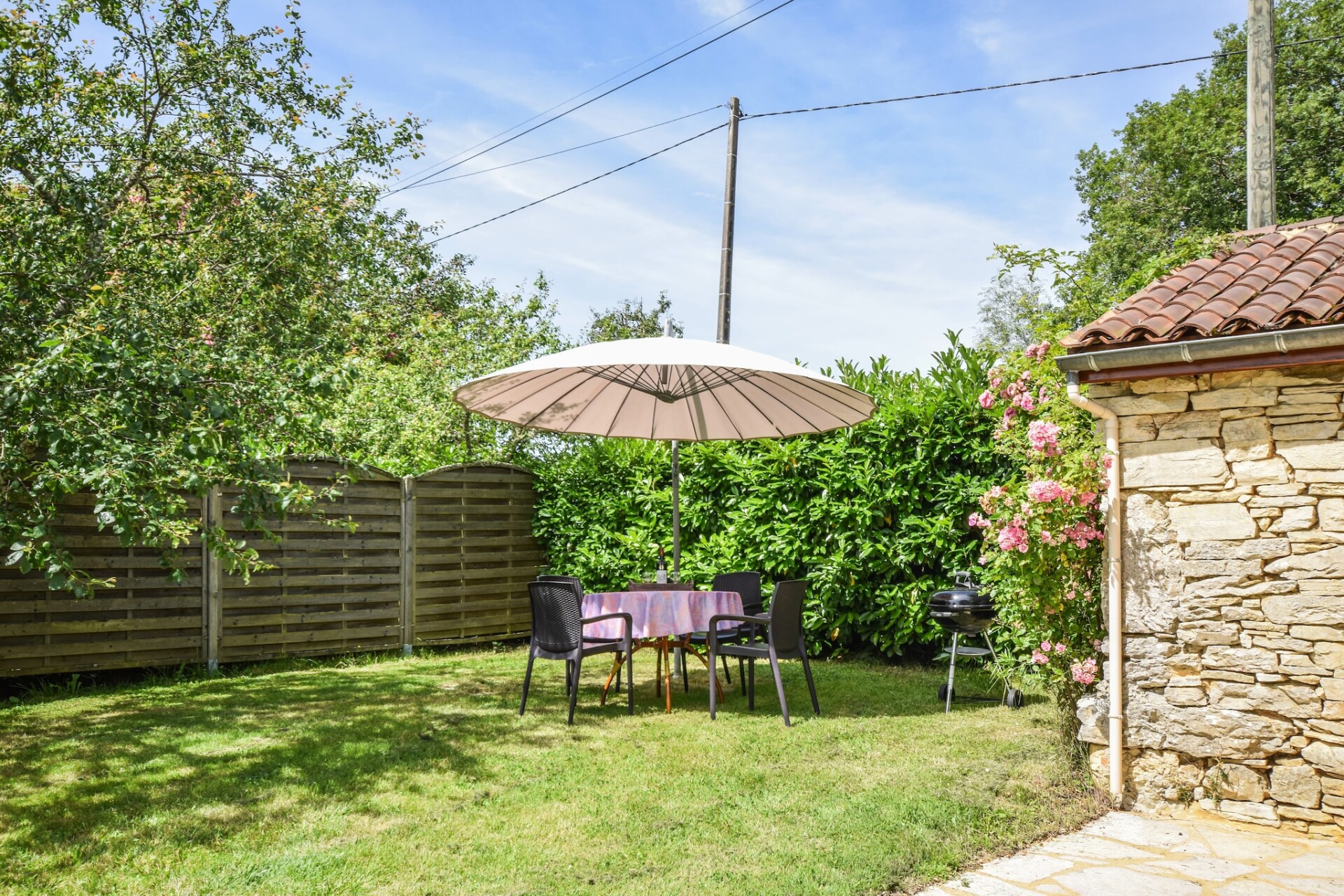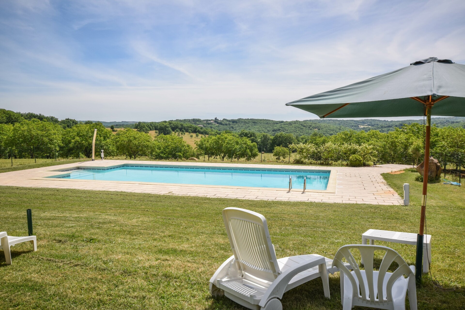 De Franse eigenaar woont een stukje verderop, gunt u alle privacy, maar is er indien u hulp of vragen heeft. Achter de schuur ligt nog een vakantiehuis (uit het zicht) en het grote gemeenschappelijke zwembad met ruime terrassen en meer dan voldoende tuinmeubelen, ligt ruim achter het huisje. Verderop, uit het zicht, liggen nog een klein huisje wat sporadisch verhuurt word, en die huurders maken dus ook af en toe gebruik van het zwembad, maar daar zult u geen last van ondervinden.