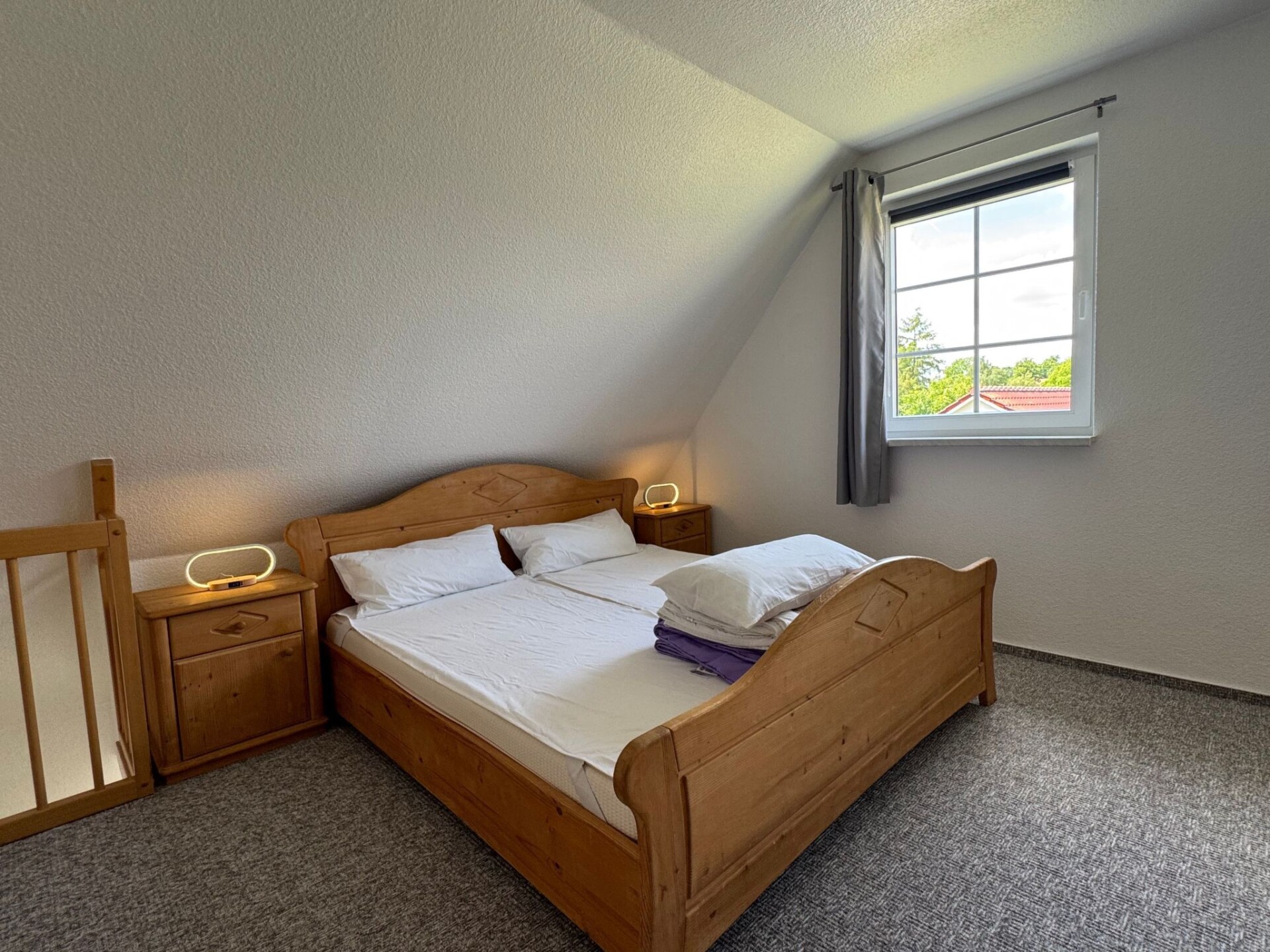 This beautiful, quietly situated holiday flat is located in the landlord's house in Gressow, a small village between Grevesmühlen and Wismar, not far from the B 105.Several sandy beaches on the Baltic Sea are approx. 15 min. car journey.A terrace with garden furniture is located in front of the entrance to the flat with a view of the garden. There is private parking on the property.It has a total floor area of 49 m², which is divided over two floors. On the ground floor there is a large eat-in kitchen, which is equipped with a fitted kitchen including fridge-freezer, ceramic hob, dishwasher and microwave. A seating area in the living area can be converted into a sofa bed. The separate hallway leads to the upper floor. There you will find the bedroom with double bed (1.80 x 2 m), which is designed as a gallery and from there you enter the bathroom with shower. There is satellite TV in both rooms, i.e. in the living room as well as in the bedroom. This means that there are a total of four sleeping options and an additional guest bed. A cot is also available on request. Bed linen, crockery, coffee machine, kettle and toaster are available. Free WLAN is available throughout the flat. The house has oil heating and there are radiators in every room of the flat.Some excursion possibilities are the Hanseatic city of Wismar, Grevesmühlen, the island of Poel, the fun pool Wonnemar in Wismar, as well as many other interesting sights. The Baltic seaside resort of Boltenhagen or the sandy beach of Wohlenberg are perfect for relaxing. But these are just a few examples of leisure activities.