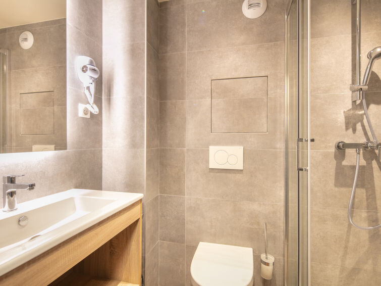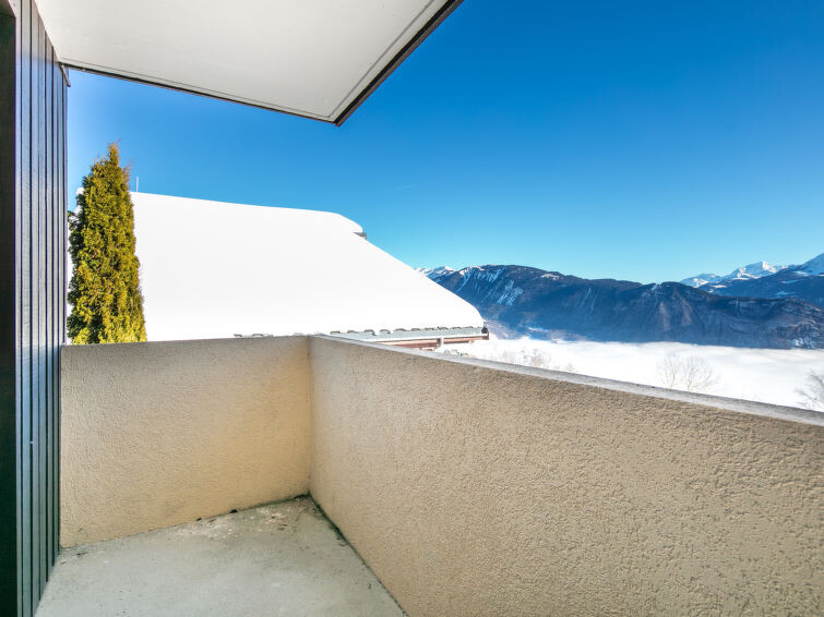Appartement 2-kamers 27 m2. Doelmatig ingericht: woon-/slaapkamer met 1 2-pers divanbed en TV (Flatscreen TV). 1 kamer met 1 2-pers bed. Kookhoek (oven, afwasmachine, 2 keramische glas kookplaten, broodrooster, waterkoker, magnetron, diepvriezer, elektrische koffiemachine, pads voor de koffiemachine (Nespresso) extra). Douche, aparte WC. Verwarming. Terras. Ligstoelen. Uitzicht op het dal. Ter beschikking: haardroger. Internet (Internet (WiFi), gratis). Parkeerplaats. Maximaal 1 huisdier/hond toegestaan. Rookmelders.