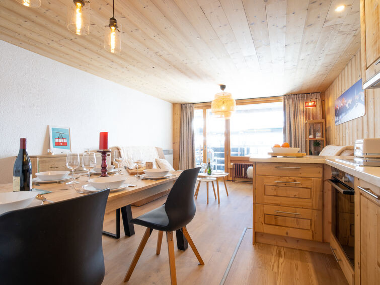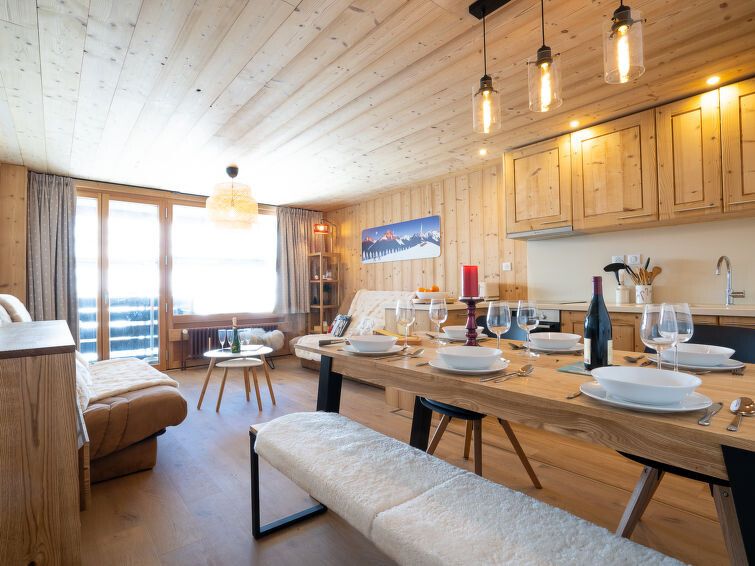 Appartement 3-kamers 50 m2 op de 3e verdieping. Ruim, luxueus en stijlvol ingericht: woon-/eetkamer. Uitgang naar het balkon, op het zuidwesten. 1 kamer met 1 2-pers bed (160 cm, lengte 200 cm), TV (Flatscreen TV). Cabine met 1 x 1 stapelbedden (90 cm, lengte 190 cm), 1 2-pers bed (120 cm, lengte 190 cm). Open keuken (oven, afwasmachine, 4 inductiekookplaten, broodrooster, waterkoker, magnetron, elektrische koffiemachine, pads voor de koffiemachine (Nespresso) extra). Badkamer, aparte WC. Parketvloeren. Balkonmeubilair. Zeer mooi panoramazicht op de bergen en de skipiste. Ter beschikking: wasmachine, strijkijzer, haardroger. Internet (WiFi, gratis). Niet rokers woning. Rookmelders. Aanbod door een particulier volgens art. 155, IV van CGI.