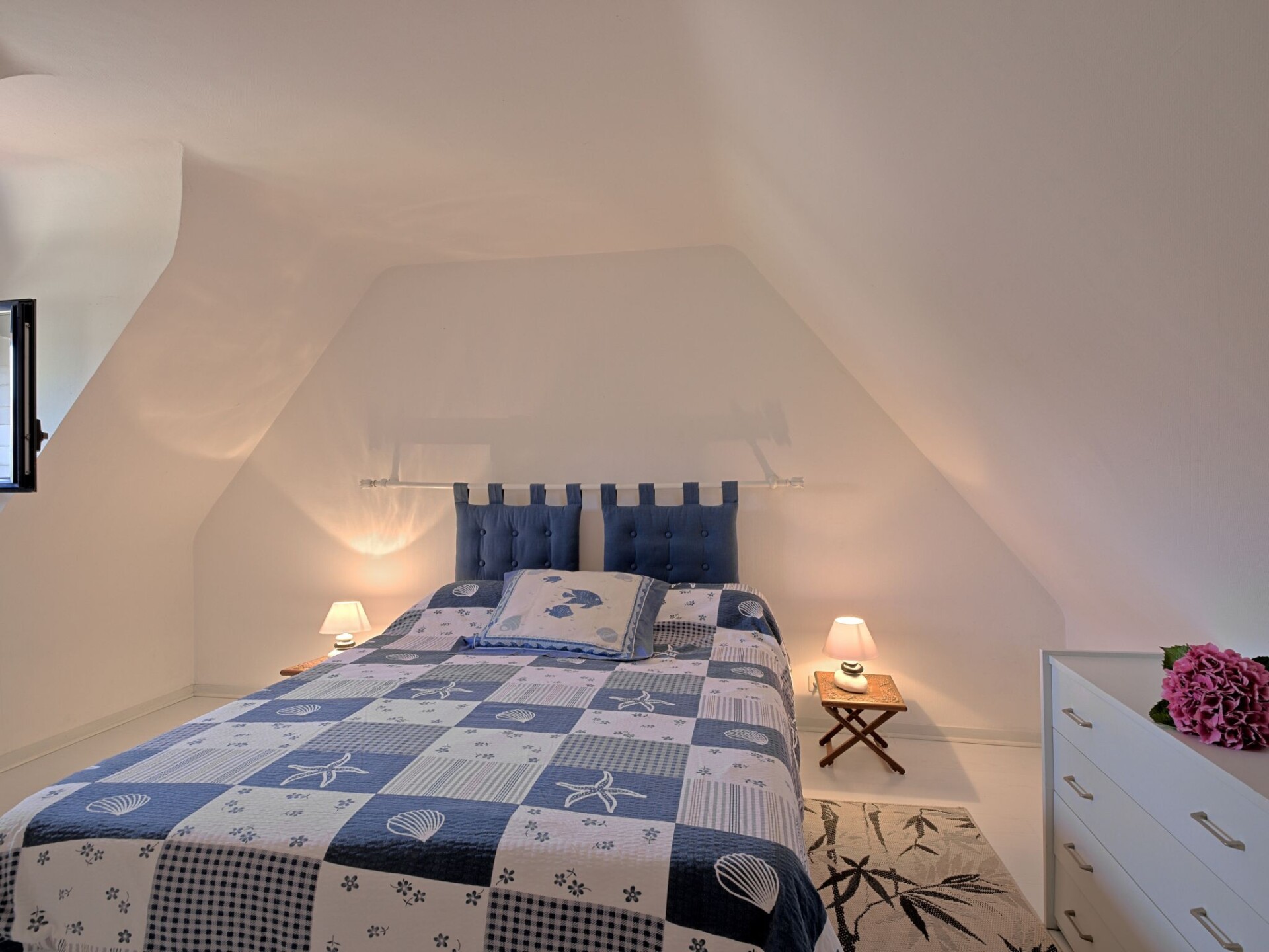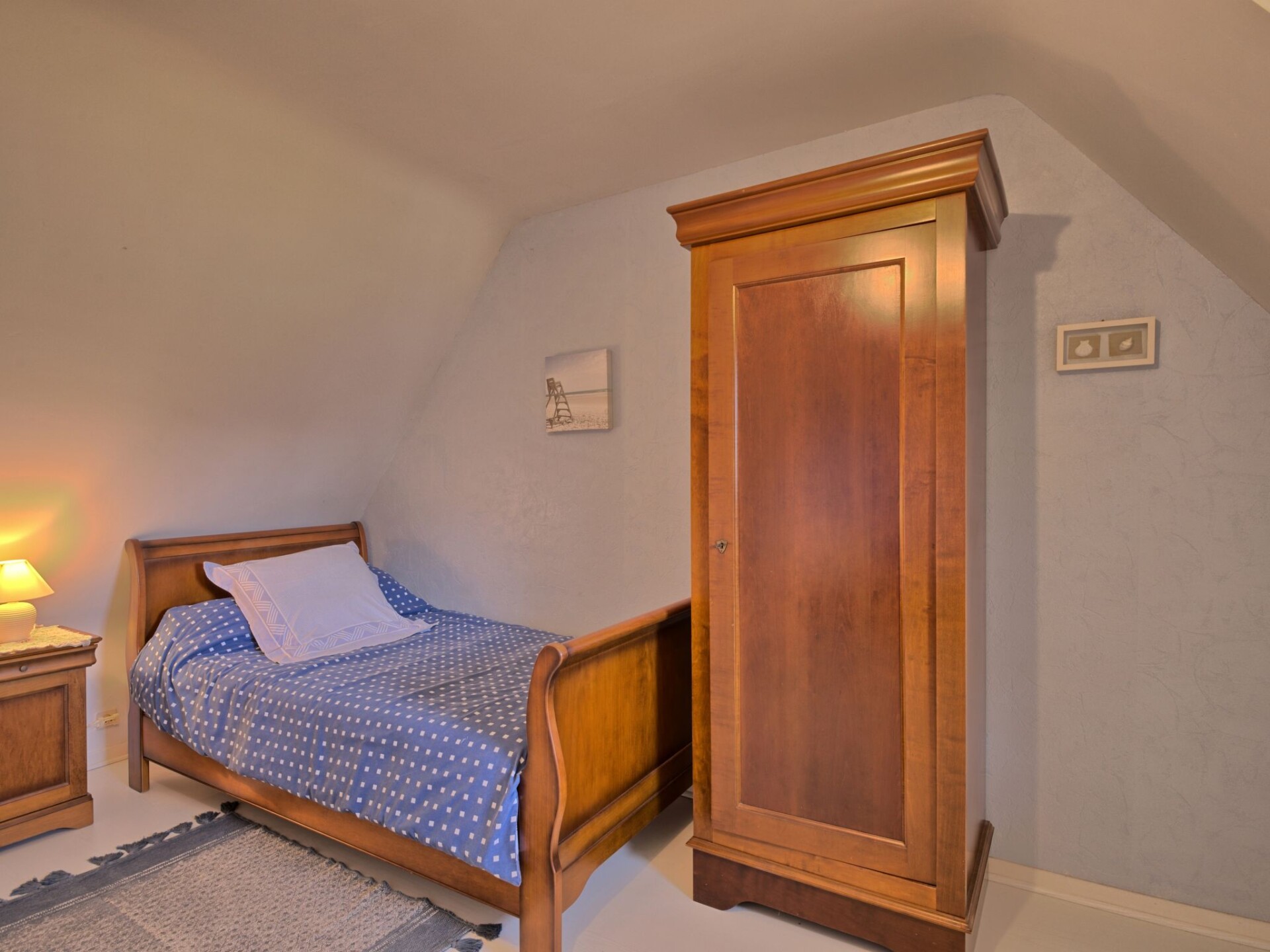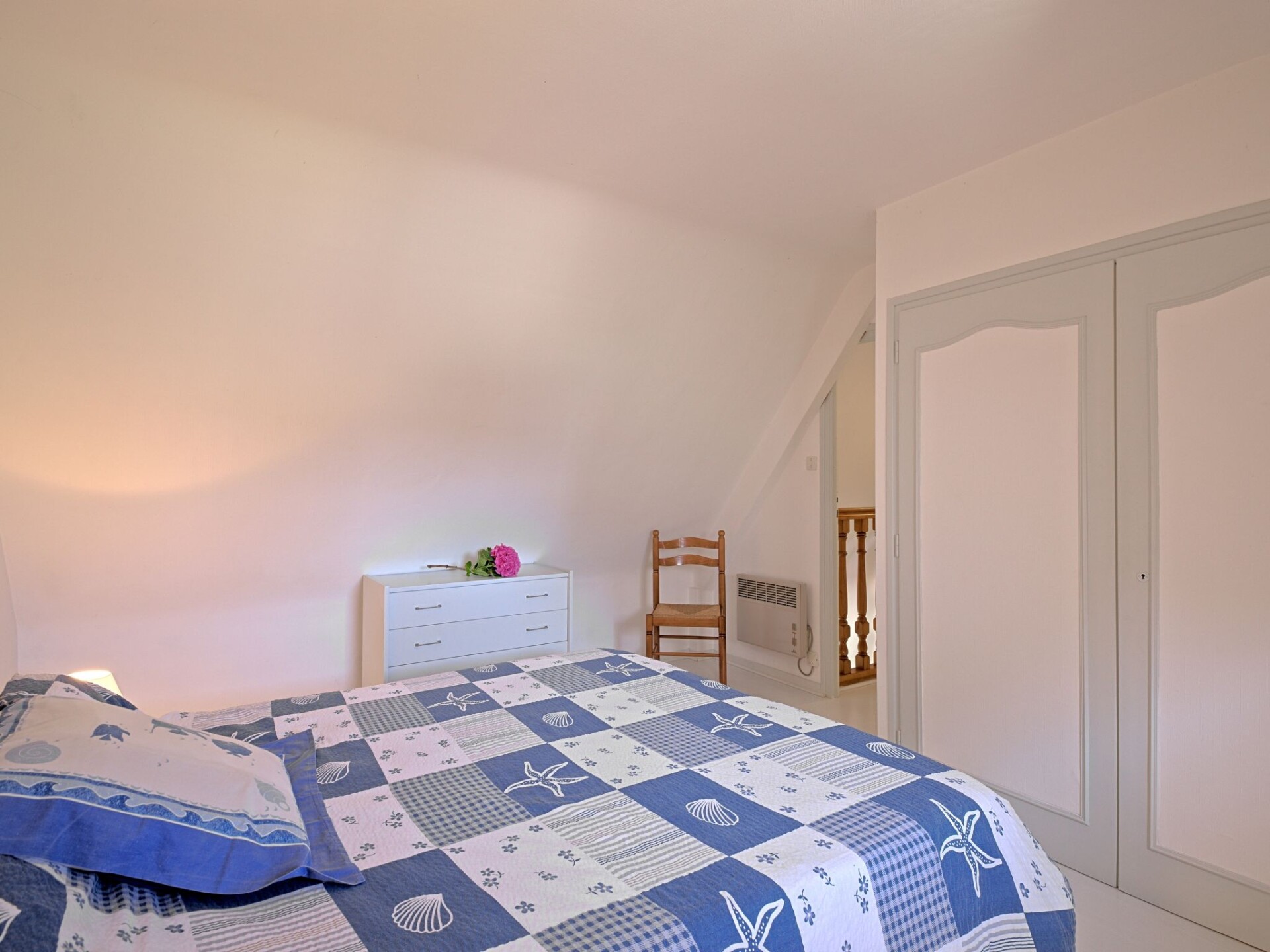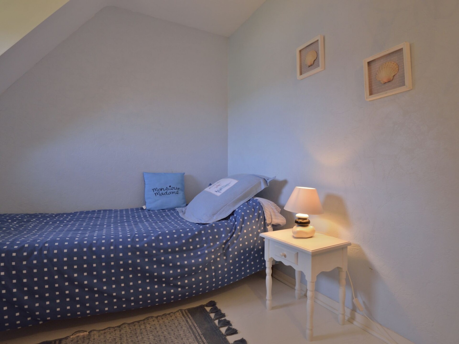 Huis 3-kamers 100 m2 op 2 verdiepingen. Mooi en gezellig ingericht: woon-/eetkamer 75 m2 met TV (Flatscreen TV). Uitgang naar het terras. Open keuken (oven, afwasmachine, 4 keramische glas kookplaten, broodrooster, waterkoker, magnetron, elektrische koffiemachine) met eettafel. Douche/WC. Bovenverdieping: 1 kamer met afgeschuinde daken met 1 2-pers bed (1 x 160 cm, lengte 190 cm). 1 kamer met afgeschuinde daken met 2 bedden (90 cm, lengte 190 cm). Elektrische verwarming. Terras 20 m2, op het zuiden gelegen. Terrasmeubelen, barbecue, ligstoelen (3). Ter beschikking: wasmachine, strijkijzer, kinderbed tot 2 jaar, haardroger. Internet (Internet (WiFi), gratis). Rookvrij huis. Rookmelders.