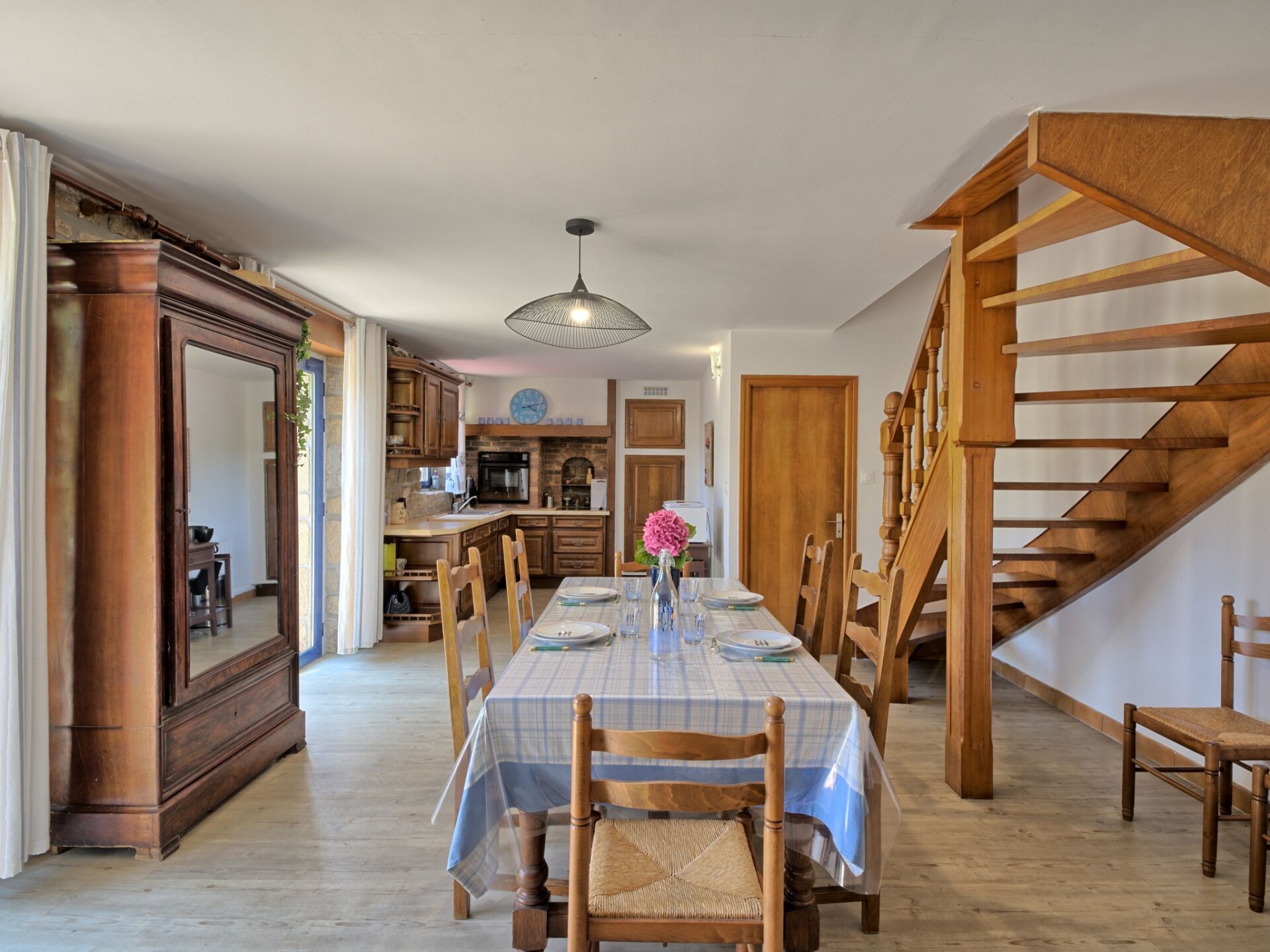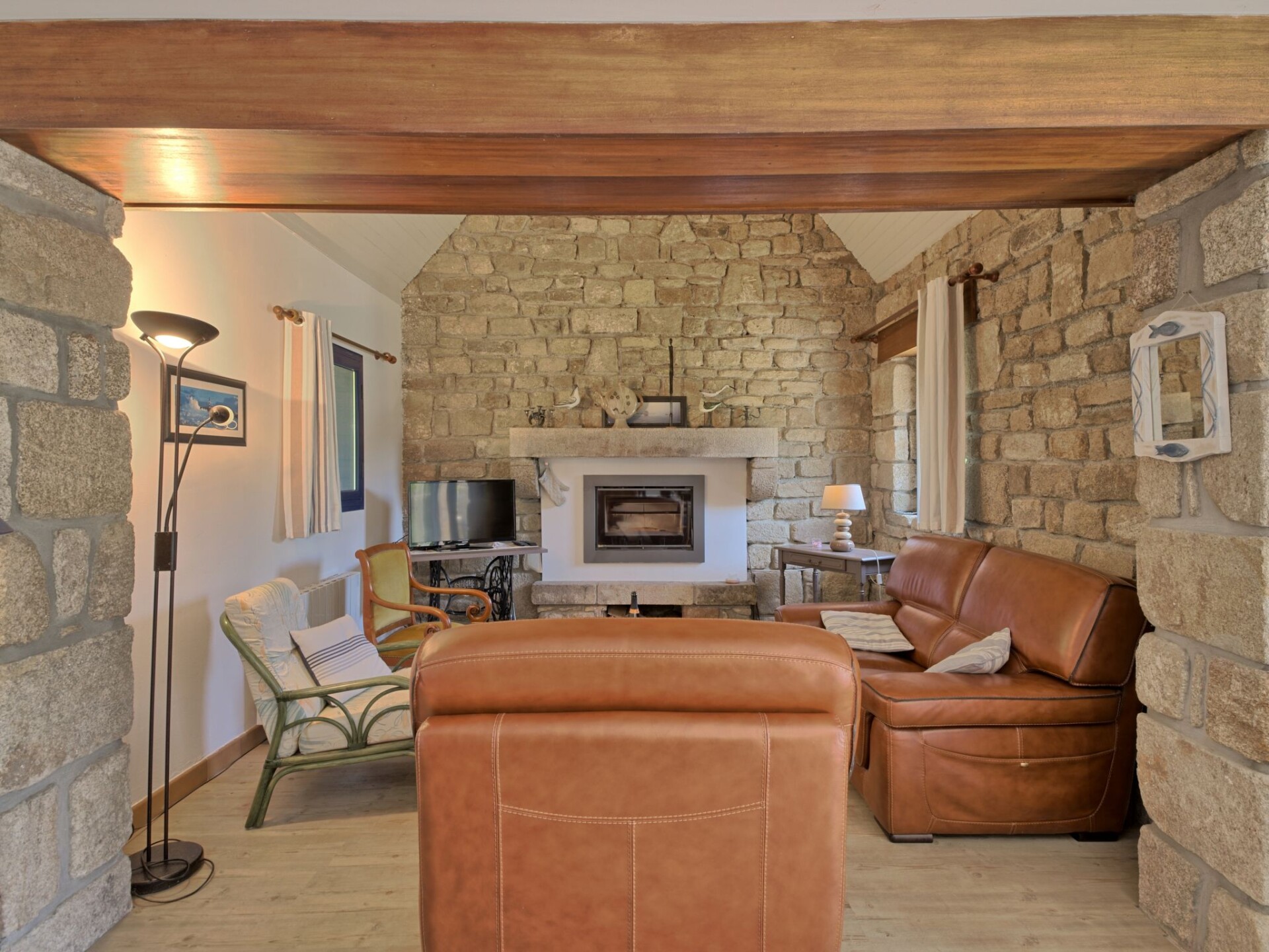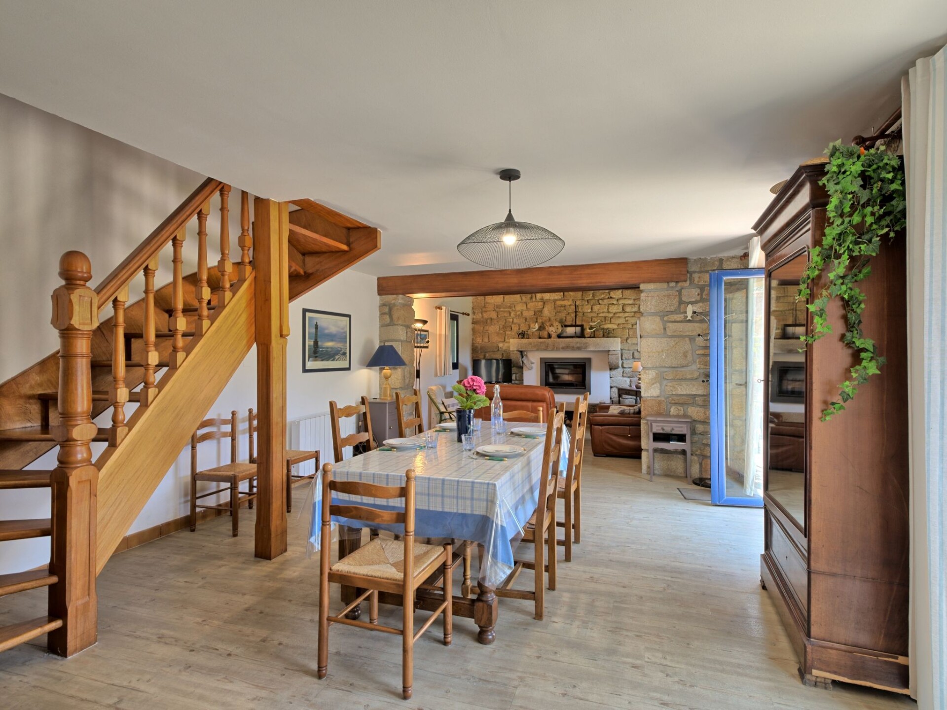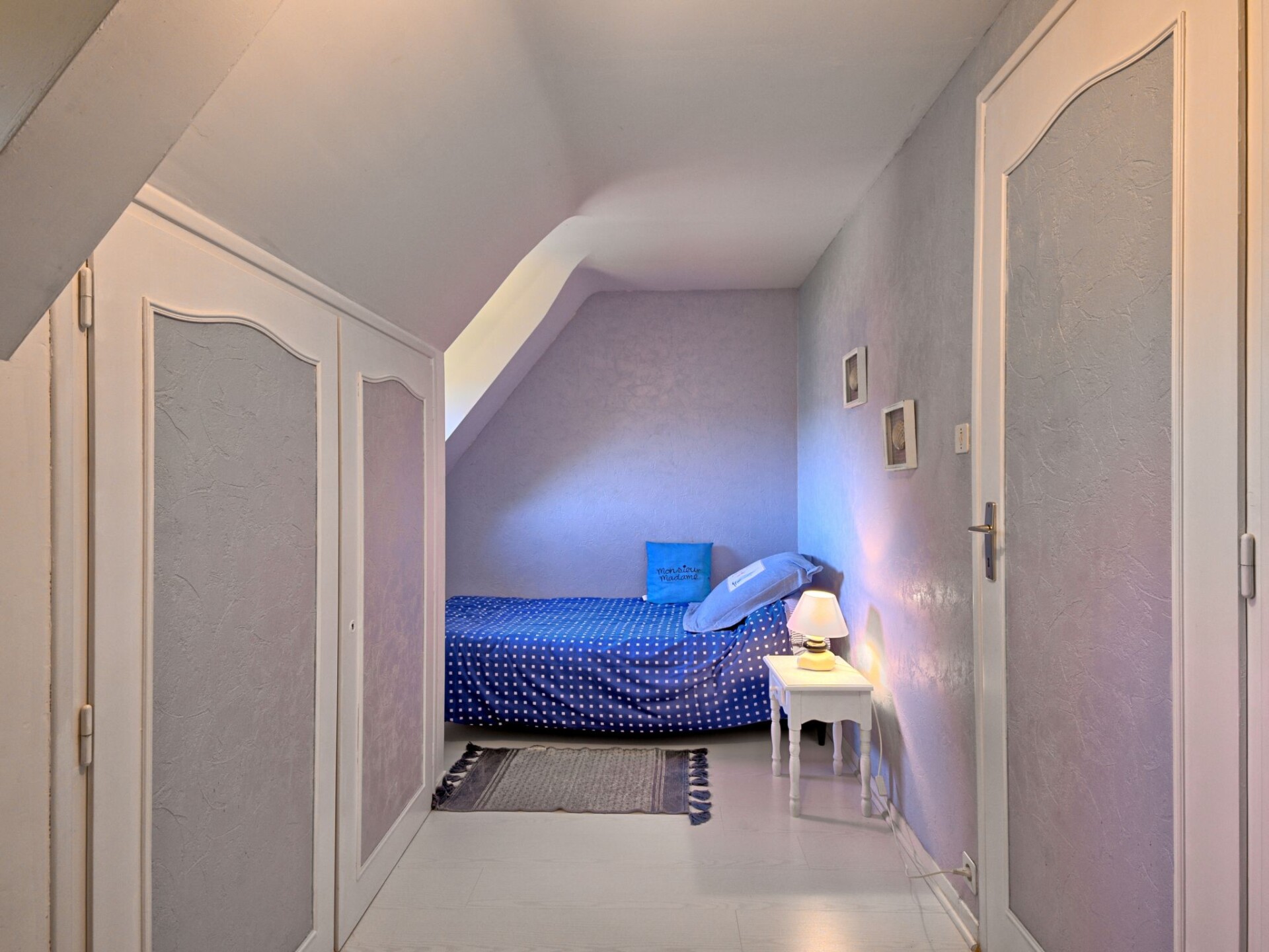 Huis 3-kamers 100 m2 op 2 verdiepingen. Mooi en gezellig ingericht: woon-/eetkamer 75 m2 met TV (Flatscreen TV). Uitgang naar het terras. Open keuken (oven, afwasmachine, 4 keramische glas kookplaten, broodrooster, waterkoker, magnetron, elektrische koffiemachine) met eettafel. Douche/WC. Bovenverdieping: 1 kamer met afgeschuinde daken met 1 2-pers bed (1 x 160 cm, lengte 190 cm). 1 kamer met afgeschuinde daken met 2 bedden (90 cm, lengte 190 cm). Elektrische verwarming. Terras 20 m2, op het zuiden gelegen. Terrasmeubelen, barbecue, ligstoelen (3). Ter beschikking: wasmachine, strijkijzer, kinderbed tot 2 jaar, haardroger. Internet (Internet (WiFi), gratis). Rookvrij huis. Rookmelders.