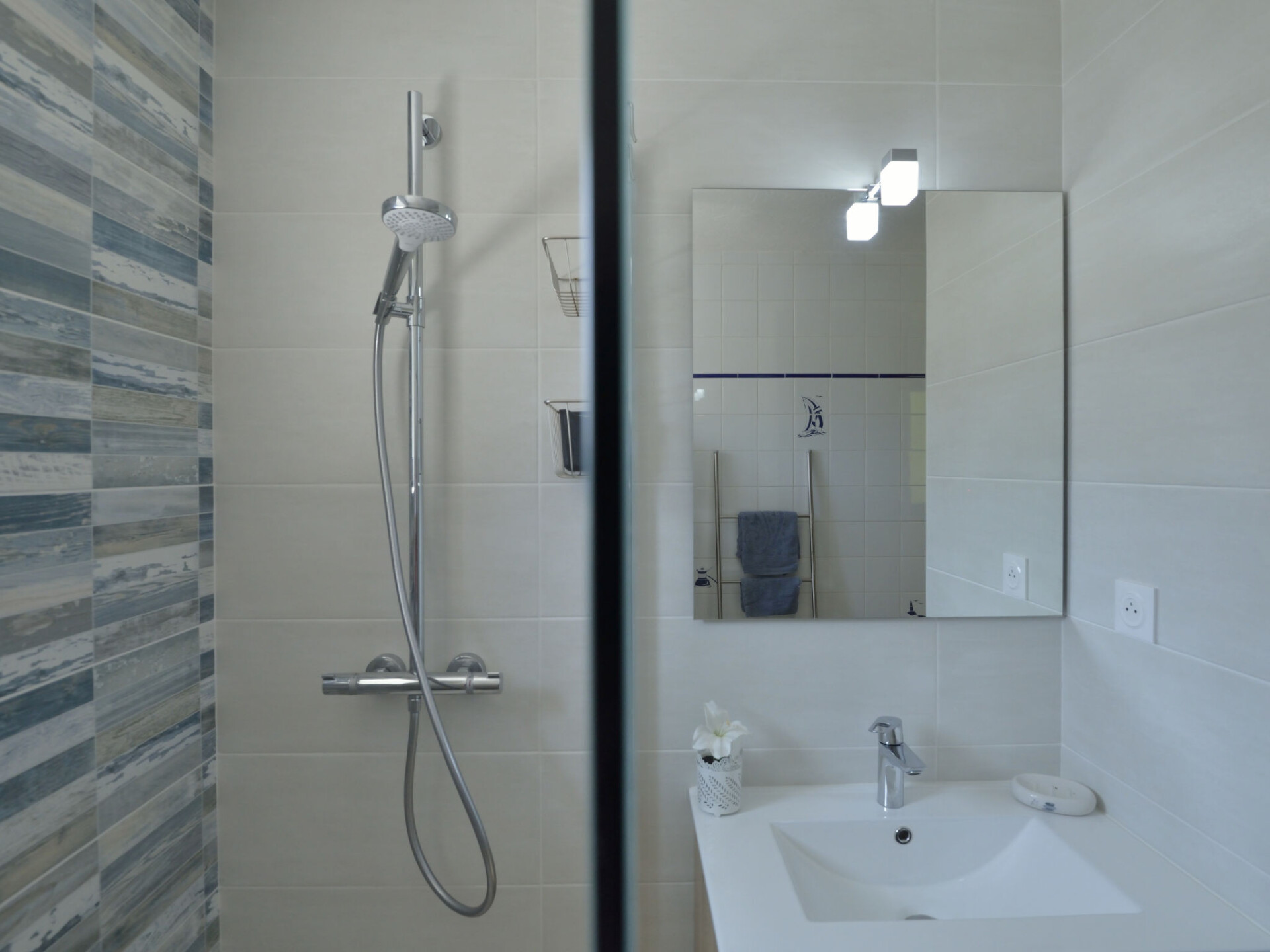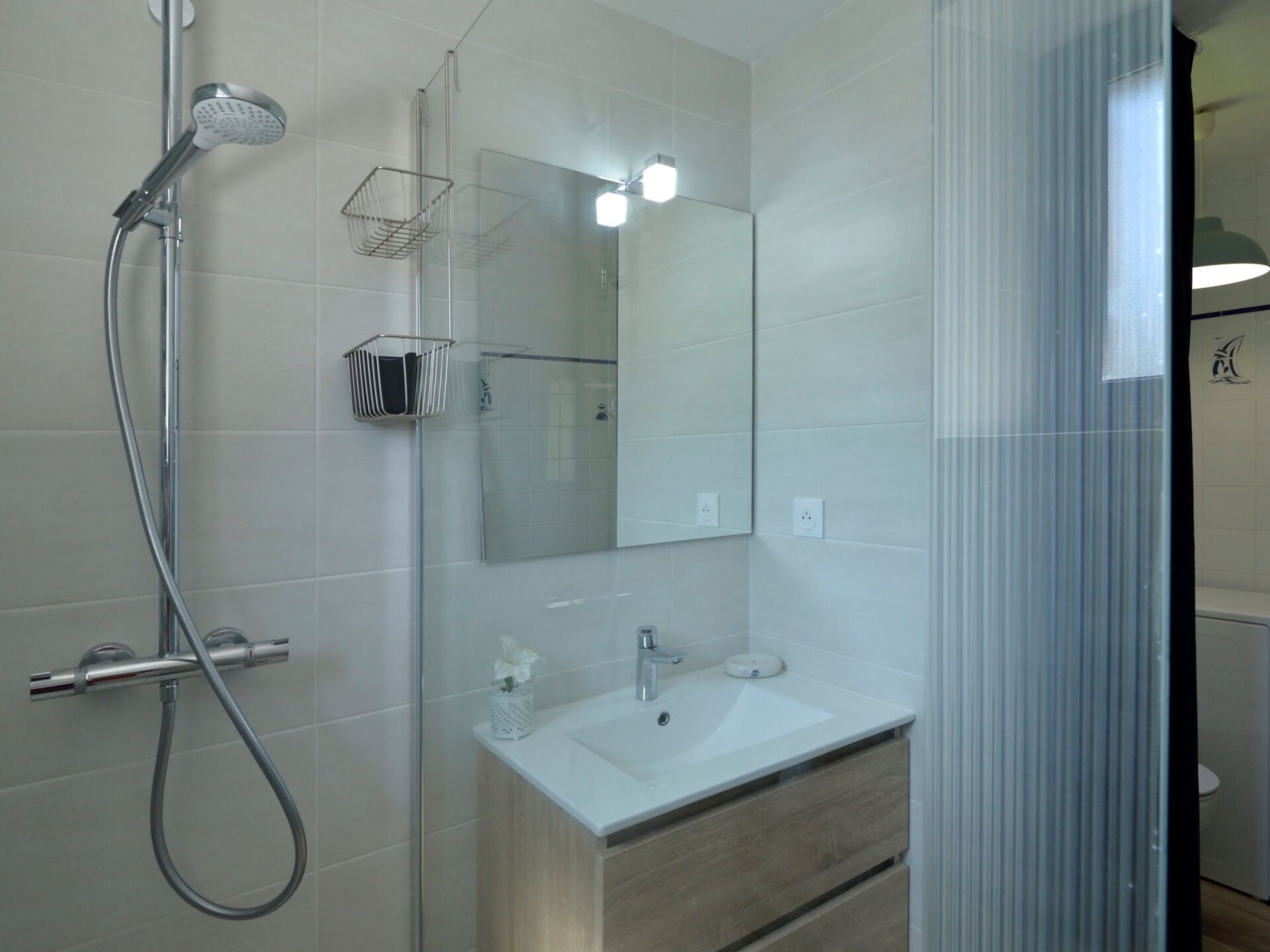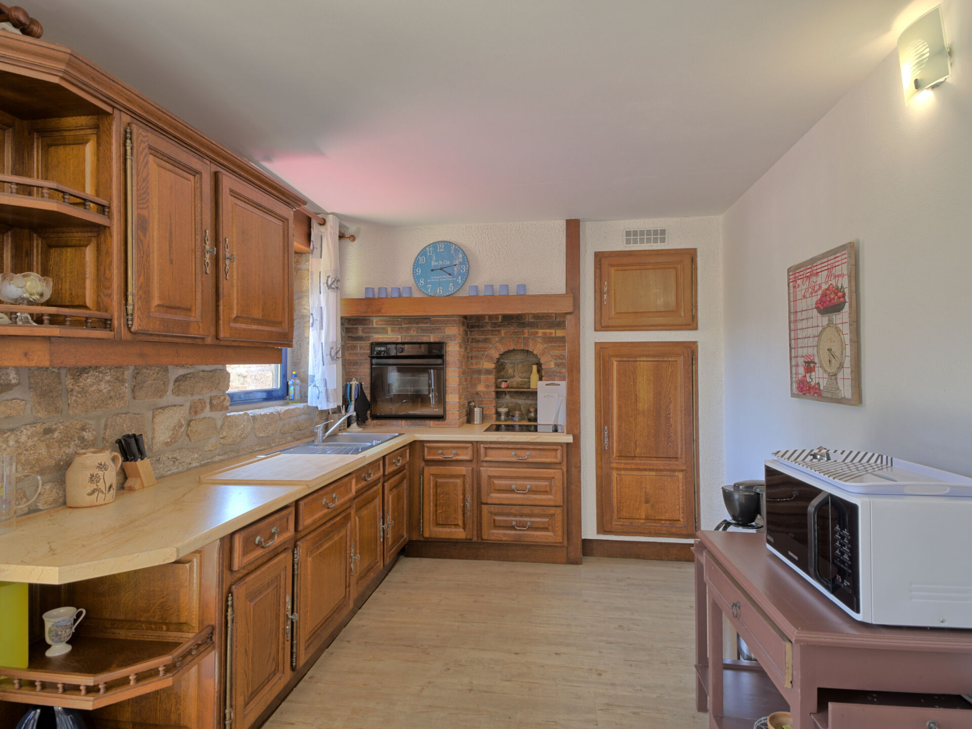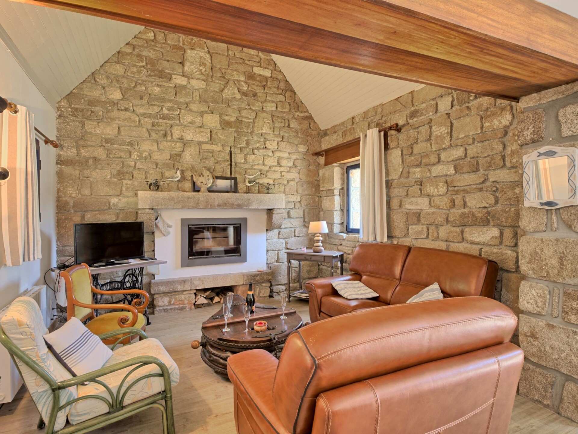 Huis 3-kamers 100 m2 op 2 verdiepingen. Mooi en gezellig ingericht: woon-/eetkamer 75 m2 met TV (Flatscreen TV). Uitgang naar het terras. Open keuken (oven, afwasmachine, 4 keramische glas kookplaten, broodrooster, waterkoker, magnetron, elektrische koffiemachine) met eettafel. Douche/WC. Bovenverdieping: 1 kamer met afgeschuinde daken met 1 2-pers bed (1 x 160 cm, lengte 190 cm). 1 kamer met afgeschuinde daken met 2 bedden (90 cm, lengte 190 cm). Elektrische verwarming. Terras 20 m2, op het zuiden gelegen. Terrasmeubelen, barbecue, ligstoelen (3). Ter beschikking: wasmachine, strijkijzer, kinderbed tot 2 jaar, haardroger. Internet (Internet (WiFi), gratis). Rookvrij huis. Rookmelders.