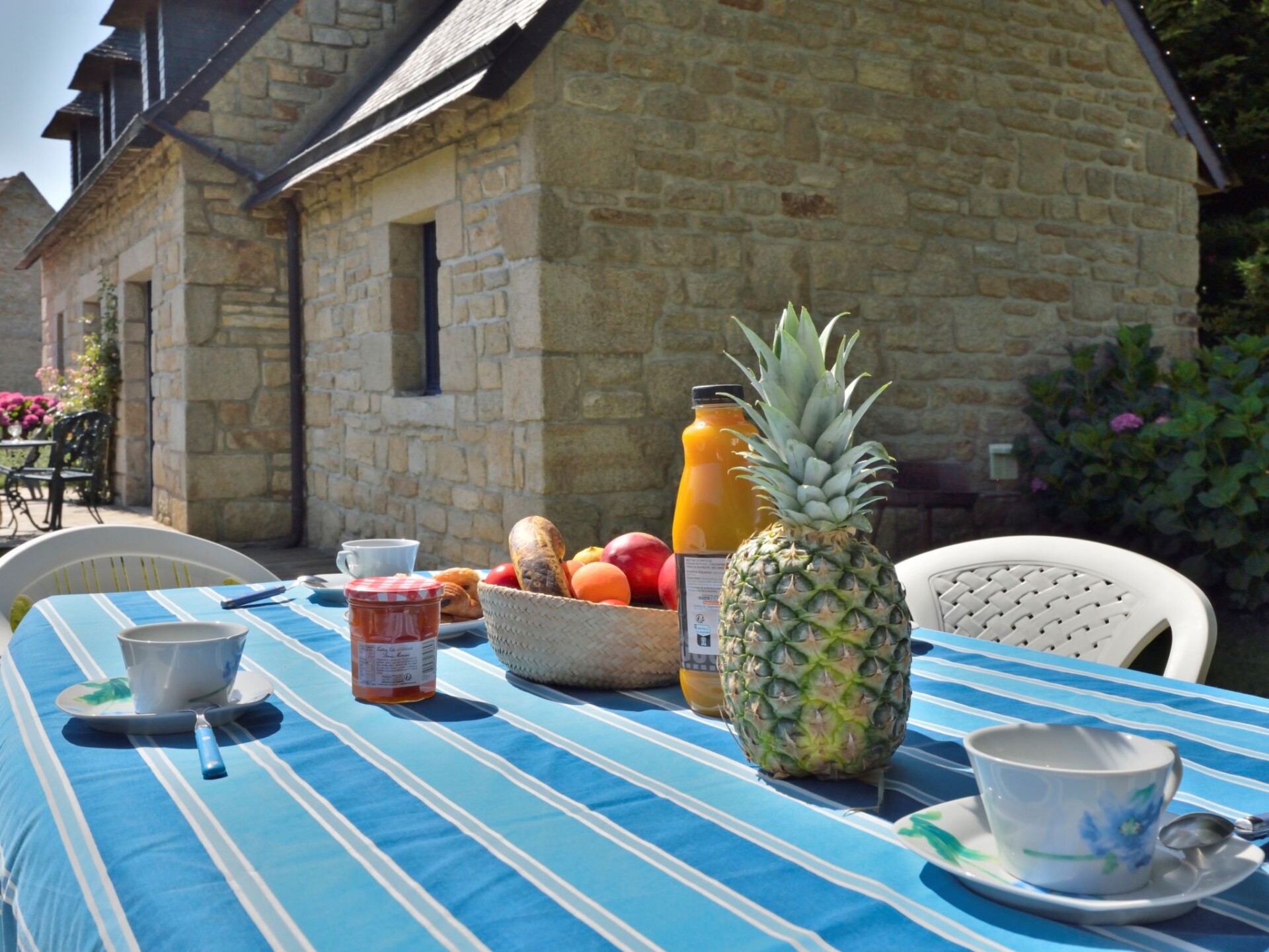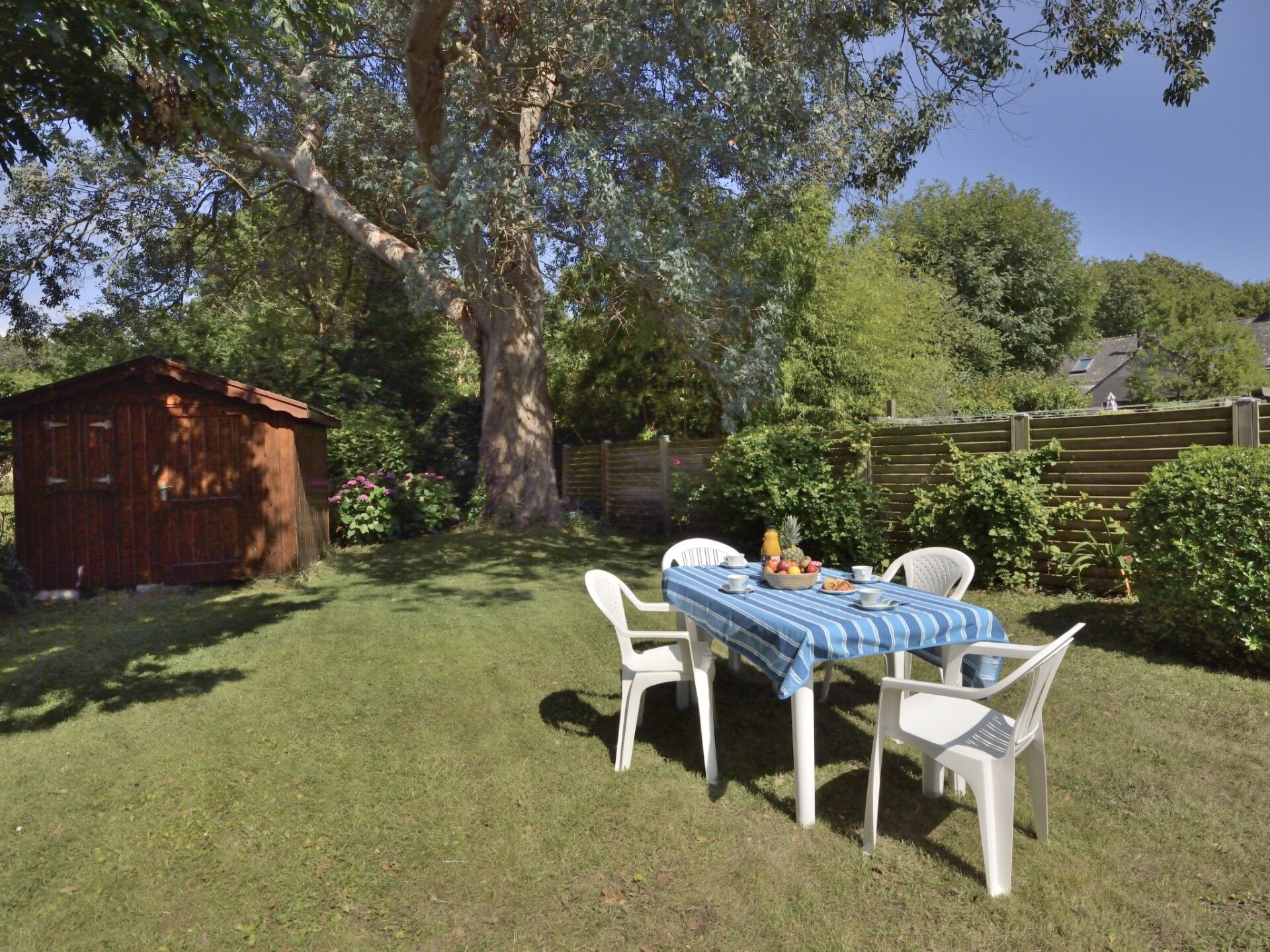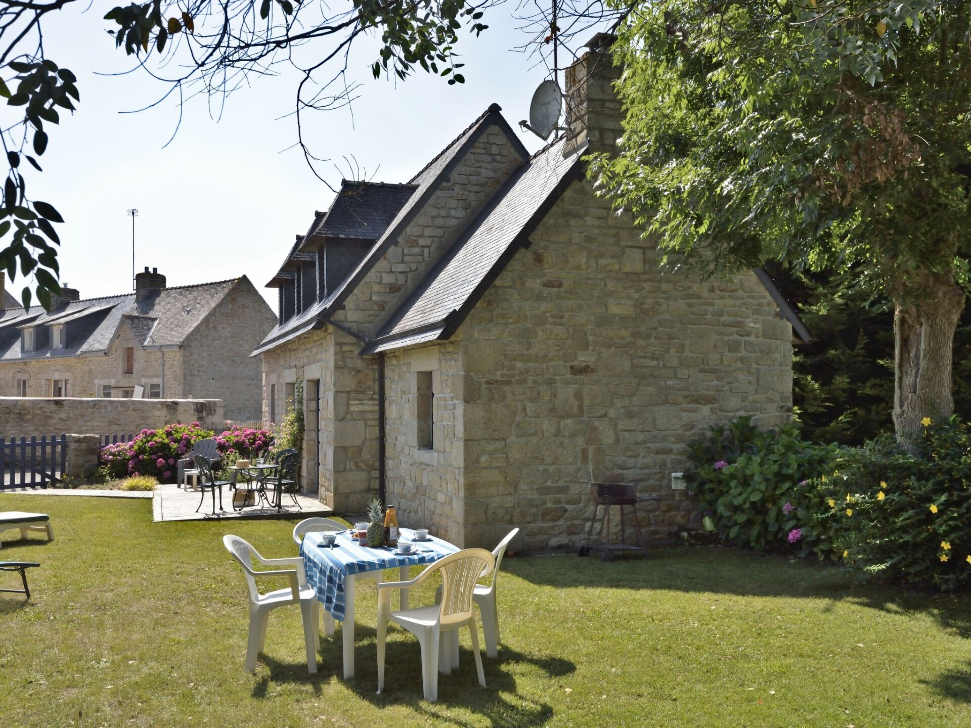 Eengezinswoning "St Adrien". In een gehucht, aan de rand van de plaats, 2 km van het centrum van Fort Bloqué, 1 km van zee, aan een doodlopende weg. Voor alleengebruik: tuin 350 m2 (omheind) met gazon en bloemen. In het huis: bergruimte voor fietsen. Openbare parkeerplaatsen in de straat. Winkel 1.5 km, levensmiddelenwinkel 1.5 km, restaurant 1.5 km, bushalte 6 km, zandstrand 1 km. Golfterrein (18 holes) 2 km, manege 2 km, wandelroutes, vanaf het huis, fietspad 400 m. Attracties in de buurt: Ploemeur 6 km, Pont Aven 37 km, Carnac 52 km, Concarneau 58 km, Quimper 67 km, Zoo Pont Scorff, Lorient 14 km. Auto noodzakelijk.
