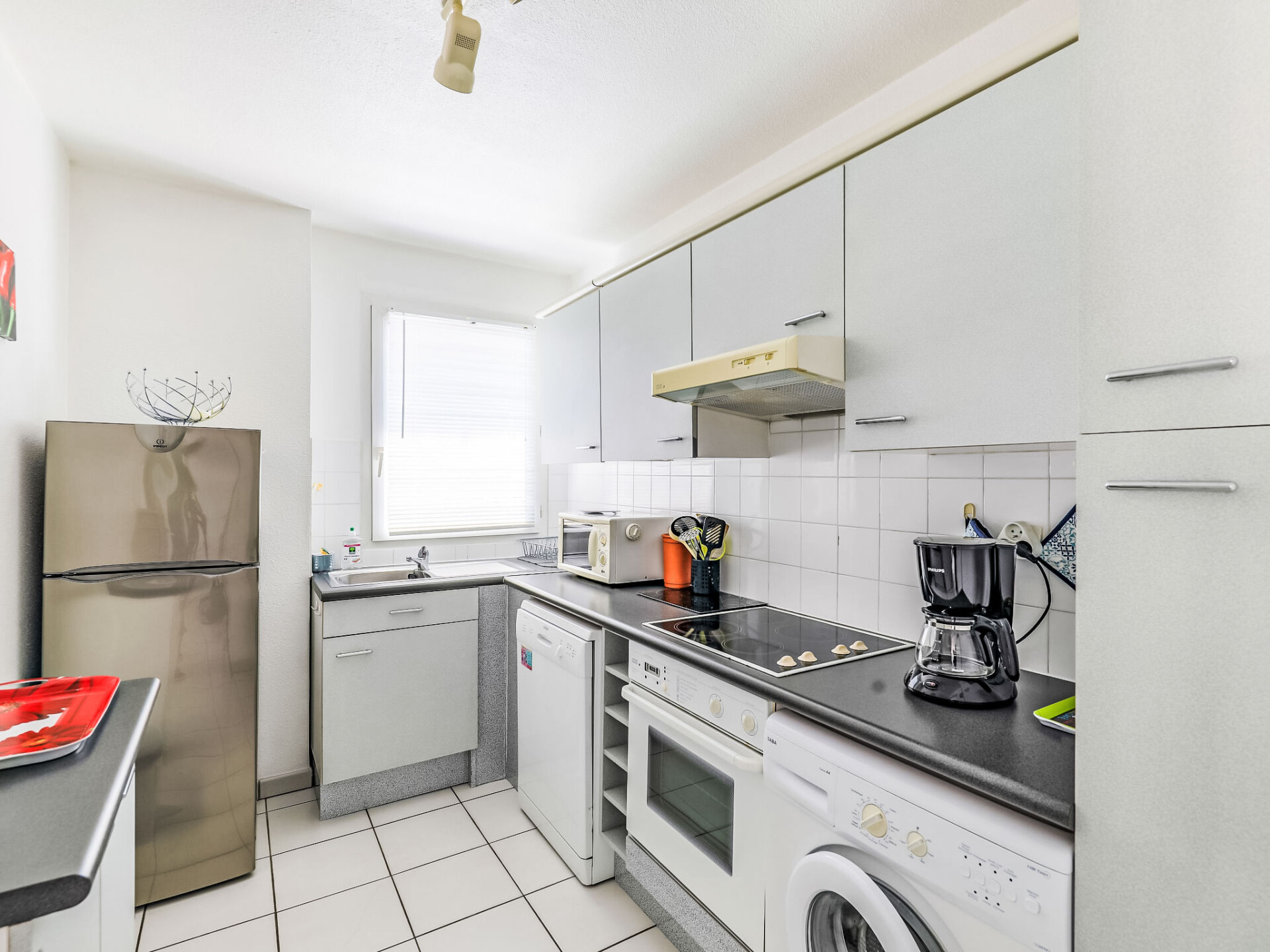 Appartement 2-kamers 48 m2 op de 3e verdieping. Comfortabel ingericht: woon-/eetkamer met 1 2-pers divanbed (1 x 140 cm, lengte 190 cm), eettafel, TV, elektrische verwarming en air-conditioning. Uitgang naar het terras. 1 kamer met 1 2-pers bed (1 x 140 cm, lengte 190 cm), air-conditioning. Keuken (oven, afwasmachine, 3 keramische glas kookplaten, broodrooster, waterkoker, magnetron, diepvriezer, elektrische koffiemachine, pads voor de koffiemachine (SENSEO) extra). Douche, aparte WC. Terras. Terrasmeubelen. Mooi uitzicht op zee en de haven. Ter beschikking: wasmachine, strijkijzer, haardroger. Internet (Internet (WiFi), extra). Garage nr. 60, hoogte 185 cm, breedte 240 cm. Niet rokers woning. TV alleen FR. Rookmelders.
