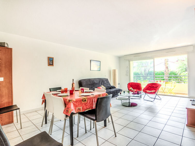 Appartement 3-kamers 72 m2 op de 1e verdieping. Ruim, doelmatig ingericht: hal met elektrische verwarming. Woon-/eetkamer 28 m2 met 1 2-pers divanbed (1 x 140 cm, lengte 190 cm), TV (Flatscreen TV), air-conditioning en elektrische rolluiken. Uitgang naar het terras. 2 kamers, elke kamer heeft 1 2-pers bed (1 x 140 cm, lengte 190 cm), air-conditioning. Open keuken (3-pits kookplaat, oven, afwasmachine, broodrooster, waterkoker, magnetron, diepvriezer, elektrische koffiemachine). Badkamer, aparte WC. Terras. Terrasmeubelen. Ter beschikking: wasmachine, strijkijzer, haardroger. Internet (Internet (WiFi), gratis). Garage nr. 2, hoogte 180 cm, breedte 230 cm. Niet rokers woning. Rookmelders.