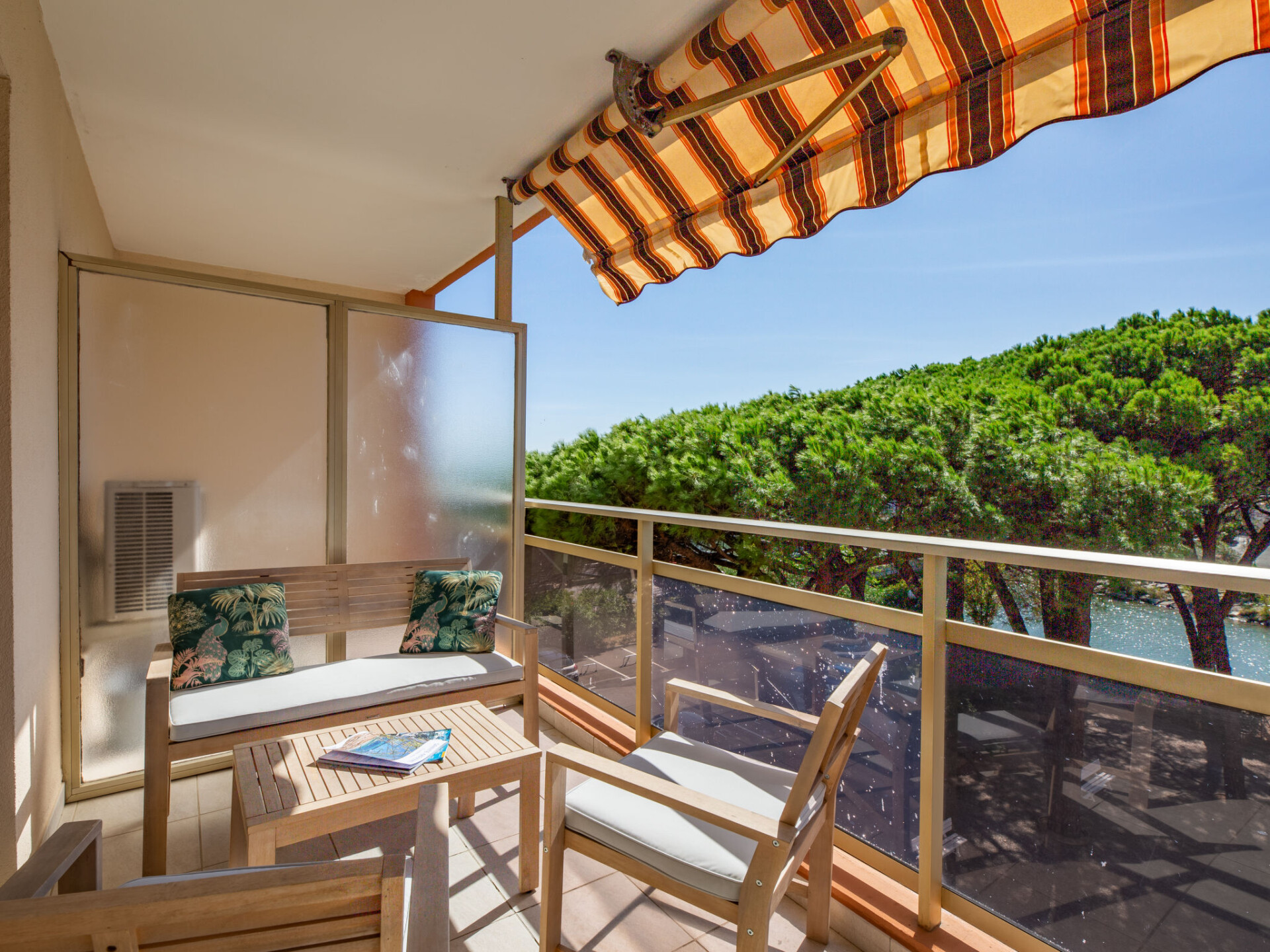 Studio 1-kamer 34 m2 op de 3e verdieping, op het westen gelegen. Ruim, comfortabel en mooi ingericht: hal met aparte WC. Woon-/slaapkamer met 1 2-pers divanbed (160 cm, lengte 200 cm), TV (Flatscreen TV). Uitgang naar het balkon. Cabine met 1 2-pers bed (140 cm, lengte 190 cm). Open keuken (afwasmachine, 3 inductiekookplaten, broodrooster, waterkoker, diepvriezer, elektrische koffiemachine, combimagnetron). Badkamer. Air-conditioning, heteluchtverwarming. Groot balkon 12 m2, op het westen gelegen. Balkonmeubilair. Uitzicht op het zwembad en de rivier. Ter beschikking: wasmachine. Garage nr. 136, hoogte 205 cm, breedte 215 cm. Niet rokers woning. Rookmelders. Aanbod door een particulier volgens art. 155, IV van CGI. 83115003806HT