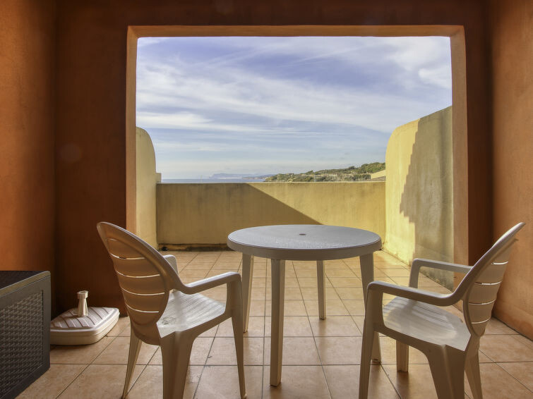 Appartement 3-kamers 45 m2 op 2 verdiepingen op de 2e verdieping. Doelmatig en mooi ingericht: woon-/eetkamer met 2 bedden (80 cm, lengte 190 cm), TV (Flatscreen TV). Uitgang naar het terras. Cabine met 1 x 2 stapelbedden (80 cm, lengte 190 cm). Kookhoek (afwasmachine, 4 keramische glas kookplaten, broodrooster, waterkoker, diepvriezer, elektrische koffiemachine, combimagnetron). Douche/WC. Bovenverdieping: 1 kamer met 1 2-pers bed (140 cm, lengte 190 cm). Uitgang naar het balkon. Bad/WC. Elektrische verwarming. Balkon 12 m2, op het westen gelegen, terras 7 m2, overdekt, op het westen gelegen. Terrasmeubelen. Mooi uitzicht op zee. Ter beschikking: wasmachine. Internet (WiFi, extra). Parkeerplaats nr. 549 (niveau 2) (overdekt), hoogte 190 cm, breedte 249 cm. Niet rokers woning. Maximaal 1 huisdier/hond toegestaan. TV alleen FR. Rookmelders, geen lift. In plaats van een afgesloten slaapkamer bevinden sommige slaapgedeeltes zich in een open ruimte (galerij, nis, etc.).