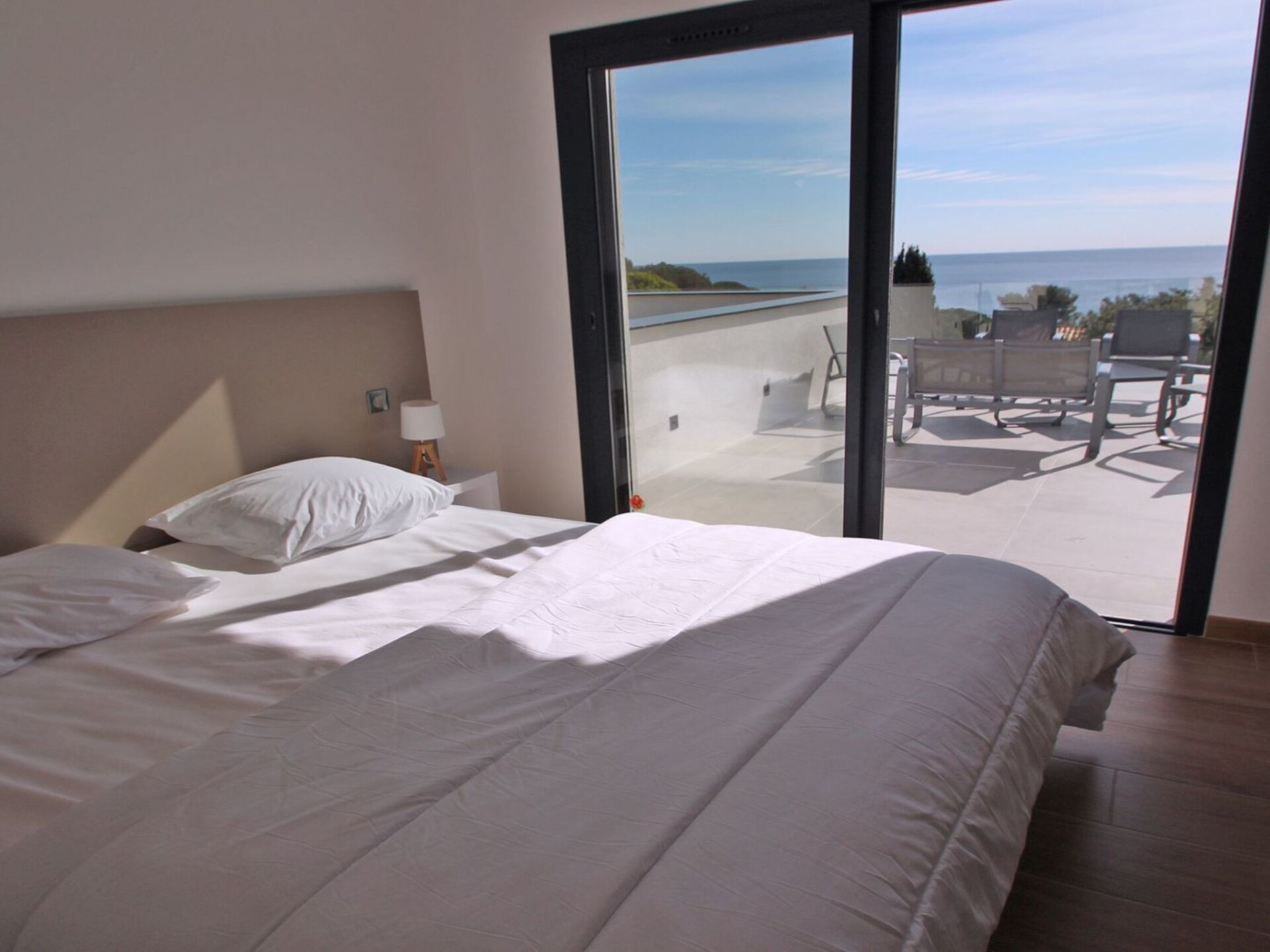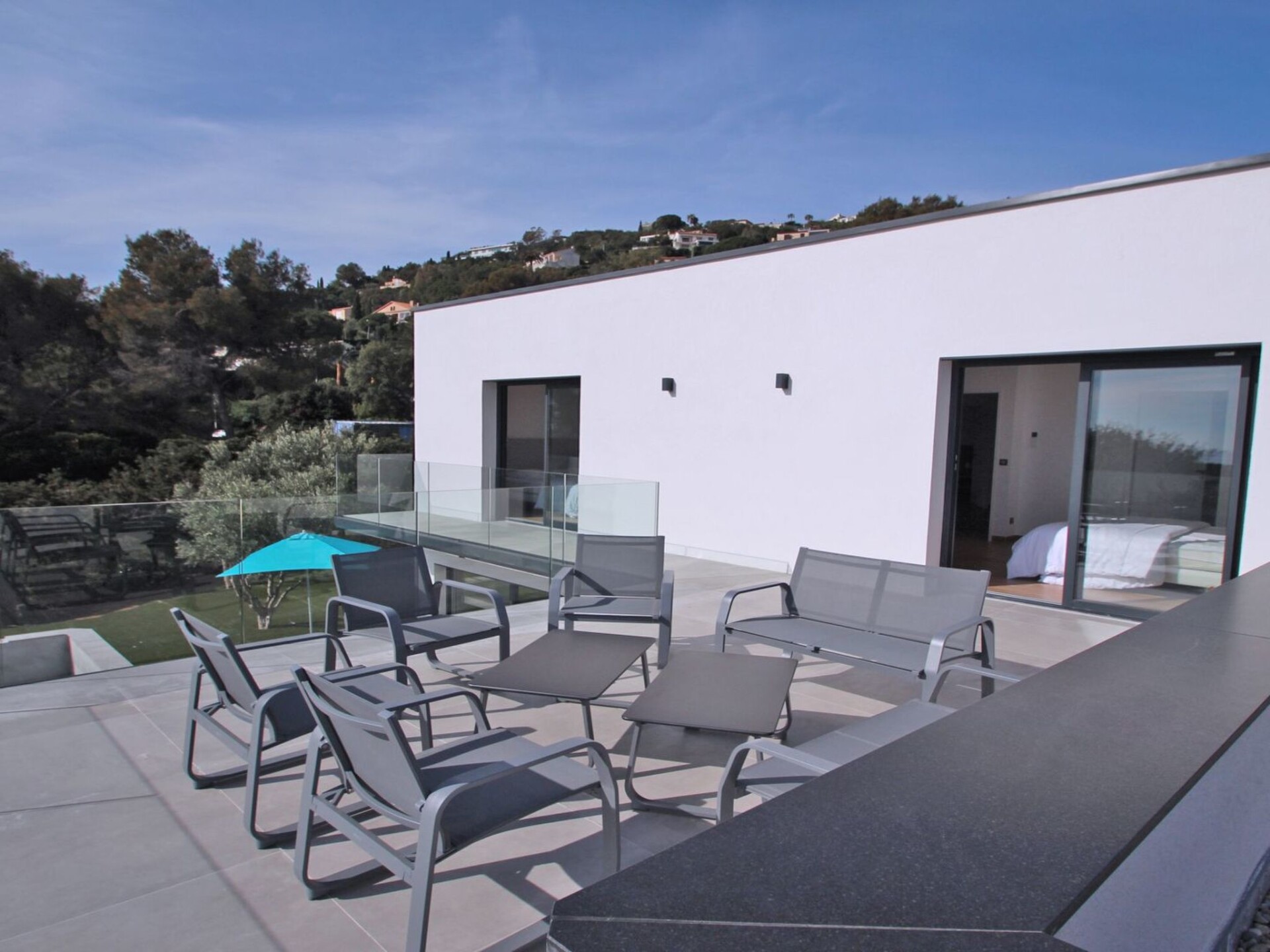 This magnificent contemporary-style villa, built in 2020, has 5 bedrooms and can accommodate up to 10 people. Located in Les Issambres, Villa Chantoiseau is tastefully decorated and very well equipped, making it ideal for an unforgettable stay.Luxury contemporary villa - Sleeps 10 - Private pool - Sea view - Air conditioning - WiFi - Near the beach - Les Issambres6-room villa of approx. 280m² set in 1500m² of wooded grounds - Villa Chantoiseau On 2 levels - sleeps up to 10 peopleGround floor:- Entrance with chest of drawers and cloakroom, guest WC- Spacious living room with lounge area featuring sofas and television, dining table and chairs, access to terrace 1 and garden- Top-of-the-range open-plan kitchen: 4-burner hob with integrated extractor hood, fridge, freezer, crisp oven (rapid cooking function), microwave, wine cellar, dishwasher, Nespresso coffee machine, coffee maker, toaster, kettle, grill, various small appliances, crockery and kitchen utensils- Utility room with additional fridge, washing machine, tumble dryer, drying rack, cleaning equipment.- Bedroom 1 - Sea view: master suite with 160cm double bed, wall-mounted television, dressing room, access to terrace 1 and swimming pool, shower room with WCFirst floor:- Landing with chest of drawers and wardrobe- Bedroom 2 - Sea view: Double bed 160cm, television, access to terrace 2 en suite shower room with WC- Bedroom 3 - Sea view: Double bed 160cm, television, access to terrace 2 en suite shower room with WC- Bedroom 4: Single beds 2x80cm (or 160cm) en suite shower room with WC- Bedroom 5 : Single beds 2x80cm (or 160cm)Outside areas :- Terrace 1 (ground floor) 120m² of which 30m² covered: dining furniture, sun loungers, Weber gas barbecue, parasols - Private swimming pool 9m x 4.5m with security alarm (heating available at extra cost, see conditions)- Private garden / 800m² plot with Mediterranean plants, some of which are planted with artificial turf, wooden playhouse for children- Terrace 2 (upstairs) 40m²: garden furniture with sofas and armchairs, reading/games area, ideal for contemplating the sea view- Stairs linking the outside terracesMiscellaneous :- Security in all rooms (living room + bedrooms)- Superb sea views- Beach within walking distance- WiFi- Board games and table tennis- Possibility of parking several vehicles in front of the house, in the courtyard or in the garage- Cot and mattress available- Pets not allowed*** Pool heating only available from June to September, weather permitting. We reserve the right to refuse to heat the swimming pool at any time prior to arrival if we consider that the weather conditions do not allow it. All cancellations must be requested at least 15 days prior to arrival, failing which the service will be payable in full. Any last-minute request (less than 7 days before arrival) will incur an additional charge of fifty euros for unforeseen travel by the professional. Please contact us for further information.Reception and handover times :Monday to Friday between 3pm and 6pm maximum.Saturdays (July - August) between 4pm and 6pm maximum.Sundays and public holidays (except Saturdays): independent arrival from 3pm (key box, details given after booking).If you wish to arrive outside these times, please enquire before booking.Services included:- End-of-stay cleaning- Disposable mattress and pillow protectors- Kitchen towels (not provided during the COVID period)- Bathroom mats (not supplied during the COVID period)House rules :- No parties or festive events- No smoking insideDistances:- City centre: 2500m- Beach: 300m- Shops: 2500m. 83107000562IY