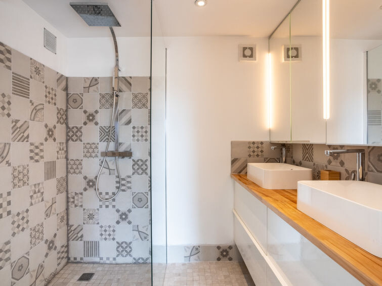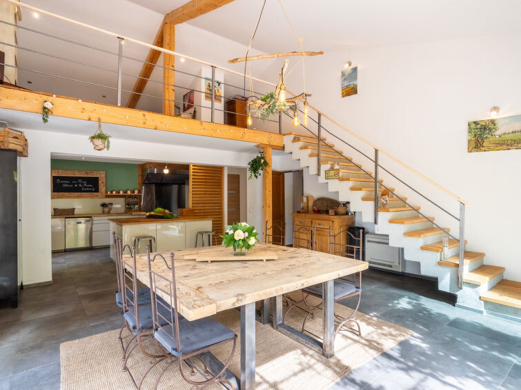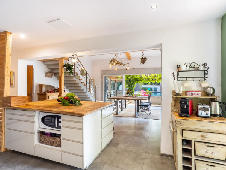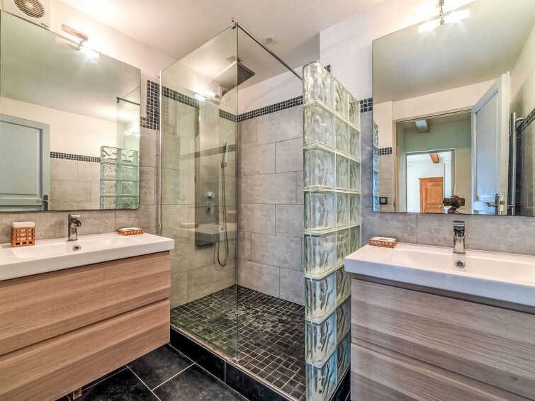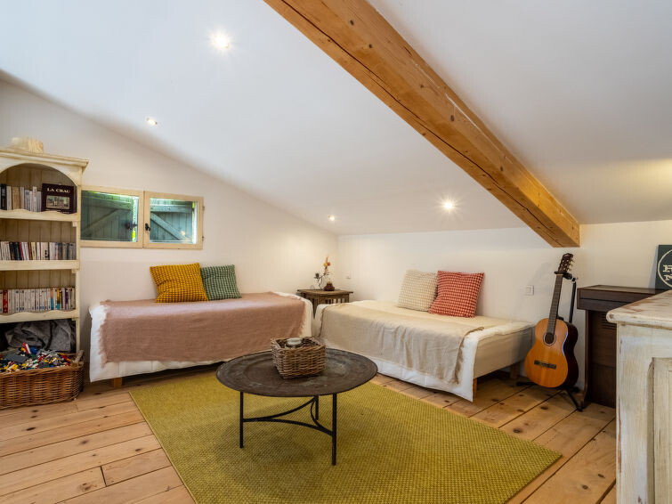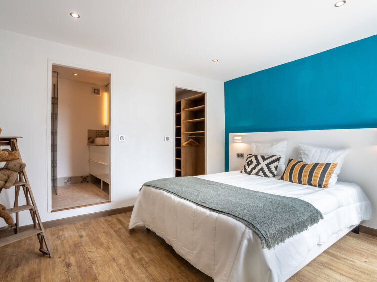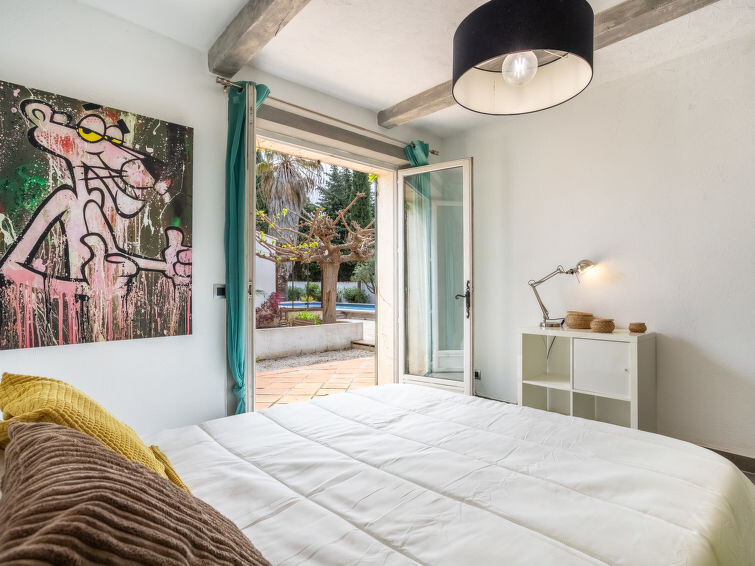 Villa 5-kamers 150 m2. Mooi ingericht: open woon-/eetkamer met TV (Flatscreen TV), air-conditioning. Uitgang naar de tuin, naar het terras, naar het zwembad. 1 kamer met 1 2-pers bed (160 cm, lengte 190 cm), douche en dubbele wastafels. Uitgang naar de tuin, naar het terras. 1 kamer met 1 2-pers bed (160 cm, lengte 190 cm). 1 kamer met 1 2-pers bed (140 cm, lengte 190 cm). Open salon met TV (Flatscreen TV) met aparte WC. Groot, open keuken (4-pits kookplaat, afwasmachine, broodrooster, waterkoker, magnetron, diepvriezer, elektrische koffiemachine) met aparte WC. Douche, dubbele wastafels. Elektrische verwarming. Bovenverdieping: open woon-/slaapkamer met afgeschuinde daken met 2 bedden (90 cm, lengte 190 cm). Groot tuin. Terrasmeubelen, ligstoelen. Uitzicht op het zwembad en de tuin. Ter beschikking: wasmachine, strijkijzer, haardroger. Internet (Internet (WiFi), gratis). TV alleen FR. Rookmelders. Aanbod door een particulier volgens art. 155, IV van CGI.