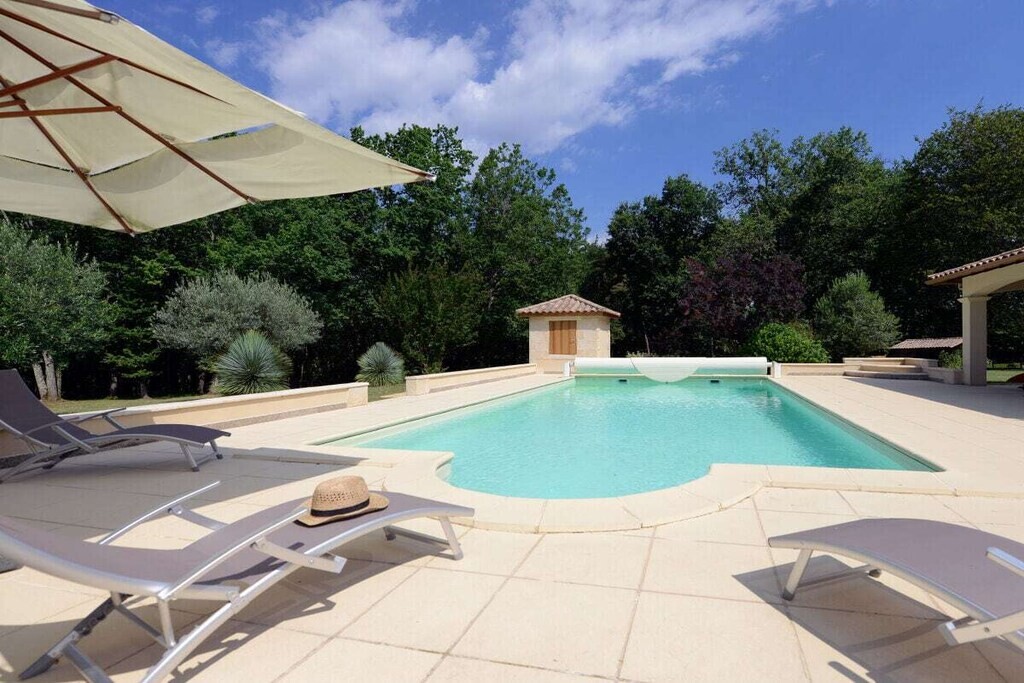 Deze villa ligt op een rustig landgoed van 22.000 m², op slechts enkele minuten van het charmante Bastidedorp Beaumont-du-Périgord in de Dordognevallei. Het pand beschikt over een prachtig gerenoveerd 150 jaar oud bijgebouw, dat optioneel geboekt kan worden, met een snookertafel van toernooikwaliteit, een kleine doucheruimte, een oude open haard, een tweede keuken en airconditioning. Het beschikt ook over een privéterras van 20 m² om te ontspannen.