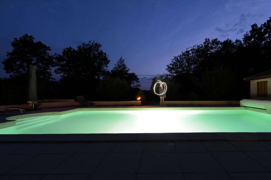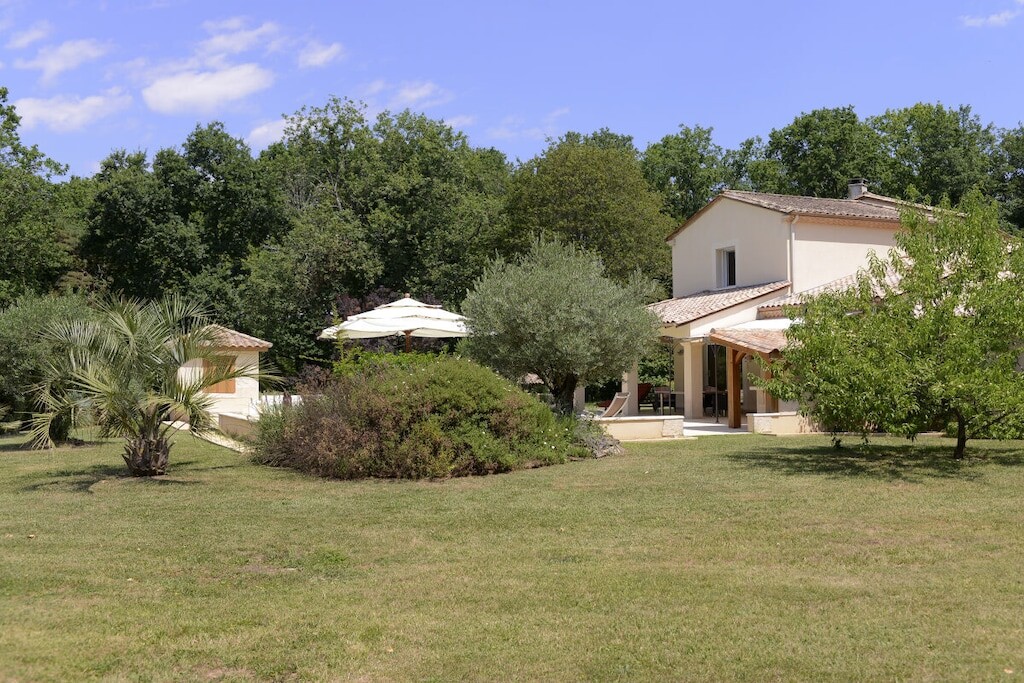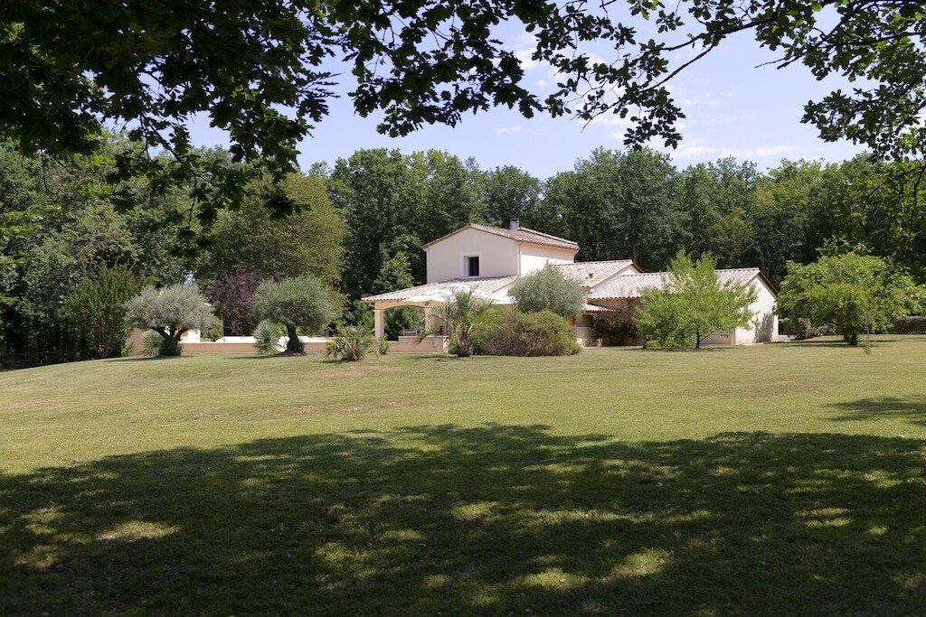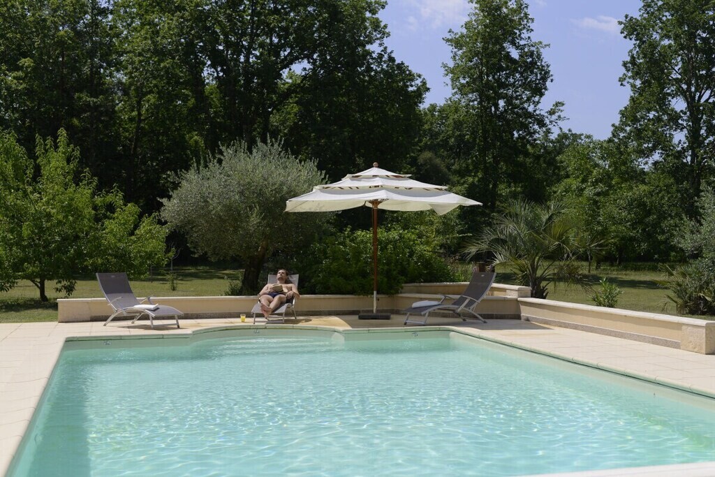 Het terrein van 2 hectare biedt privébossen, uitgestrekte gazons, fruitbomen en een aangrenzend walnotenbos, op slechts 2 minuten van het Chateau de Bannes. Gasten kunnen genieten van de serene omgeving, af en toe een bezoek van herten en verschillende vogelsoorten. Een ecologisch verwarmd zwembad van 5x10 m, beschikbaar van half april tot oktober, verbetert de buitenervaring.