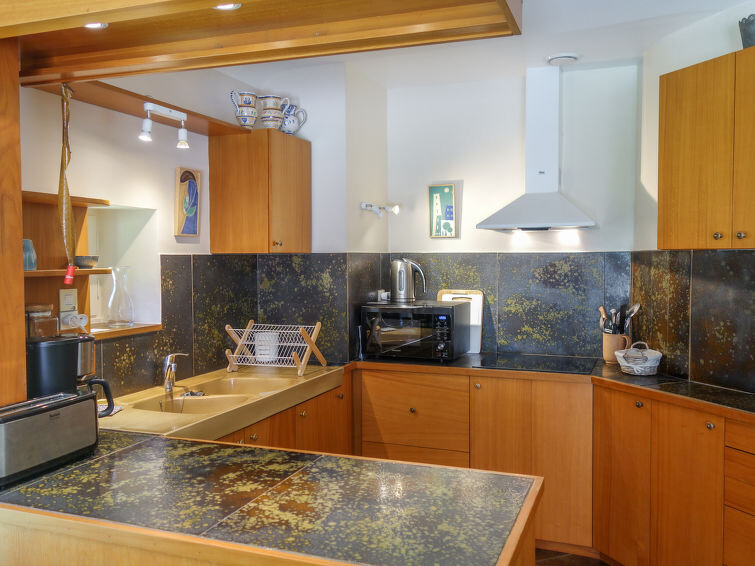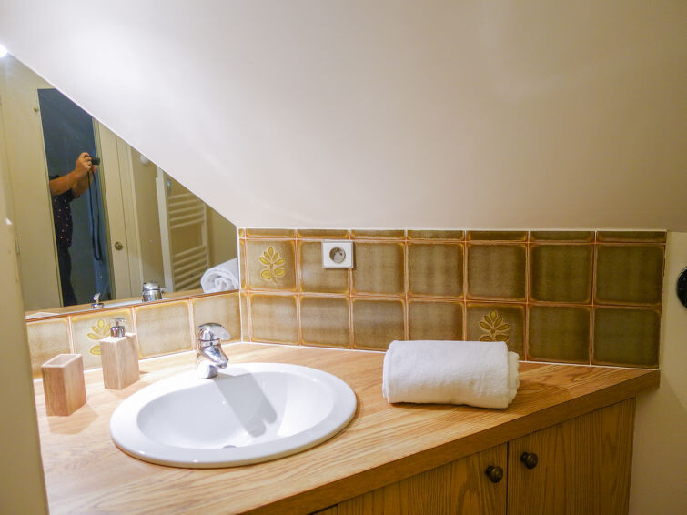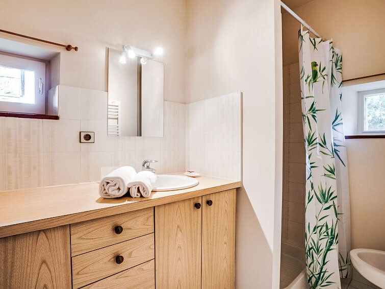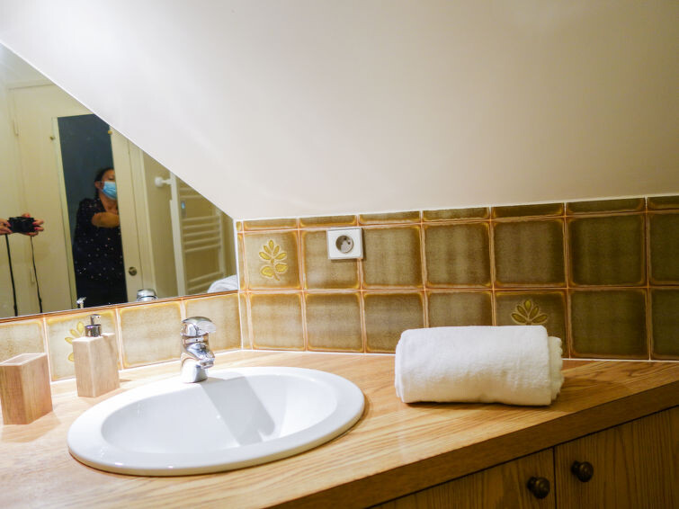 Woonboerderij 5-kamers 110 m2 op 2 verdiepingen. Comfortabel ingericht: woon-/eetkamer met eettafel en TV (Flatscreen TV). Uitgang naar de tuin, naar het terras. 1 kamer met 1 2-pers bed (1 x 140 cm, lengte 190 cm), bidet en douche. Open keuken (oven, afwasmachine, 3 inductiekookplaten, magnetron, elektrische koffiemachine). Aparte WC. Bovenverdieping: 1 kamer met 1 2-pers bed (1 x 160 cm, lengte 200 cm), douche. 2 kamers, elke kamer heeft 2 bedden (90 cm, lengte 200 cm). Douche/WC. Elektrische verwarming. Groot tuin. Terrasmeubelen. Mooi uitzicht op de tuin. Ter beschikking: wasmachine, strijkijzer, kinderbed tot 2 jaar, haardroger. Internet (WiFi, gratis). Parkeerplaats bij het huis. Rookmelders. 560340007733A