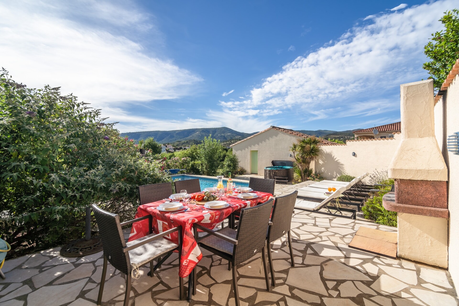 Stap binnen in een serene oase aan de rand van Félines-Minervois. Deze prachtig ingerichte villa biedt comfortabel plaats aan gezinnen of groepen met 3 slaapkamers en beschikt over een verwarmd privézwembad en een uitnodigende buitenspa, verwarmd tot 26 °C - perfect om het hele jaar door te ontspannen. Twee zonnige terrassen bieden een panoramisch uitzicht over weelderige wijngaarden en het pittoreske dorpje beneden, wat een rustige sfeer creëert om te ontspannen, gezelschapsspelletjes te spelen of buiten te dineren, omringd door de schoonheid van de natuur. De locatie van de villa is ideaal voor dierenliefhebbers die graag met hun harige vrienden op ontdekkingstocht willen gaan. Maak rustige wandelingen door het historische dorp met een 17e-eeuwse kerk en de ruïnes van Château de Ventajou. Trek de nabijgelegen bossen van Montagne Noire in voor schilderachtige wandelingen of verken de hondvriendelijke paden langs het Canal du Midi. De lokale markten in Olonzac, Lézignan en Narbonne bieden een levendige indruk van de regionale cultuur. Verwen uw culinaire zintuigen met regionale gerechten op slechts enkele minuten afstand - van charmante dorpsrestaurants tot cafés zoals Café de la Bourse in Rieux Minervois. Terug in de villa kunt u verse maaltijden bereiden in de volledig uitgeruste keuken met een sapcentrifuge en moderne apparatuur, en er vervolgens van genieten bij de barbecue of op het schaduwrijke terras. Met airconditioning, een bubbelbad voor vijf personen en handige voorzieningen zoals fietsen en een tafeltennistafel, combineert deze villa comfort met de charme van het authentieke Franse platteland - perfect voor een onvergetelijke vakantie met uw dierbaren, inclusief huisdieren.