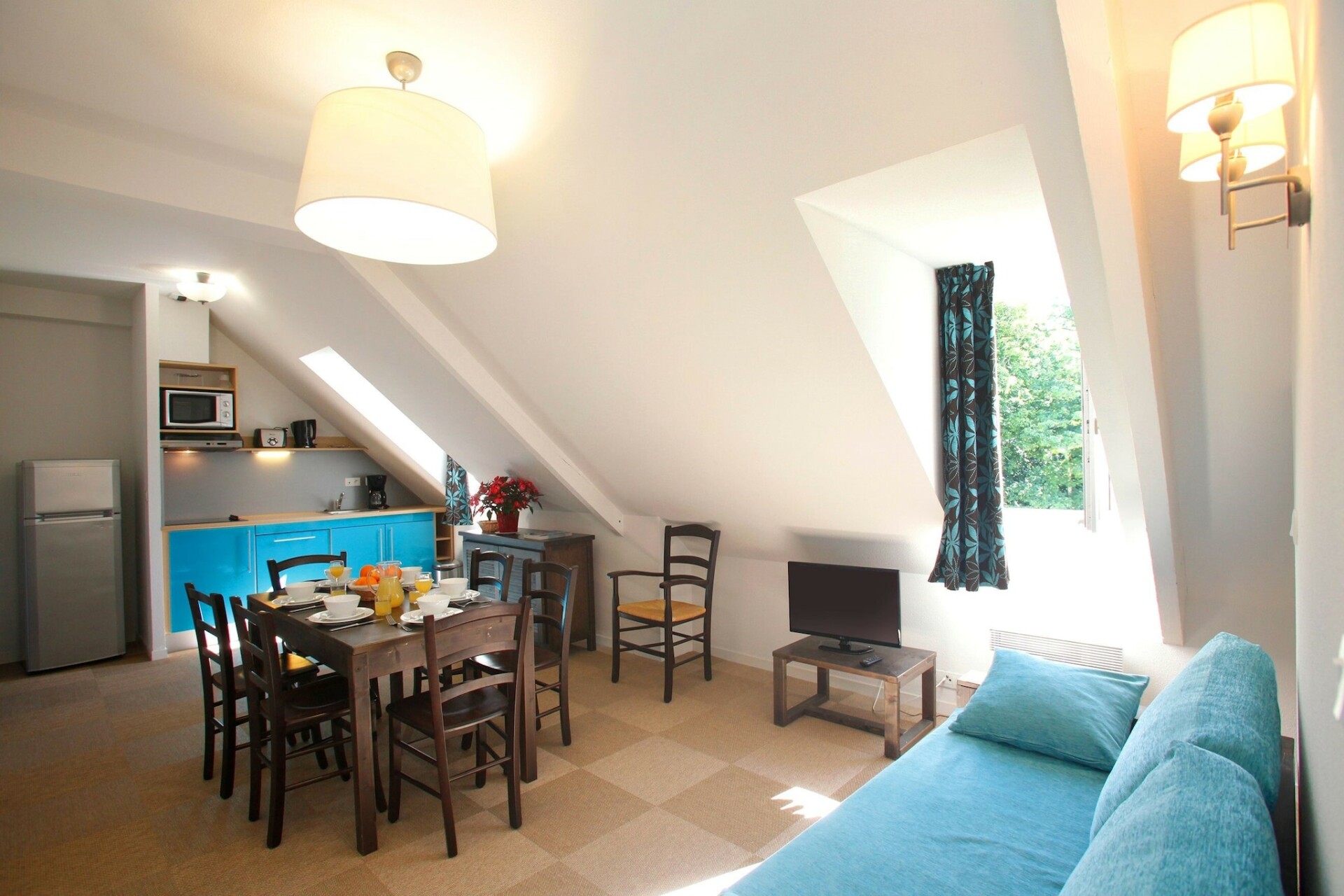 Verscholen in het elegante terrein van Résidence Le Château de Keravéon biedt deze lichte en uitnodigende studio de perfecte uitvalsbasis voor stellen of individuele reizigers. Met een comfortabele tweepersoonsslaapbank, een moderne kitchenette en een eigen balkon of terras geniet u van de ideale mix van 18e-eeuwse charme en 21e-eeuws comfort. Of u nu buiten koffie drinkt of ontspant na een dagje strand, deze knusse schuilplaats laat elk moment als vakantie voelen.