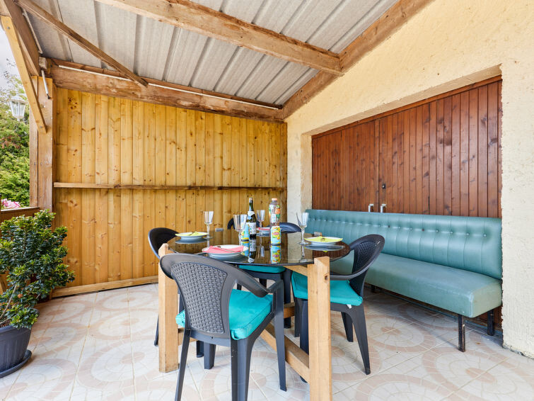 "Entre mer et campagne 3", huis 5-kamers 190 m2. Rustiek en met veel hout ingericht: woon-/eetkamer met open haard, eettafel, bar, Sat-TV, radio, stereo-installatie en DVD. Uitgang naar het terras. Biljardkamer met wintertuin. 3 kamers, elke kamer heeft 1 2-pers bed (160 cm). 1 kamer met 1 2-pers bed (1 x 140 cm). Uitgang naar het terras. Keuken (1 kookplaat, oven, afwasmachine, 3 kookpitten (vlammen), broodrooster, waterkoker, magnetron, diepvriezer, elektrische koffiemachine). Douche, aparte WC. Elektrische verwarming. Parketvloeren. Terras terras overdekt. Terrasmeubelen, barbecue, bergruimte. Ter beschikking: wasmachine, droger, strijkijzer, kinderstoel, kinderbed, haardhout (gratis). Internet (Internet (WiFi), extra). Rookvrij huis. Maximaal 1 huisdier/hond toegestaan.