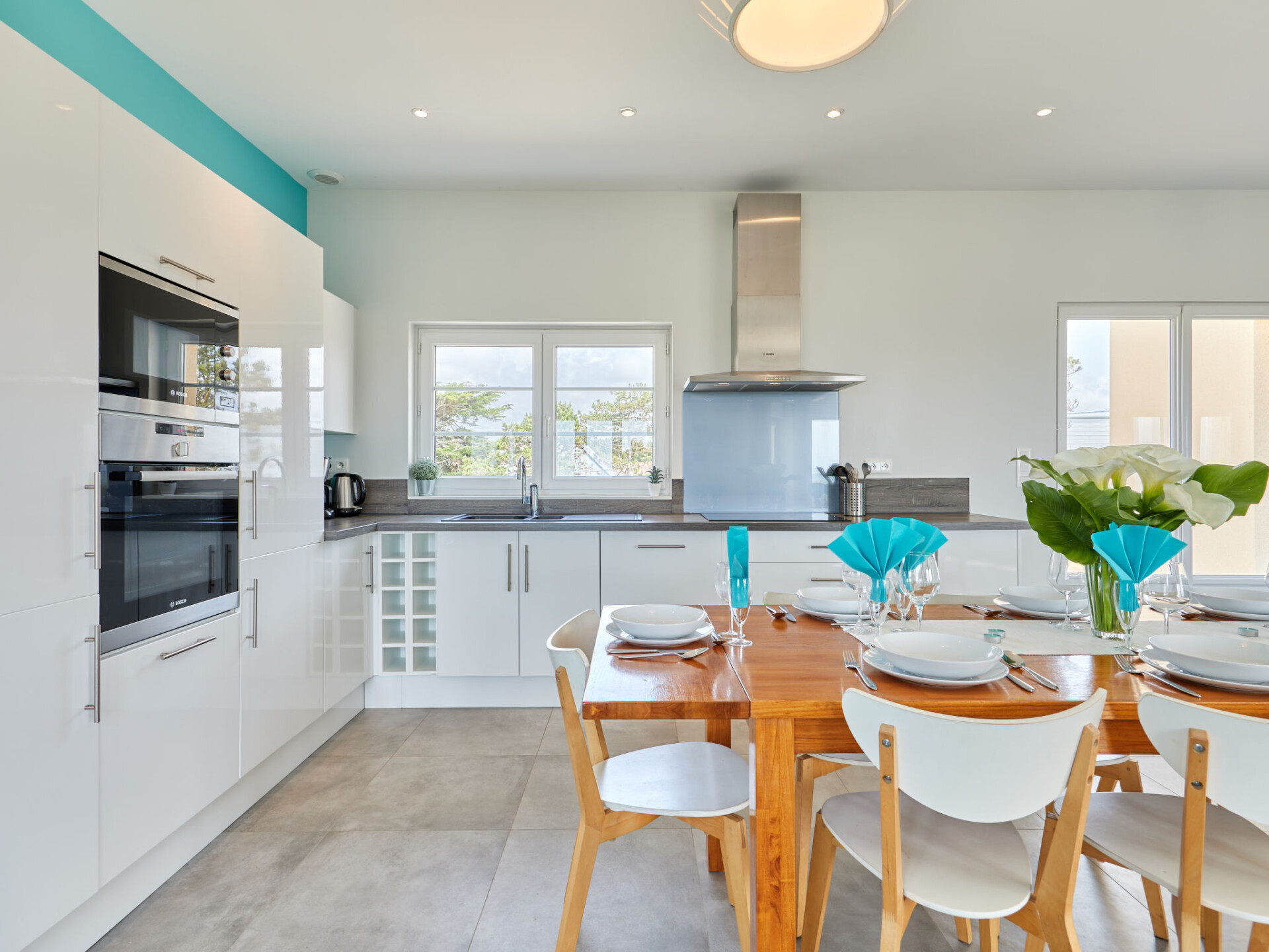 "La Surprise", huis 4-kamers 120 m2 op 2 verdiepingen. Comfortabel en mooi ingericht: woon-/eetkamer met TV (Flatscreen TV). Open keuken (oven, afwasmachine, 1 inductiekookplaten, 4 kookpitten (vlammen), broodrooster, waterkoker, magnetron, elektrische koffiemachine, pads voor de koffiemachine (Dolce gusto)). Uitgang naar het terras. Aparte WC. Elektrische verwarming, vloerverwarming. Bovenverdieping: 2 kamers, elke kamer heeft 1 2-pers bed (1 x 140 cm, lengte 190 cm), douche. 1 kamer met 1 x 2 stapelbedden (90 cm, lengte 190 cm), 1 2-pers bed (140 cm, lengte 190 cm), douche met aparte WC. Terras. Terrasmeubelen, barbecue, ligstoelen. Mooi uitzicht op zee. Ter beschikking: wasmachine, droger. Internet (WiFi). Rookmelders. Aanbod door een particulier volgens art. 155, IV van CGI.