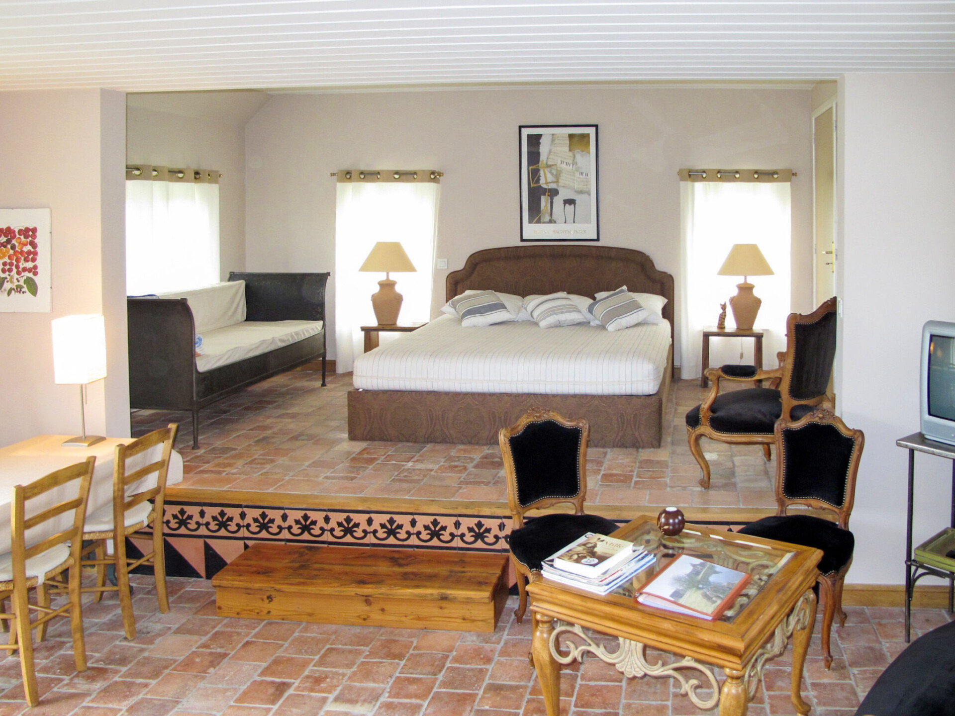 "Le Verger", huis 1-kamer 60 m2. Het objekt is geschikt voor 2 volwassenen + 1 kinderen. Smaakvol ingericht: woon-/slaapkamer met eettafel en TV. Uitgang naar het terras. Open slaapnis met 1 divanbed en 1 2-pers bed (180 cm). Kookhoek (oven, afwasmachine, 4 keramische glas kookplaten, broodrooster, waterkoker, elektrische koffiemachine). Bad/douche, aparte WC, dubbele wastafels. Elektrische verwarming. Zithoek in de tuin. Terrasmeubelen, barbecue (verrijdbaar). Panoramazicht. Ter beschikking: Internet (WiFi, gratis). Niet rokers woning. Maximaal 1 huisdier/hond toegestaan. In plaats van een afgesloten slaapkamer bevinden sommige slaapgedeeltes zich in een open ruimte (galerij, nis, etc.).