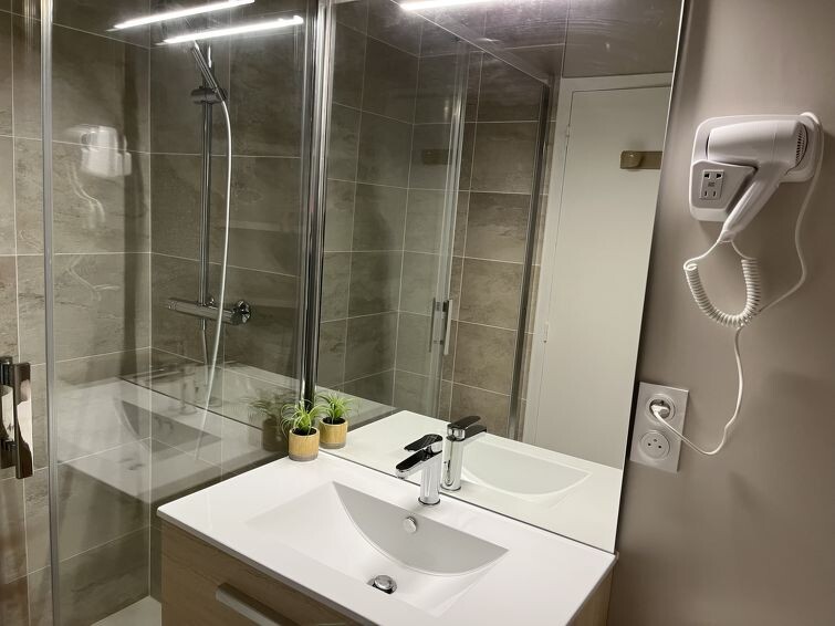 Studio 1-kamer 31 m2 op de 3e verdieping. Mooi ingericht: cabine met 1 x 2 stapelbedden (90 cm, lengte 190 cm). Woon-/eetkamer met 1 2-pers divanbed (1 x 140 cm, lengte 190 cm), TV (Flatscreen TV). Uitgang naar het terras, op het zuiden. Kookhoek (afwasmachine, 2 keramische glas kookplaten, elektrische koffiemachine, combimagnetron). Douche/WC. Elektrische verwarming. Klein terras 6 m2. Terrasmeubelen. Uitzicht op het landschap. Ter beschikking: Internet (WiFi, gratis). Rookmelders. In plaats van een afgesloten slaapkamer bevinden sommige slaapgedeeltes zich in een open ruimte (galerij, nis, etc.). 560340007018B