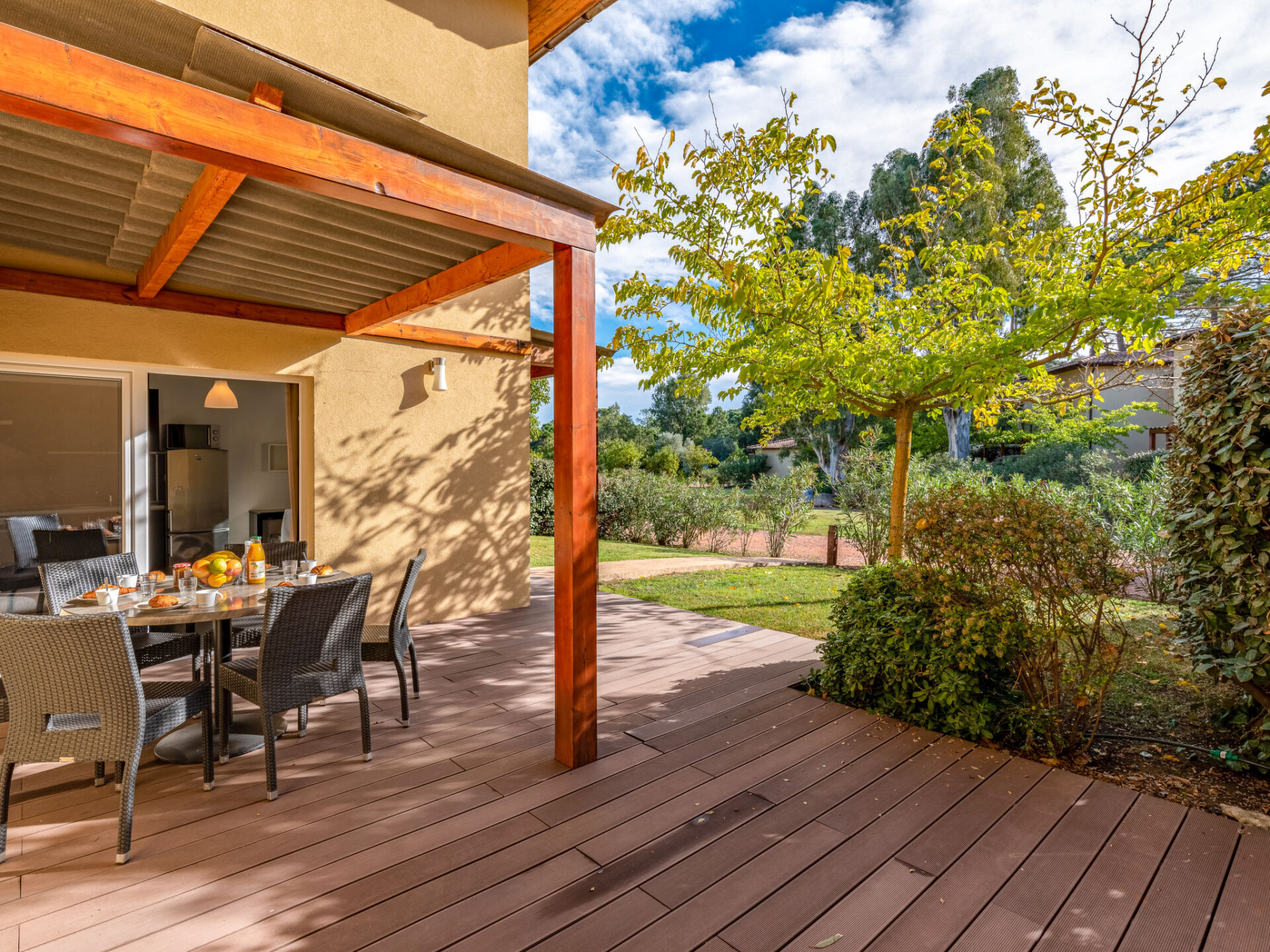Vakantiecomplex "Marina di Favone", van 2 verdiepingen. 3 huizen in de woning. 18 appartementen in de woning. 300 m van het centrum van Favone, 10 km van het centrum van Solenzara, 116 km van het centrum van Bastia, 200 m van zee, de straat oversteken. Voor medegebruik: terrein 15.000 m2 met planten en bomen, weide, openluchtzwembad (14 x 7 m, seizoensgebonden beschikbaarheid: 30.Apr. - 31.Okt. openingstijden zwembad: 09:00-20:00). WC bij het zwembad, buitendouche, hot tub, jeu de boules, terras, tuinmeubelen (glijbaan, schommel). In het complex: receptie, bar, Internet (WiFi), wasmachine, droger (voor medegebruik). Parkeerplaats op het terrein. Oplaadstation. Winkel 10 km, bushalte 350 m, zandstrand "Plage de Favone" 200 m. Midgetgolf 100 m. Attracties in de buurt: Porto-Vecchio 28 km, Plage de Santa Giulia 36 km, Plage de Palombaggia 37 km, Bonifacio 55 km. Auto noodzakelijk. De afgebeelde foto is slechts een voorbeeld.