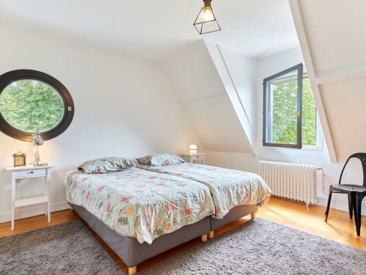 "Villa Honfleur", huis 6-kamers 160 m2 op 3 verdiepingen. Woon-/eetkamer met panoramavenster met open haard (alleen decoratie), TV (Flatscreen TV). Uitgang naar het terras. Open keuken (oven, afwasmachine, 2 keramische glas kookplaten, 2 kookpitten (vlammen), broodrooster, waterkoker, magnetron, elektrische koffiemachine, pads voor de koffiemachine (Nespresso) extra). Elektrische verwarming. Souterrain: 1 kamer met douche/WC. Bovenverdieping: 3 kamers, elke kamer heeft 1 2-pers bed (160 cm, lengte 200 cm). 1 kamer met 1 2-pers bed (160 cm, lengte 200 cm), douche. Aparte WC. Terras 40 m2. Terrasmeubelen. Ter beschikking: wasmachine, droger. Aanbod door een particulier volgens art. 155, IV van CGI.