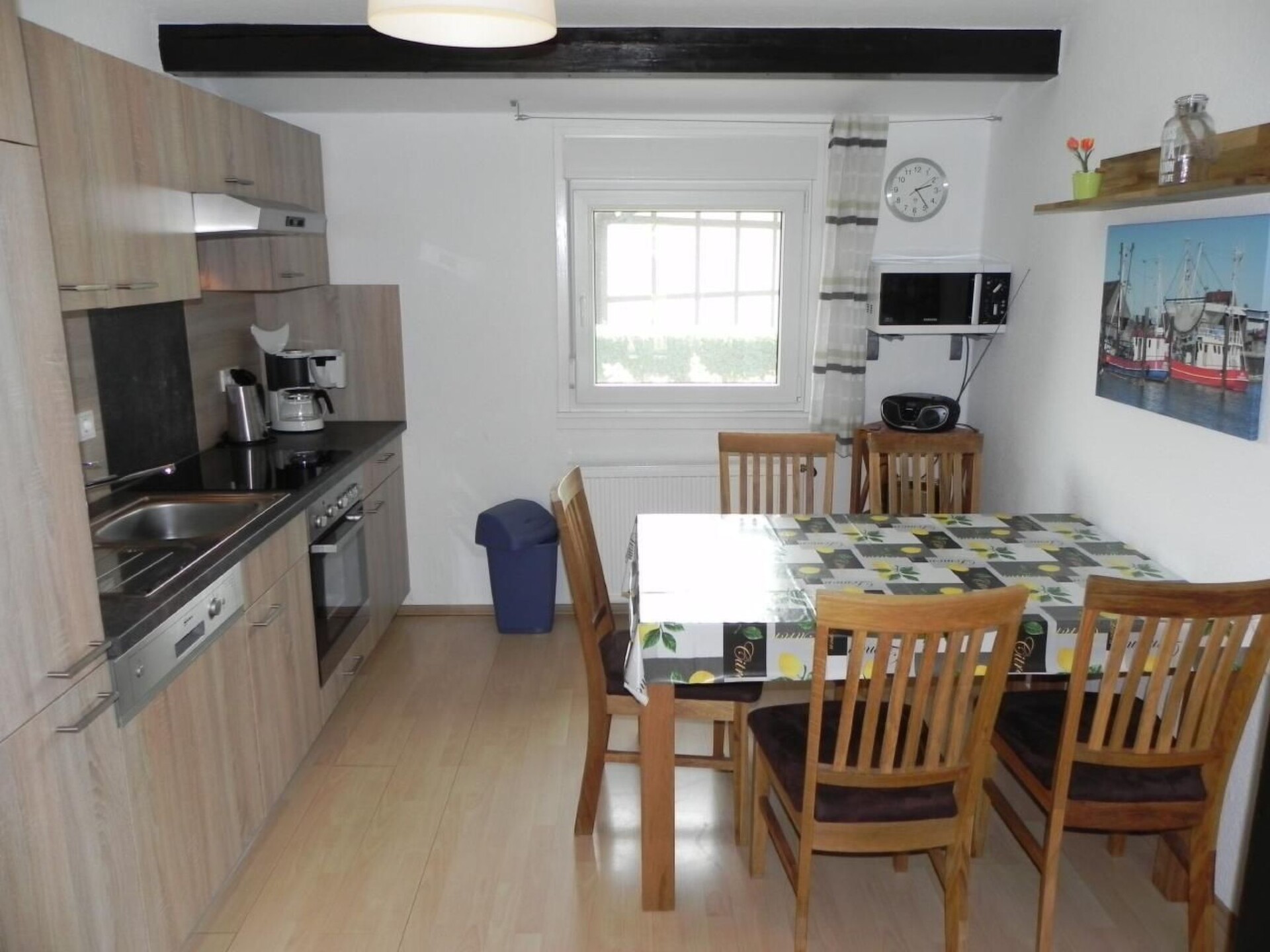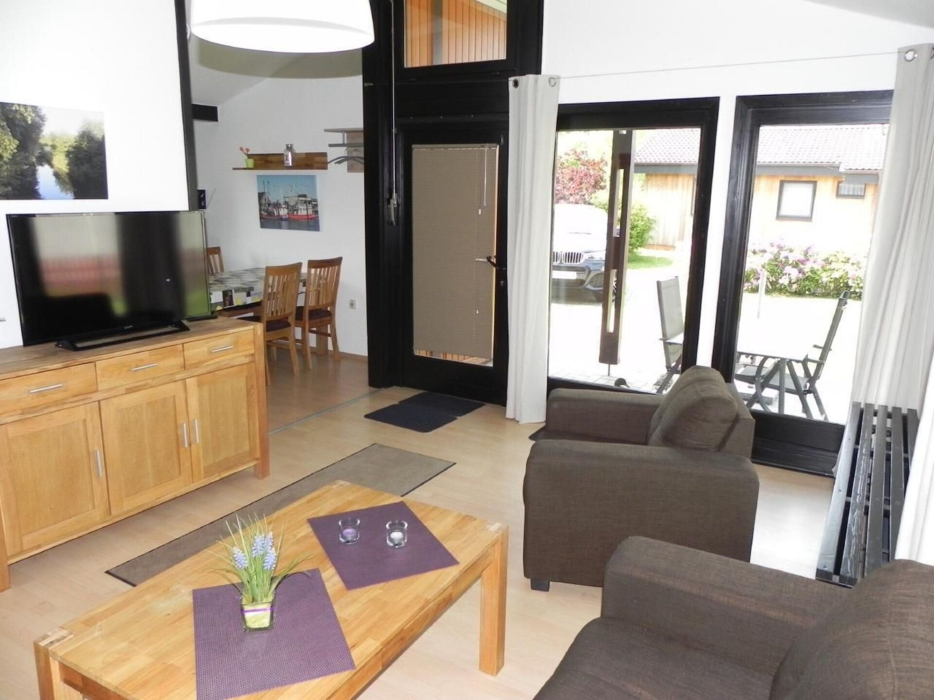 Maximaal 2 huisdieren/honden toegestaan. Detached, ground-floor bungalow for 5 people with 3 bedrooms, own approx. 350 sqm property - bathroom renovated in February 2019 with underfloor heating and wall-mounted towel radiator - 3 bedrooms: 1 bedroom with double bed 1.80x2.00 m TV, 1 bedroom with 1x single bed 0.90x2.00 m + 1x bunk bed (accessible via ladder), 1 bedroom with single bed 0.90x2.00 m, large living room with 6.5 m window front down to the floor, covered sun terrace with garden furniture and parasol, 2 parking spaces at the house, fully equipped fitted kitchen. There is also a separate, lockable storage room.Free WLAN at the holiday village administration (not in the house!)The house is located in the holiday village Eckwarderhörne in the immediate vicinity of the dike, the ferry dock (including passenger / bicycle ferry to Wilhelmshaven) and a 50,000 square metre inland lake belonging to the holiday village (with an approx. 500 square metre sandy lawn directly on the inland lake, swimming pontoon and jetties).The Eckwarderhörne lido with its beach hall, lighthouse, ferry landing stage and starting point for guided mudflat walks is about 800 m away. In the idyllic holiday village, away from the traffic, there is the "To'n Spieker" dyke inn, bicycle hire, children's playground and a 1,000 m² play area with beach volleyball court, badminton court, basketball hoop, outdoor table tennis table, sandpit and swings.Electricity, gas, final cleaning and water consumption includedVisitor's tax/guest card according to valid statutesExempt are: Severely disabled persons (and 1 accompanying person) with 80% degree of disability as well as the 3rd and each additional child of a family, provided that the guest contribution is paid for the 1st and 2nd child. -Extras/Options: Can only be requested by the tenant in writing directly after the booking confirmation (at the latest 4 weeks before arrival) and will receive a binding answer after availability check---all payable on arrival on site:-Bed linen (duvet cover, pillowcase, sheet)--Towel package (shower towel 140x70, hand towel 100x50, shower mat 70x50)-early arrival/house guaranteed ready for occupancy from 12.00 noon-Later departure/check out until 12.00 noon-Children's high chair-travel cot (without pillow and blanket)Short description 1Number of kitchens : 1Other rooms : hallway, storage room outsideBedroom 1Other bedroom furnishings : mechanical roller shutter, LED-TVBedroom 2Other bedroom furnishings : mechanical roller shutterBedroom 3Other bedroom furnishings : 1xsingle bed (of the 2 single beds) is a loft bed, accessible via small ladder, mechanical roller shutter, children's high chair, children's travel cot without pillow and blanket. Bathroom 1Other bathroom facilities : Completely renovated in February 2019-flat shower tray, underfloor heating, wall-mounted towel radiatorKitchen 1Other kitchen facilities : Refrigerator with three-star freezer compartmentSurroundingsLoan facilities : Bicycle hireSports facilities in the area : Fishing, basketball, football pitch, climbing, cycling tours, indoor riding arena, riding arena / riding facilities, sailing, surfingSurroundings 1Excursions : On the water: from Eckwarderhörne ferry landing stage approx. 500m away: passenger/cycle ferry to Wilhelmshaven, Jade Bay tours (seal banks, lighthouse), mudflat walks On land: 3000 sqm bathing paradise - 8 minutes by car, Bremerhaven fishing harbour, Jaderberg animal/leisure park, 3.000sqm indoor play barn and North Sea lagoon - 15 minutes by car,Location description : The seaside resort Eckwarderhörne is located directly on the dyke on the Butjadingen peninsula - surrounded by water on three sides - in the middle of the "Lower Saxony Wadden Sea National Park".Other sports and leisure facilities : Outdoor table tennis, beach volleyball court, outdoor badminton court, mudflat hiking, kite flyingGarden and outdoor facilitiesGarden equipment : Garden shed, garden furniture available, barbecue.
