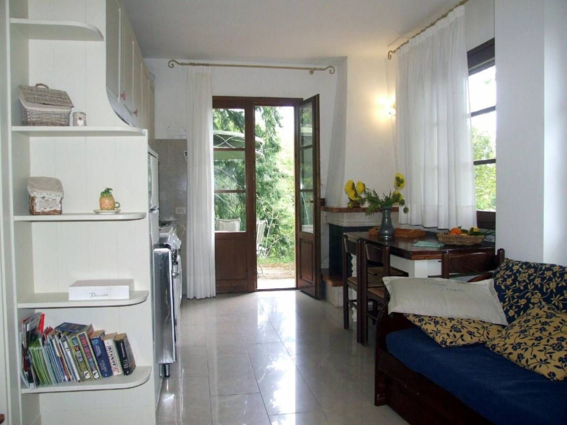 This flat is located on the ground floor, on the north side of the house.In front of this entrance is a gazebo for outdoor dining with a marble table and wrought-iron sofas with comfortable cushions.The flat's private garden is also equipped with an outdoor shower, a barbecue and two deck chairs.Entering the living room, on the right is the well-equipped kitchen with a gas hob, gas oven, refrigerator/freezer, dishwasher, toaster, mocha and filter coffee machine, and a washing machine. In front of the kitchen is a fireplace and a wooden table with six chairs.In the living room there is a sofa that can be converted into a double bed or two single beds. The living room leads to the bedroom with a French window, a double bed and an extra bed. From the bedroom there is access to the bathroom with shower.The flat is very well equipped and has Wi-Fi and central heating.The holiday house with a garden of 2000 square metres is surrounded by a chestnut forest and is only 800 metres from the village, and consists of three holiday flats.Situated 500 metres above sea level, the villa is ideal for a relaxing holiday.The house is luxurious and recently renovated. The floors are light-coloured and of the same quality and colour throughout the house, as are the tiles in the kitchen and bathrooms. The exterior of the house is well maintained and takes into account the surroundings.There is a swimming pool (12x6 m, open from April to October).In Marina di Castagneto our guests have access to a Maremma pine forest (with changing room, toilets, water, deckchairs and parasols) and access to a free beach.The medieval village of Sassetta is situated on the hills of the Costa degli Etruschi, in a very green area from which you can enjoy amazing views of the woods and the sea. From here you can make excursions to beautiful villages such as Bolgheri (famous for its Sassicaia wine) or Massa Marittima, as well as visit the Etruscan necropolis of Populonia (25 km).MANDATORY PORTA A PORTA WASTE COLLECTION: if rubbish accumulates at check-out, a charge will be deducted from the security deposit. IT049019B4EMU2MK5E