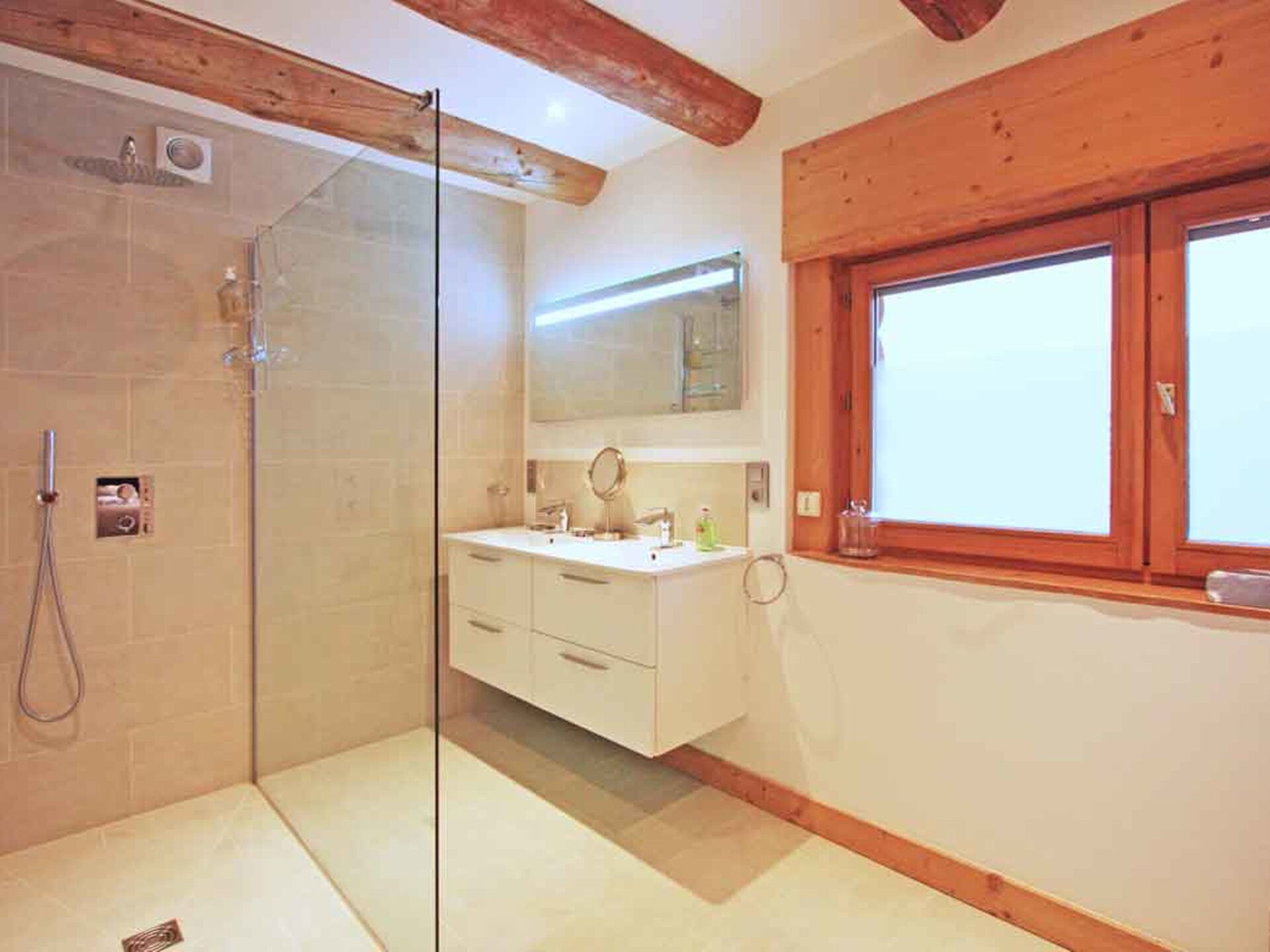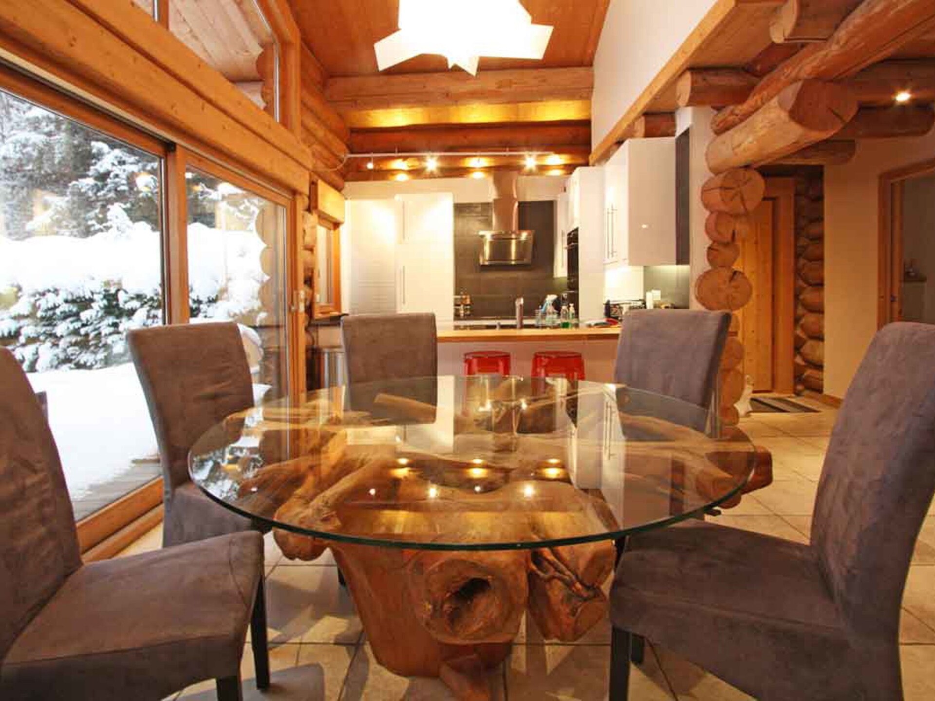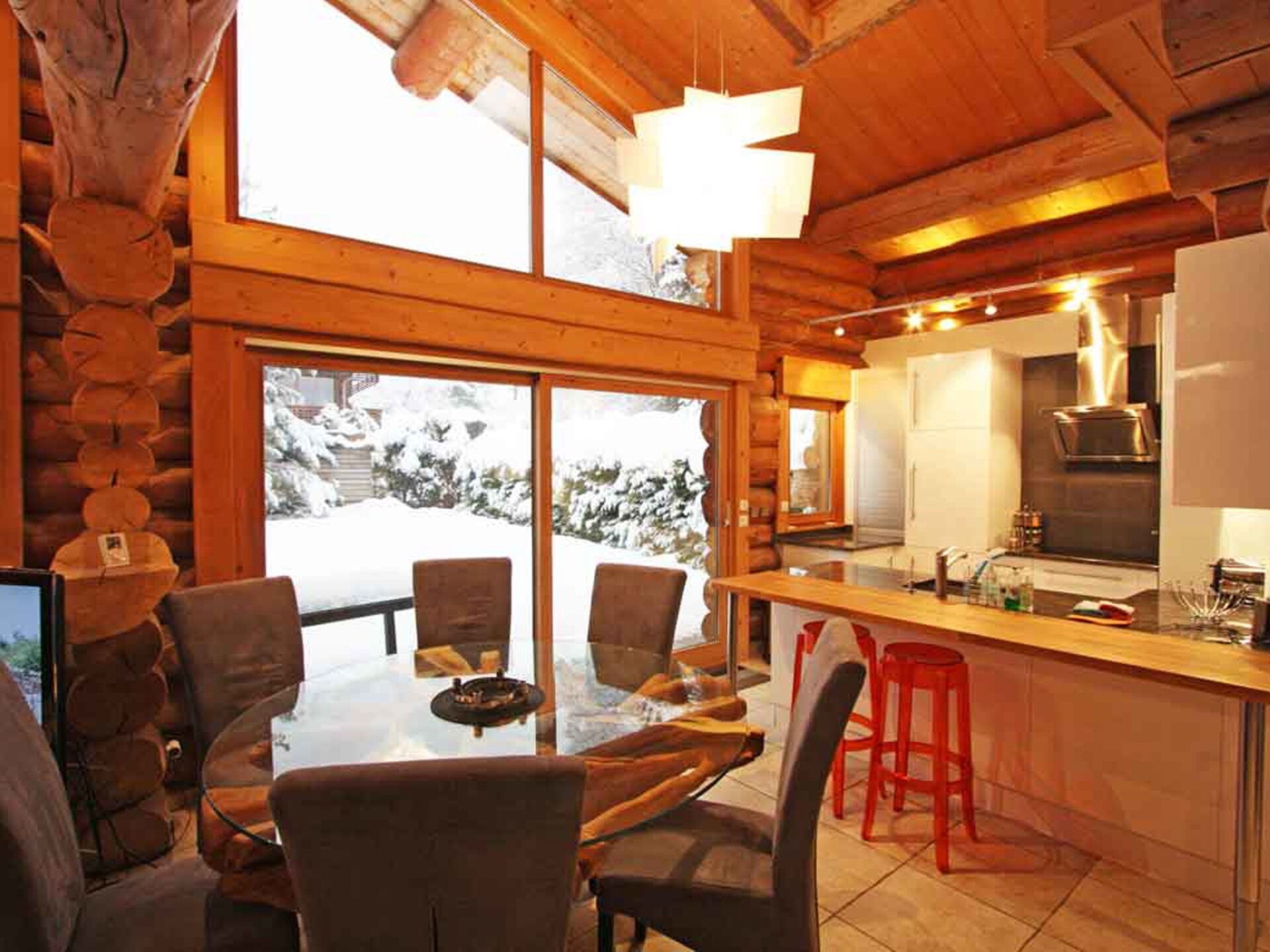 Chalet des Cimes is nestled in a lovely quiet lane just past the main hospital, about 7-8 minutes' walk from the centre of Chamonix for the nearest bars, restaurants and supermarkets. The area is lovely and quiet with beautiful silver birch trees framing the stunning views of Mont Blanc and l'Aiguille du Midi. This Chamonix property is close to the hospital bus stop for buses to the town centre, and the main Chamonix Sud bus stop is located at the end of the main road (Route des Pelerins), for ski buses on your Chamonix ski holiday and access to all lift areas in summer for walking, hiking, biking and activities.This luxury 120sqm contemporary Chamonix property is built in a Canadian lodge cabin style unique in Chamonix and sleeps 10 people in 5 bedrooms. Chalet des Cimes is nestled in a lovely quiet lane close to the centre of Chamonix with a beautiful private secure garden to enjoy the stunning views of Mont Blanc, l'Aiguille du Midi, the Glacier des Bossons and Brevent. Conveniently located just a short walk from the centre of Chamonix (a genuine 7-8 minutes) Chalet des Cimes has been designed to make the most of the views with double height living room with large patio doors leading out into the garden, where you will find a 8 man hot tub and plenty of lawn for children to play safely. The open plan living space of this Chamonix property is focused around the designer suspended fireplace in the centre of the room, which can be rotated to focus on the dining area or the lounge. The chalet has 5 bedrooms, and 4 bathrooms as well as a separate WC also. The kitchen and breakfast bar has all the modern conveniences that you could want for your holiday, and Chalet des Cimes also benefits from wifi internet access, TV, Smart TV and DVD player for use with your own DVDs.
