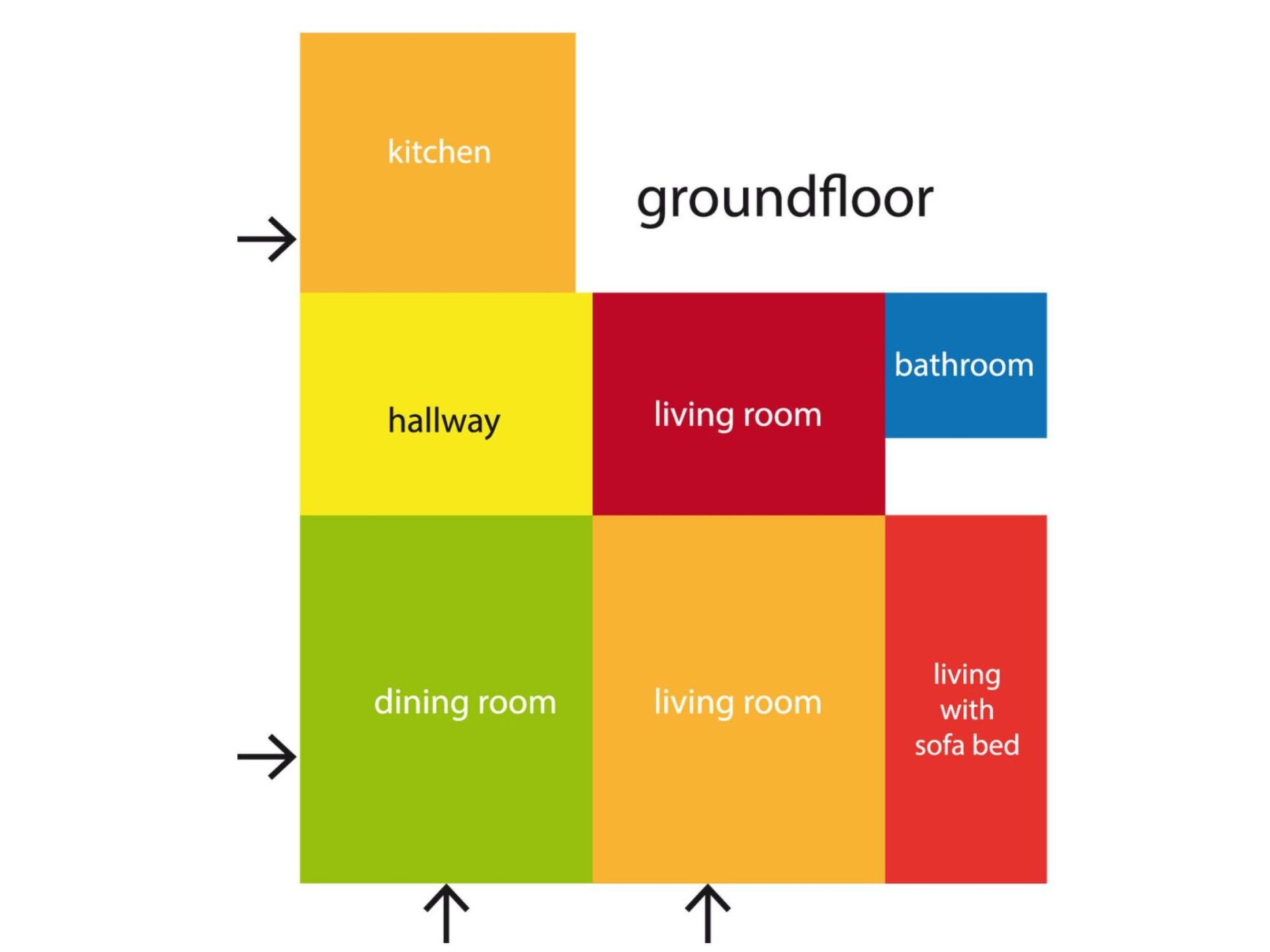 Als je de trap oploopt, kom je op de eerste verdieping waar je vier slaapkamers en drie badkamers vindt: een slaapkamer met een tweepersoonsbed en en-suite badkamer met jacuzzi, dubbele wastafel en douche; twee tweepersoonsslaapkamers, beide met en-suite badkamer met ingebouwde douche; een slaapkamer met twee eenpersoonsbedden die gebruikt kan worden als zitkamer/studeerkamer of als slaapkamer met twee eenpersoonsbedden. De ramen zijn voorzien van horren en de Wi-Fi-verbinding is betrouwbaar.