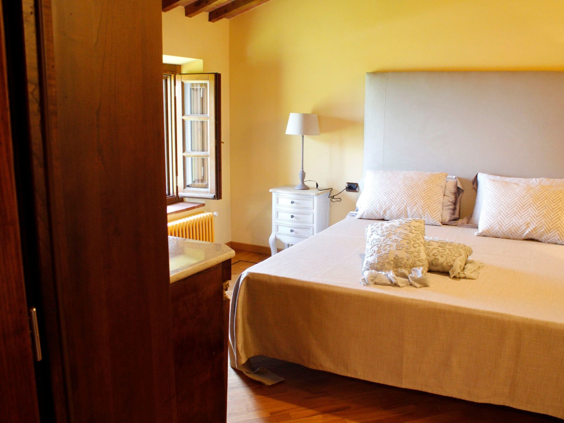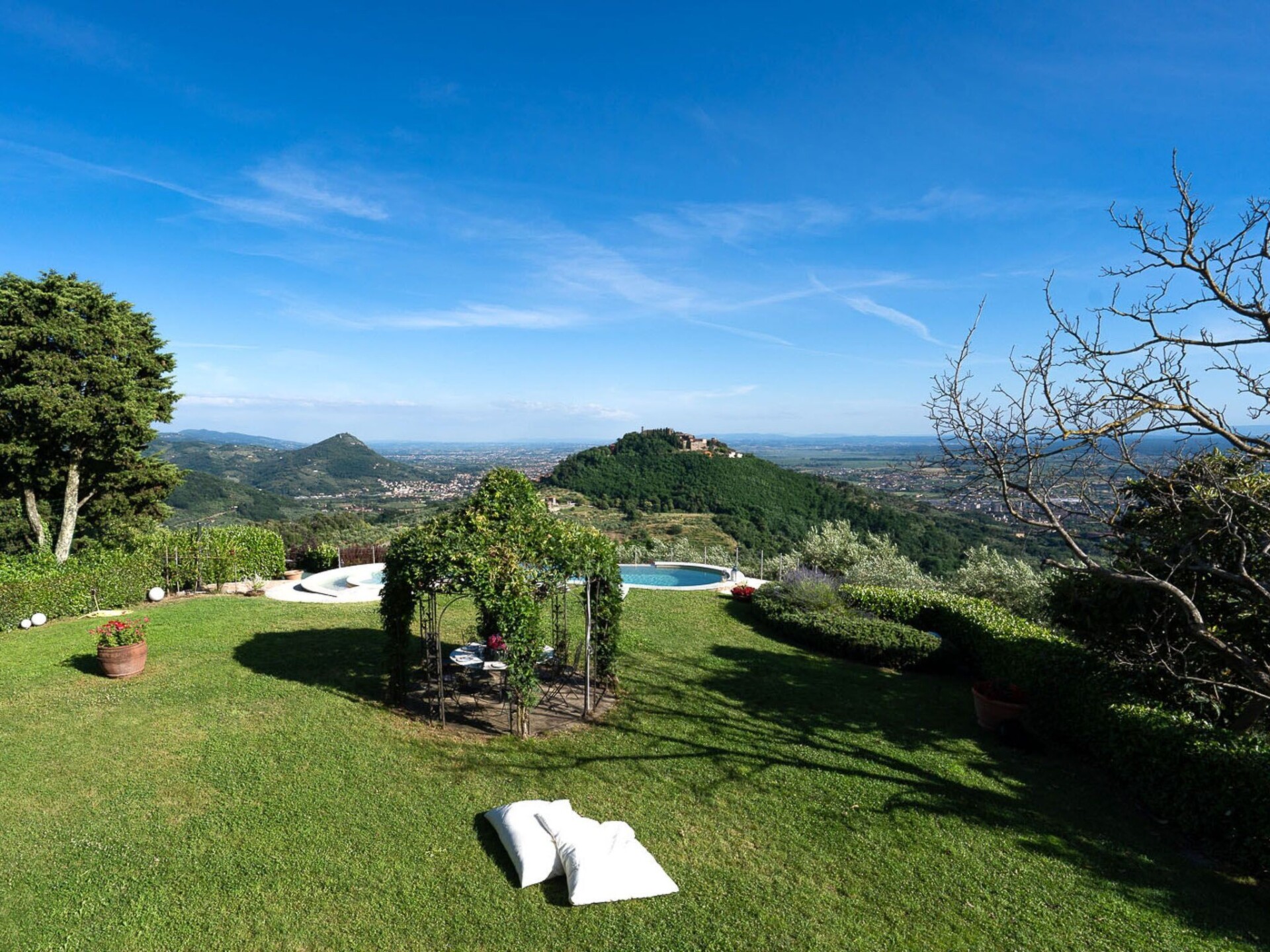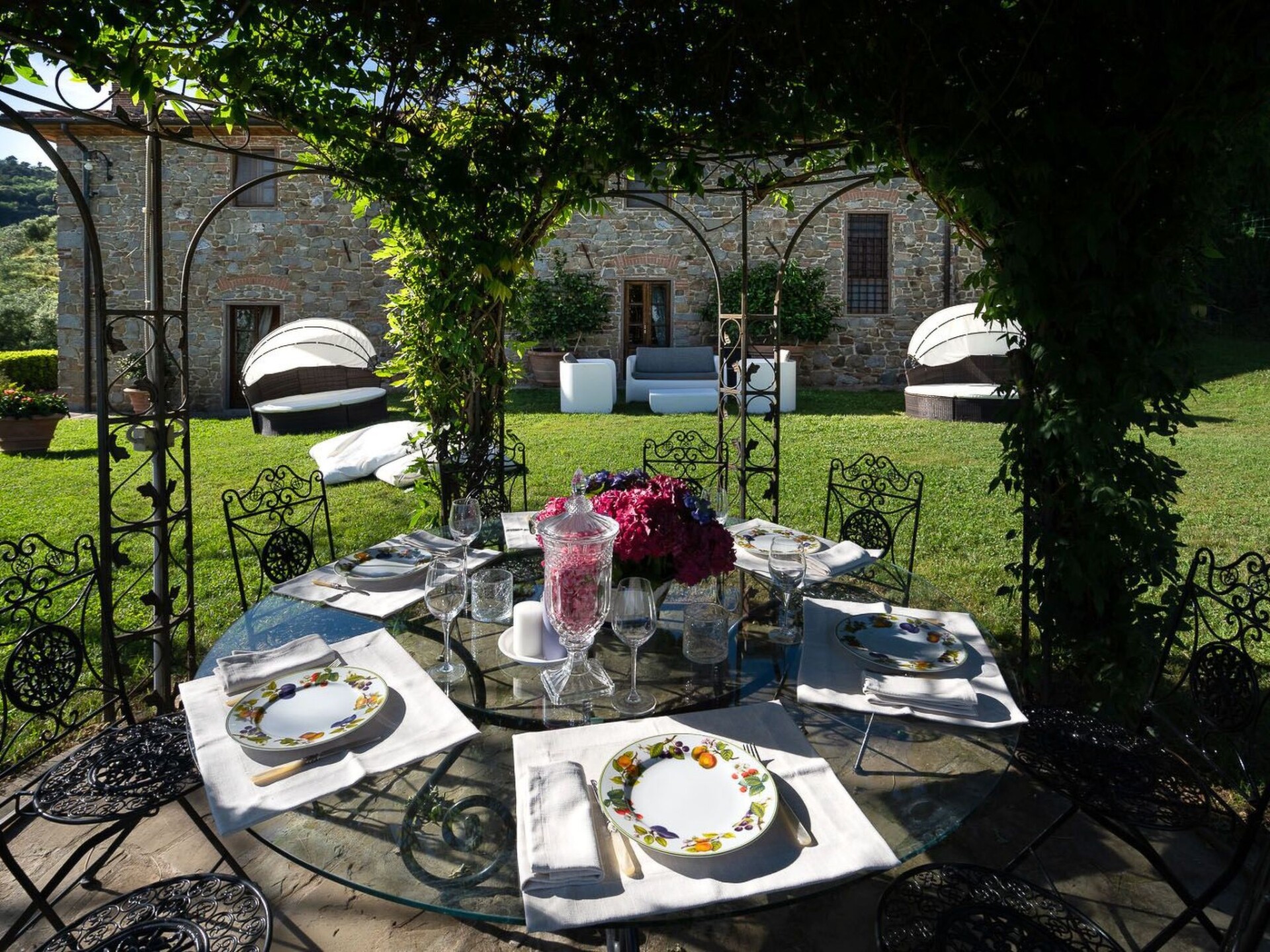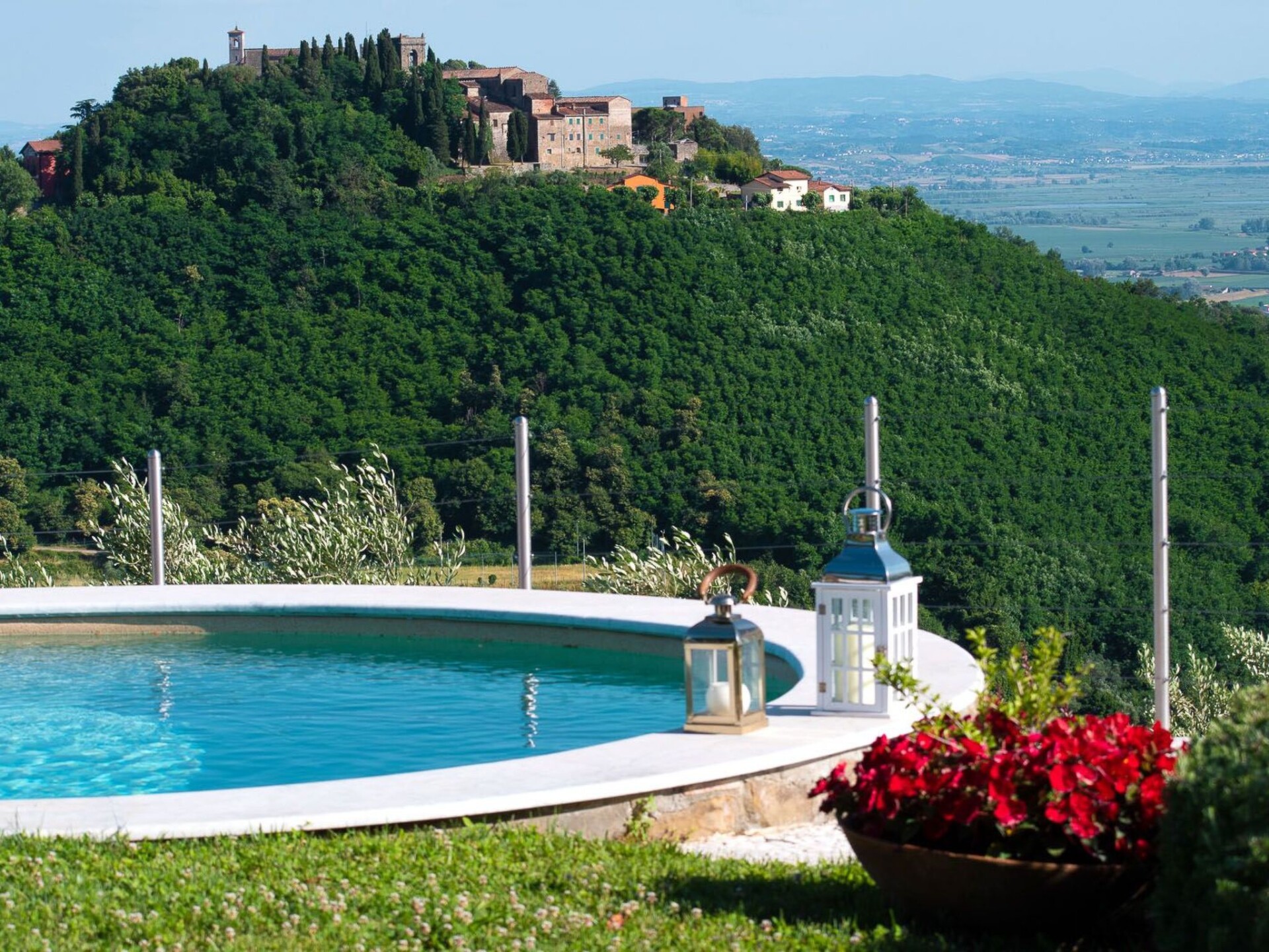 De villa is omringd door een grote omheinde tuin met buitenzwembad met panoramisch uitzicht en hydromassagezitplaatsen, waar men zich kan ontspannen ondergedompeld in het groen en de rust van het platteland.