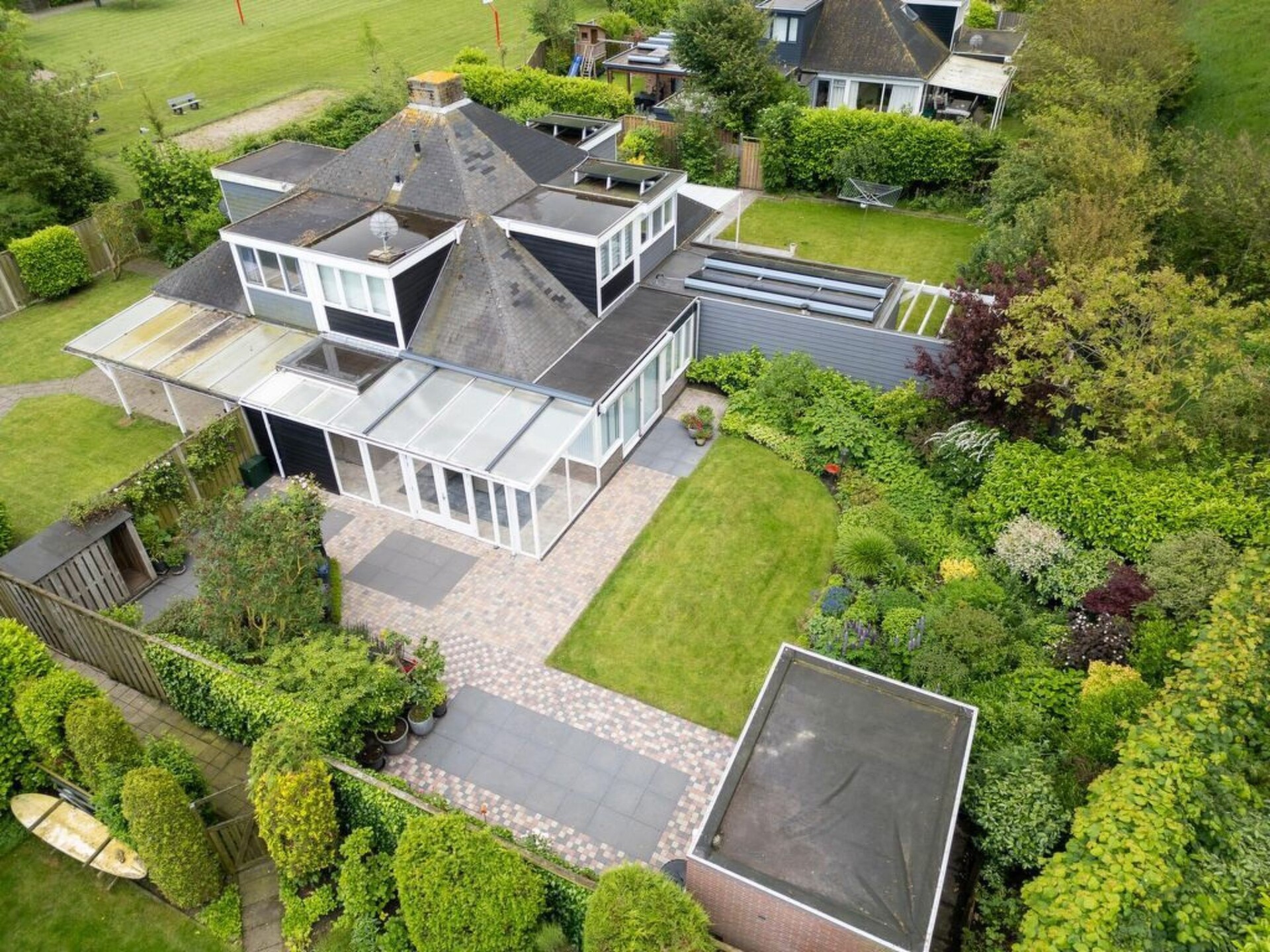 - geheel afgesloten (met muur, hek of heg)