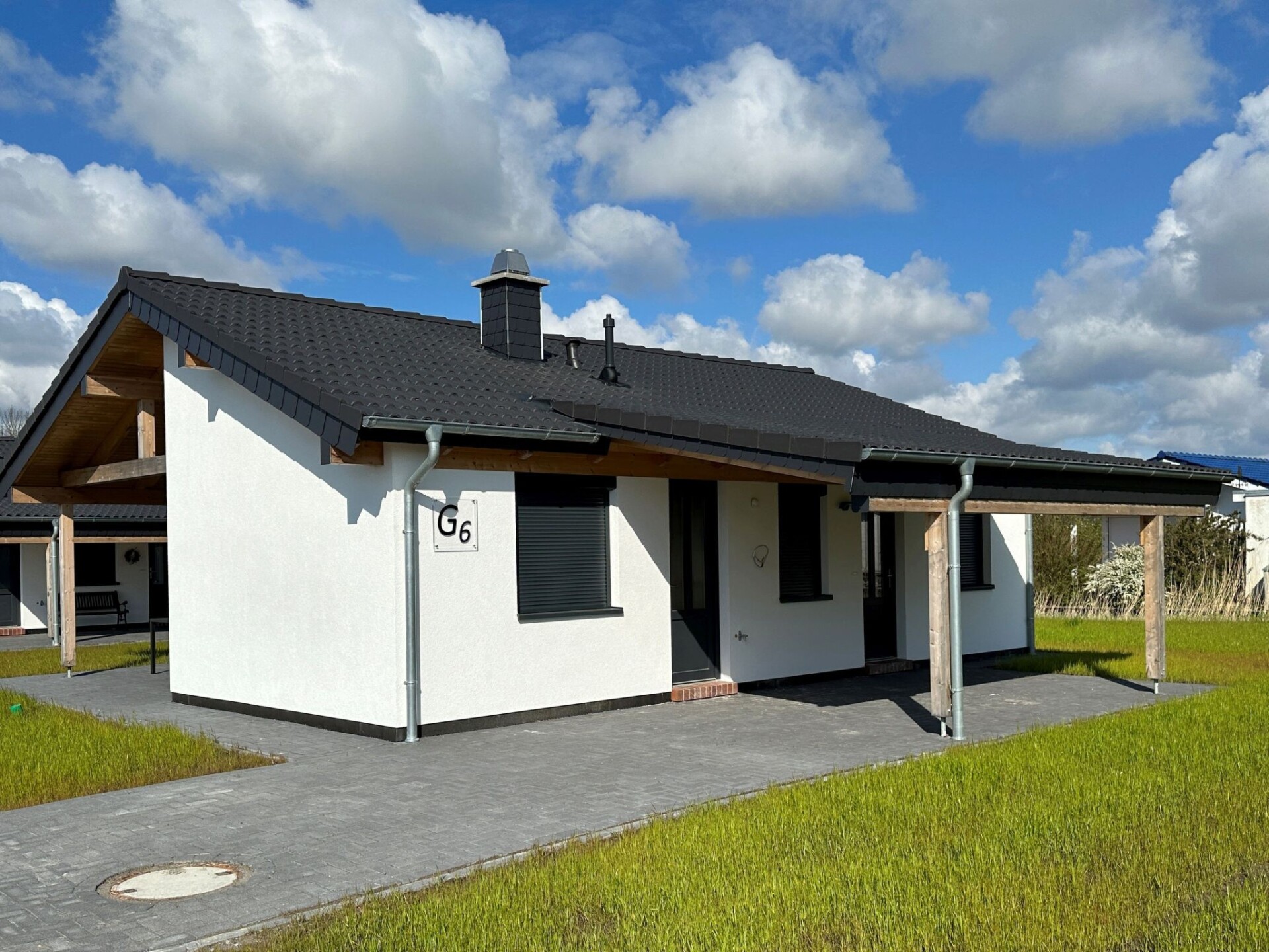 Nieuwbouwhuis G 6, eerste bewoning december 2022, geen huisdieren toegestaan, WLAN (glasvezel 75), wallbox kan gratis gebruikt worden, rolluiken in de 2 slaapkamers, keuken, badkamer, horren voor alle ramen, alle kamers betegeld, vloerverwarming en wanddoekradiator in de badkamer, TV in de woonkamer en in de 2 slaapkamers 67 m² woonruimte voor 4 personen met 2 slaapkamers en 1 badkamer + gastentoilet Eigen 489 m² grond 2 slaapkamers (1x tweepersoonsbed 1. 80m x 2.00m, 1. 80m x 2.00m, 1. 80m x 2.00m, 2. 80m, 1. 80m x 2.00m, 2. 80m, 2. 80m x 2.00m, 1. 80m, 2,80m x 2,00m, 2x eenpersoonsbed 0,90m x 2,00m) - 1 ruime woonkamer met grote ramen van vloer tot plafond - volledig ingerichte keuken met vaatwasser en magnetron - wasmachine, 1 berging / 1 hal - TV in de woonkamer en in de 2 slaapkamers - overdekt zonneterras met tuinmeubelen, parasol - buitenkraan - carport + extra parkeerplaats