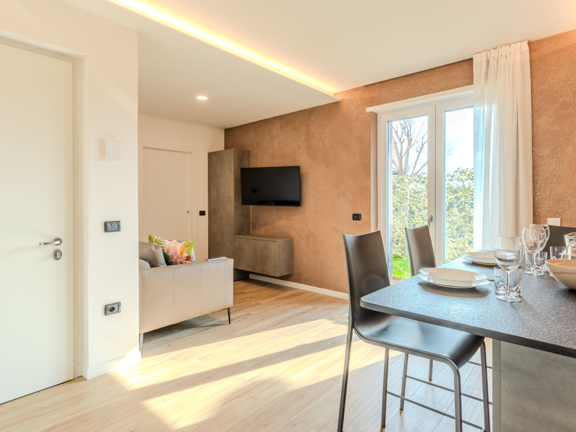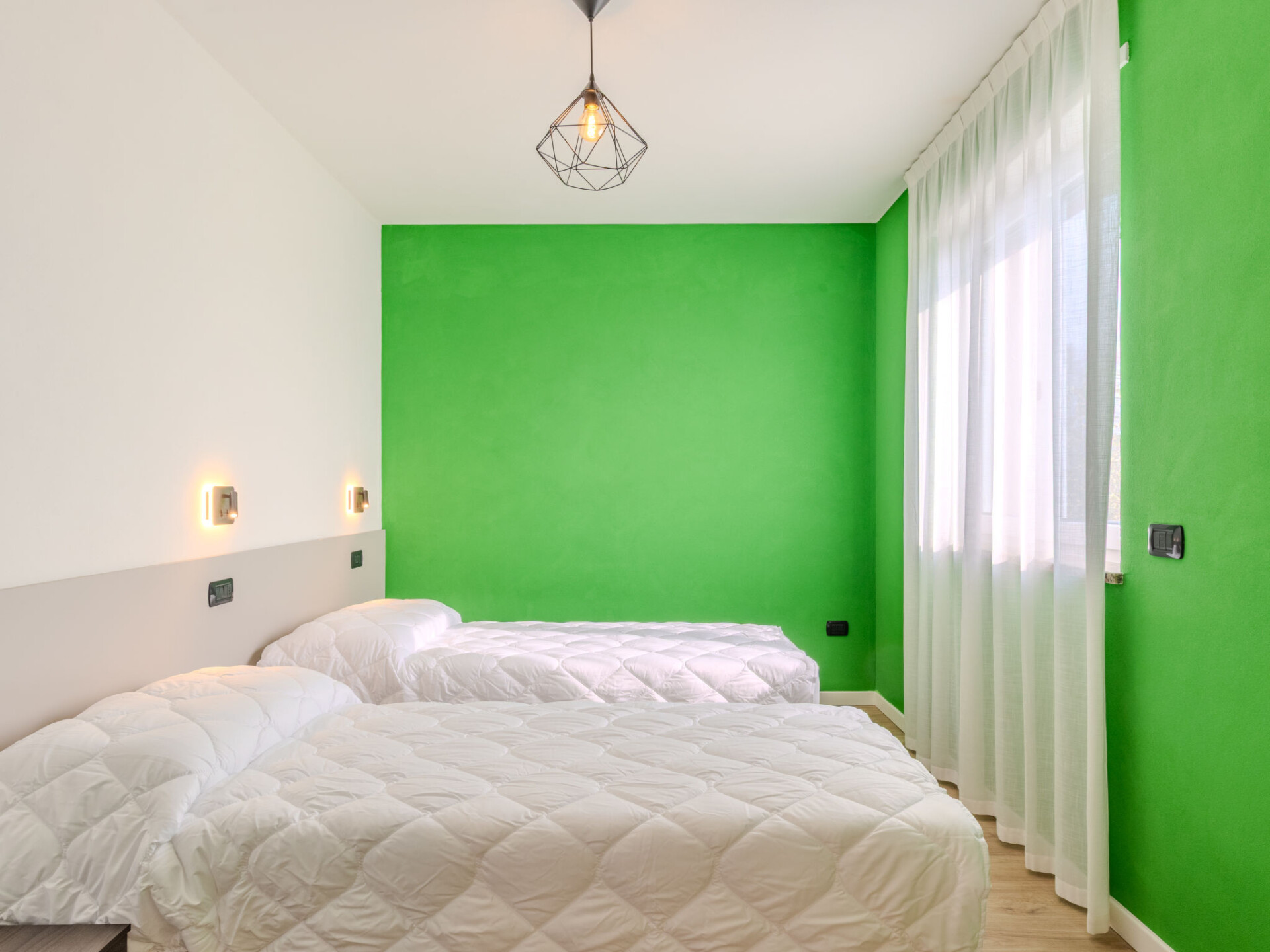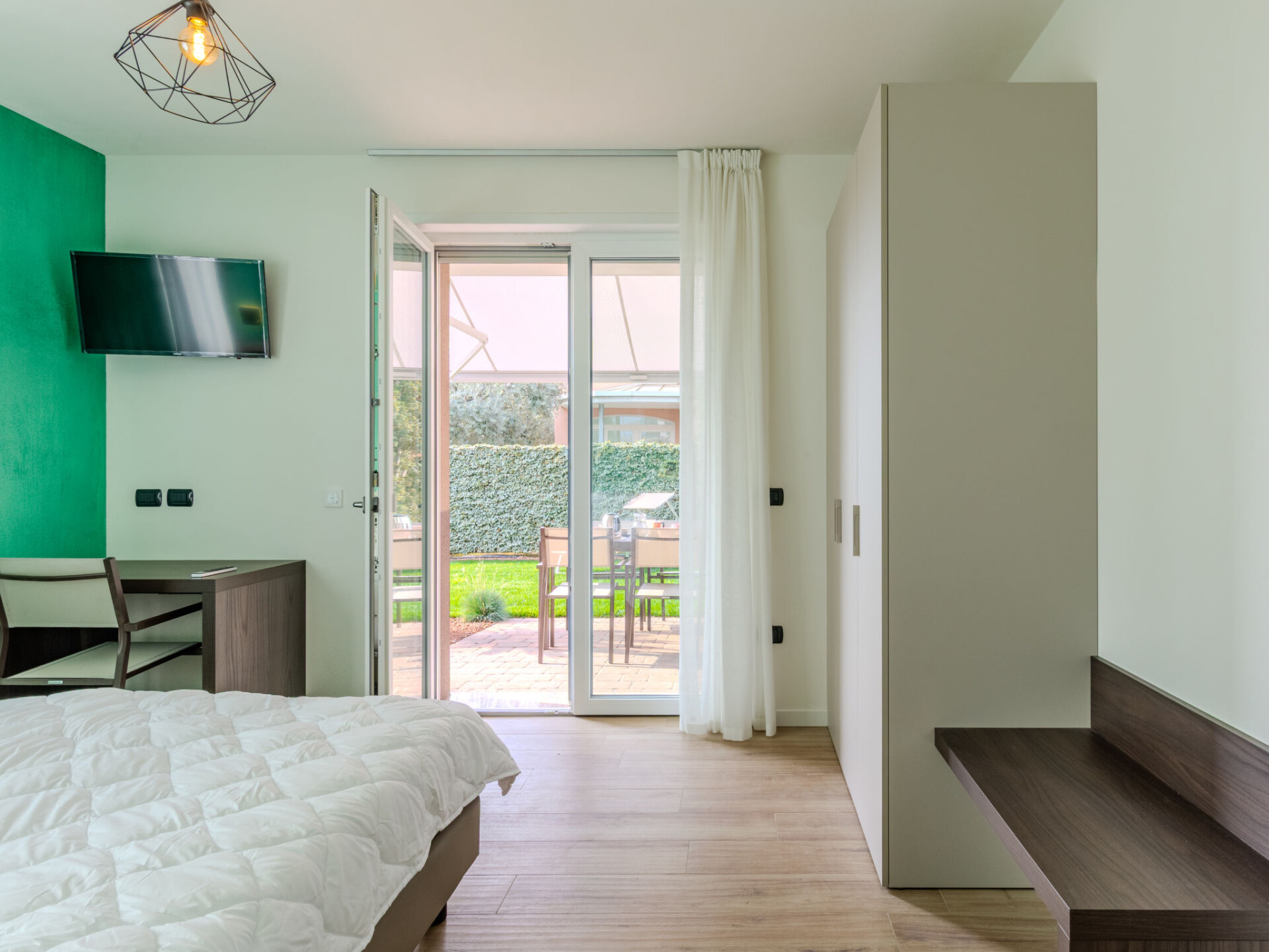 "Garda Oasis and Horizon", huis 5-kamers 116 m2, op de begane grond, op het zuidoosten gelegen. Het objekt is geschikt voor 8 volwassenen. Ruim en licht, volledig gerenoveerd in 2025, zeer modern en gezellig ingericht: woonkamer met Sat-TV. Uitgang naar de tuin. 1 2-pers. kamer met 1 2-pers bed en TV. 1 kamer met 2 bedden. Keuken (afwasmachine, 4 inductiekookplaten, broodrooster, waterkoker, magnetron, diepvriezer, elektrische koffiemachine) met eettafel. Uitgang naar de tuin. Douche/bidet/WC. Air-conditioning, vloerverwarming. Verwarming alleen beschikbaar van 15.11. tot 30.04. Bovenverdieping: 1 2-pers. kamer met 1 2-pers bed en TV. Uitgang naar het terras. 1 kamer met 2 bedden. Douche/WC. Air-conditioning, vloerverwarming. Verwarming alleen beschikbaar van 15.11. tot 30.04. Houten vloeren. Balkon, groot terras, groot tuin 100 m2, op het zuiden gelegen en op het oosten gelegen. Terrasmeubelen, barbecue, ligstoelen (4), zitgelegenheid. Zeer mooi uitzicht op de bergen en het landschap. Ter beschikking: kluis, kinderbed tot 2 jaar, haardroger. Internet (WiFi, gratis). Parkeerplaats (omheind, 2 Auto's), garage op het terrein (1 Auto). Oplaadstation. Niet rokers woning. Brandblusser. Geen interne verbinding tussen de aparte wooneenheden. IT022153B4W1OPZ59S,IT022153B4YXHS7TTA