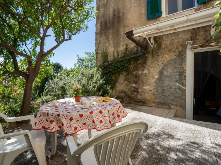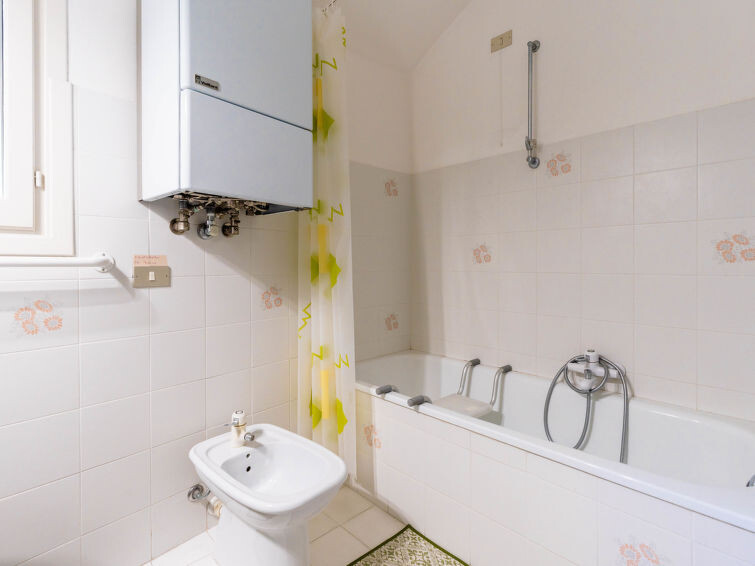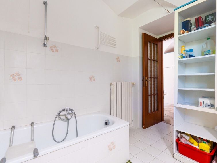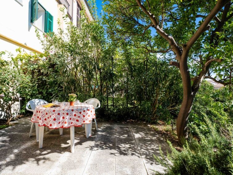 "Gartenwohnung", appartement 2-kamers 75 m2, op de begane grond. Eenvoudig en doelmatig ingericht: woon-/eetkamer. Uitgang naar het terras. 1 2-pers. kamer. Kookhoek (4 kookpitten (vlammen), broodrooster, waterkoker). Bad/bidet/WC. Geen verwarmingsmogelijkheid. Terras. Terrasmeubelen. Ter beschikking: wasmachine, kinderbed tot 2 jaar, haardroger. Privé ingang, rookmelders, brandblusser. IT008014B42IR95XM3