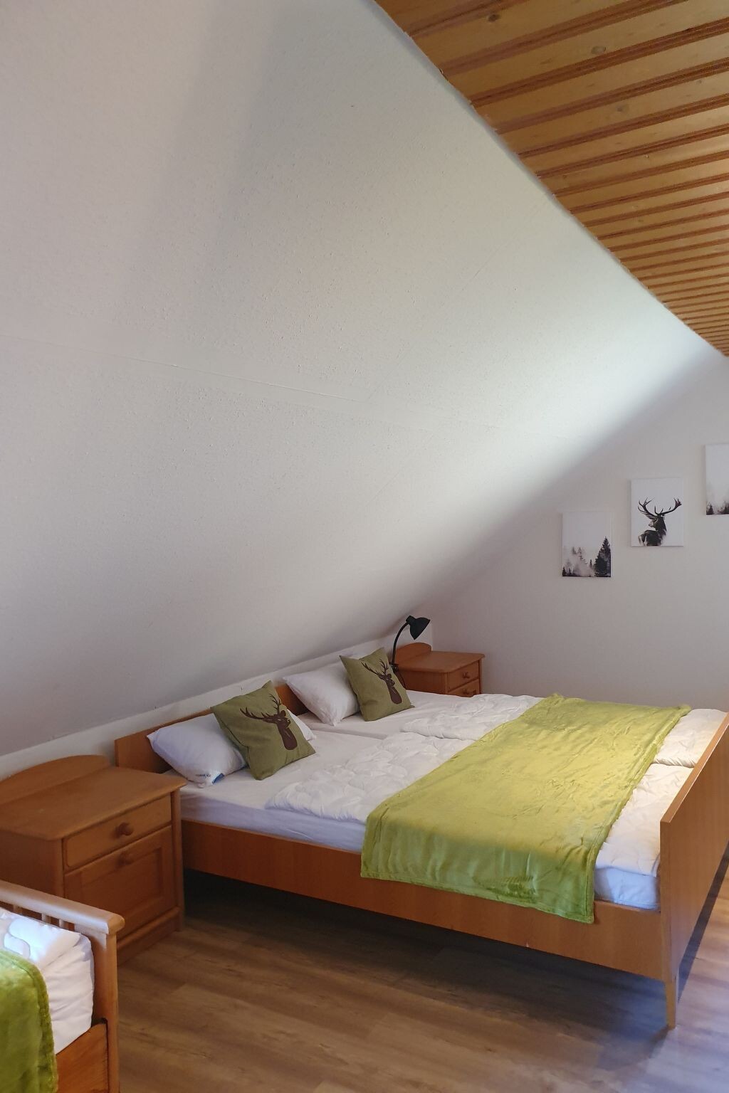 Our self-catering accommodation is in a quiet location on the edge of the forest. From here you can start your activities, be it hiking on the well-signposted hiking trails, cross-country skiing on the cross-country ski trails that lead right past the house or guided snowshoe hikes and of course alpine skiing on the nearby Feldberg.Our house offers single, double and multi-bed rooms. The rooms are friendly and brightly furnished, some with shower and WC. On the ground floor there is a well-equipped kitchen with gas cooker and dishwasher as well as a cosy guest room with bar, tiled stove and pool table. Another small lounge with TV and games is located next to the parlour.Car parking spaces are available directly at the house, as well as a sun terrace and barbecue facilities. There is space for the little ones to play in the meadows around the house.Free firewood at the houseBarbecue in the gardenTable tennis tableSun terraceRecyclable materials such as used glass are to be taken back by the guest or disposed of at the collection points in the village. Residual waste & yellow bag is included in the final cleaning.Please note: The local tourist tax at the time of arrival is not included in the holiday price and will be charged separately.Menzenschwand, climatic health resort at the foot of the Feldberg 850 to 1350 m above sea level, 6 km from Schluchsee and St. Blasien, 18 km from Titisee.A Black Forest village straight out of a picture book: the wind-protected and sunny high valley is surrounded by high, wooded mountains in the middle of a nature and landscape conservation area. Menzenschwand is a state-recognised climatic health resort.The townscape is characterised by well-preserved Black Forest houses with low-pitched hipped roofs. They merge with nature to form a single entity and give holidaymakers a cosy feeling of peace and relaxation.Safe and varied hiking trails lead to the Spießhorn and Herzogenhorn mountains and over the Menzenschwander waterfalls to the Feldberg, as well as to St. Blasien and Bernau. The village has several restaurants and a beer garden, a sports shop with ski and bike hire. There is also a beginners' ski lift and several drag lifts as well as a ski jump.Explore the surrounding area from the Berghof and take a tour to Schluchsee or a detour to the summit of the Feldberg, the highest mountain in the Black Forest. Autumn in particular, with its blaze of colour, is ideal for extensive mountain bike tours, hikes or excursions, e.g. to the Krunkelbachhütte.Other excursion destinations are: Rothaus brewery tour, Waldhaus brewery tour, cathedral in St. Blasien, bathing paradise Titisee-Neustadt, Schaffhausen and Rhine Falls, Schluchsee and Titisee, Feldberg climbing forest, high ropes course & laser tag Titisee, traditional cuckoo clocks and museums.Please understand that stag parties and party noise are not welcome here. Experiencing nature and relaxing is what we prioritise.