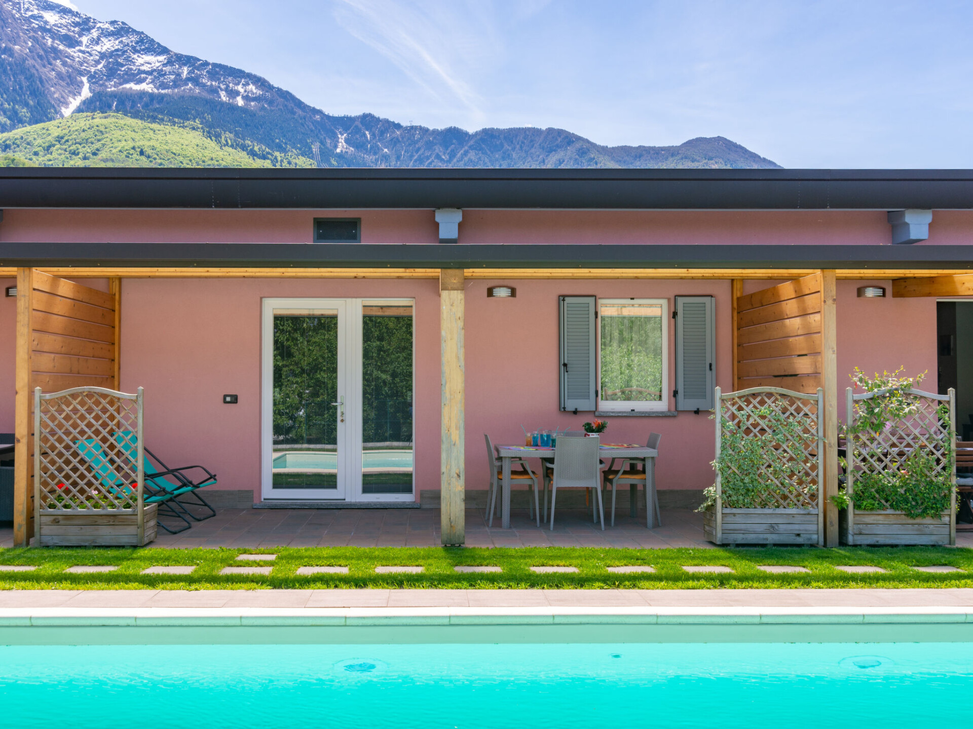 Moderne rijtjeshuis "Gelsomini", bouwjaar 2016. In de wijk Curcio, 2 km van het centrum van Colico, 42 km van het centrum van Lecco, 72 km van het centrum van Como, in een woonwijk, 2 km van het meer. Voor medegebruik: terrein 1.000 m2 (omheind) met weide, openluchtzwembad (8 x 4 m, 145 cm diepte, seizoensgebonden beschikbaarheid: 30.Apr. - 30.Sep.) met zout-elektrolyse. Buitendouche, barbecue, parkeerplaats bij het huis op 50 m openbare parkeerplaatsen 100 m. Winkel 400 m, supermarkt 700 m, bushalte 350 m, treinstation "Colico" 1.6 km, kiezelstrand 2.7 km, grasstrand 2.7 km. Golfterrein (18 holes) 35.5 km. Auto noodzakelijk. Vergelijkbare accommodaties kunnen worden geboekt. Object referentie: IT2440.624.2+3 is gelegen op hetzelfde terrein. In dit complex zijn verder 2 huizen te huur. Er bevindt zich een bouwmaterialenwinkel dichtbij.